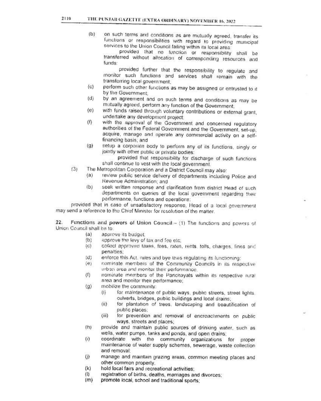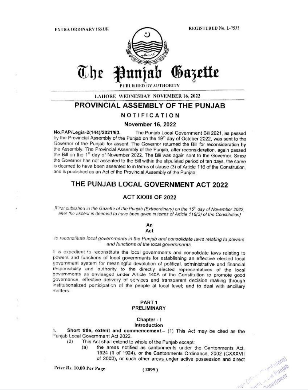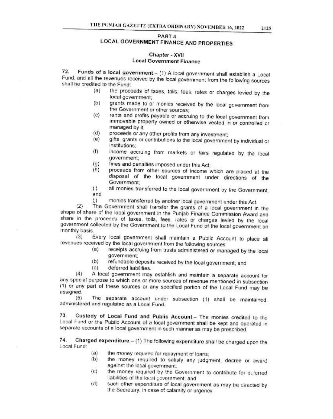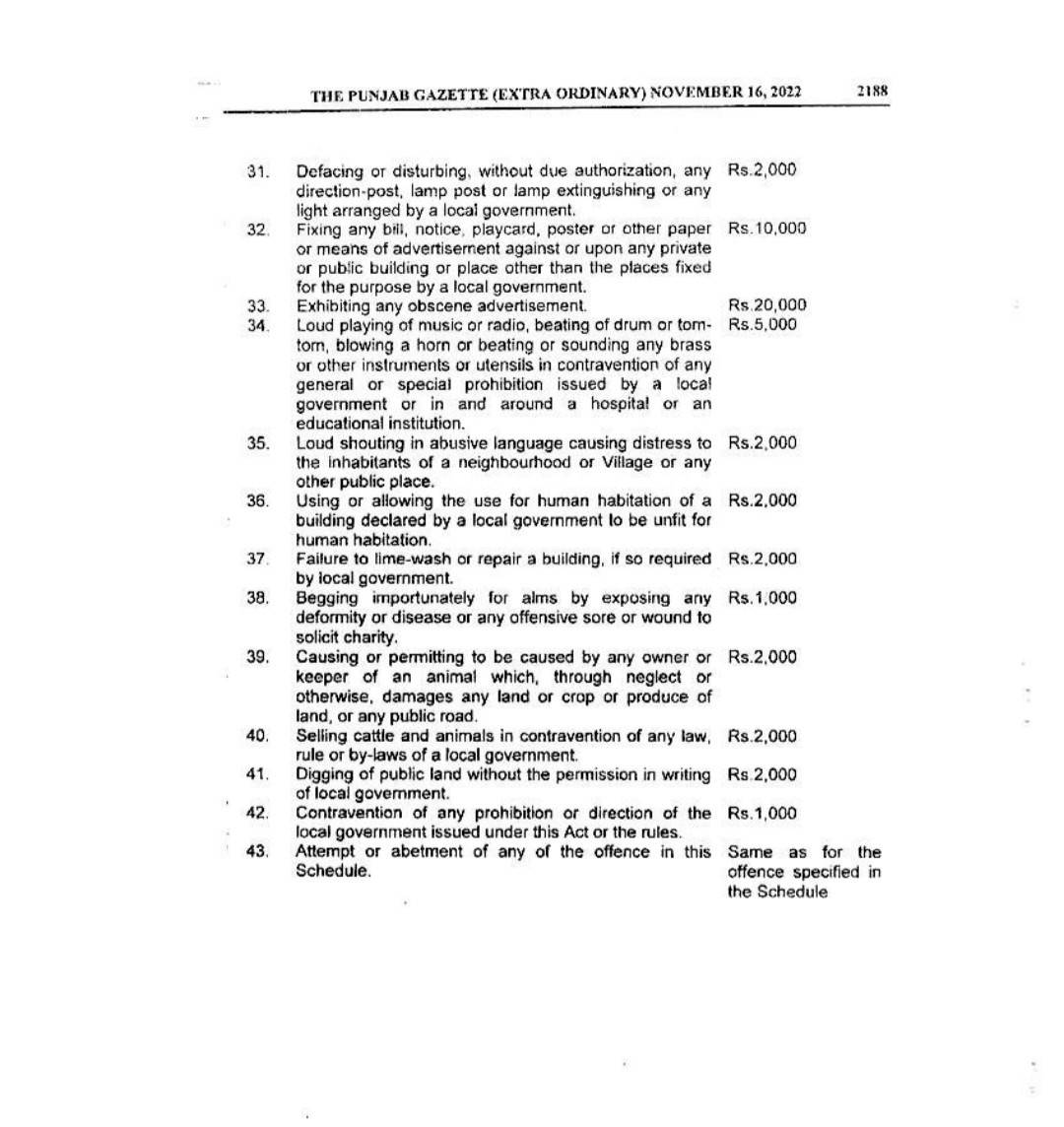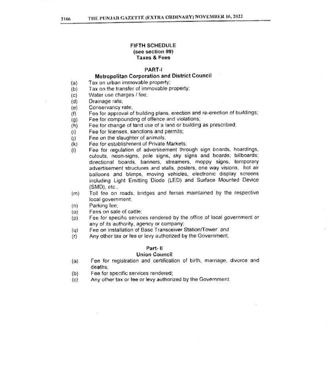 Punjab Local Government Act 2022 Gazette Notification