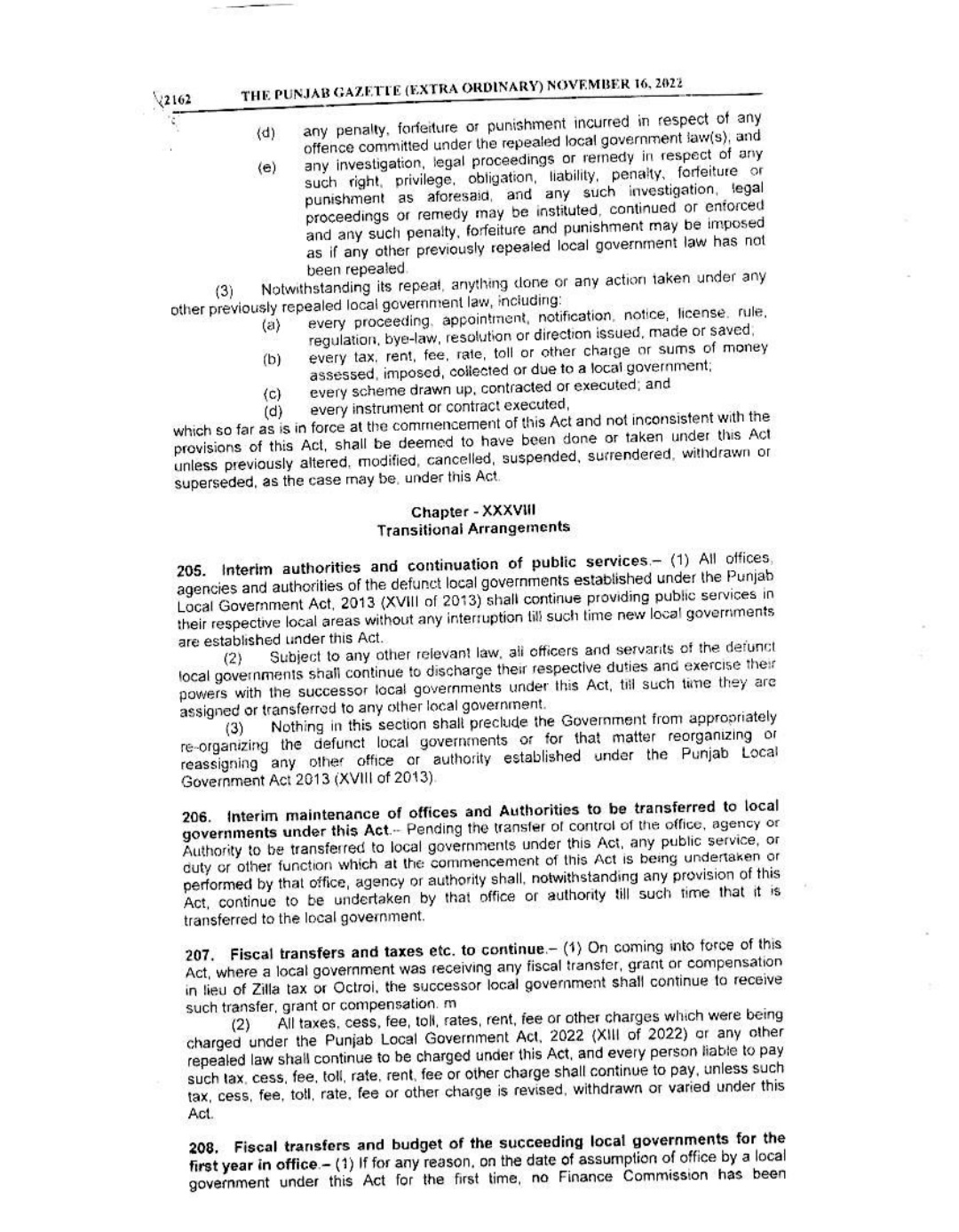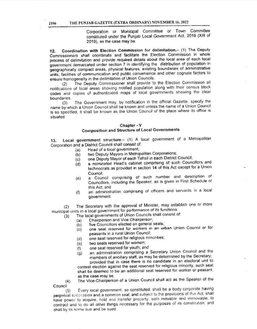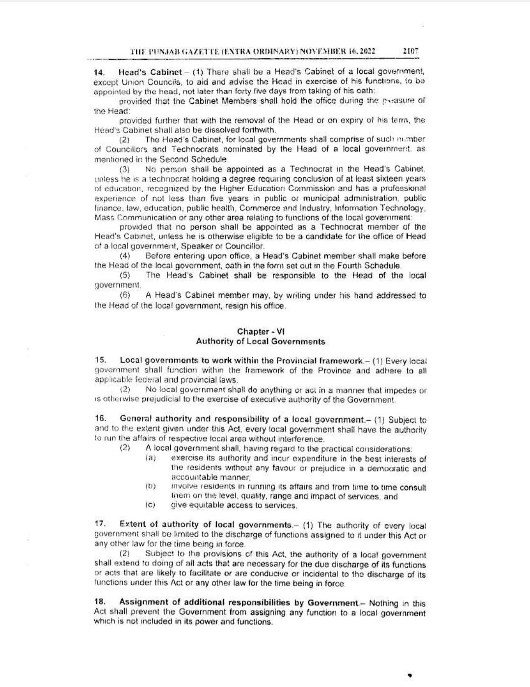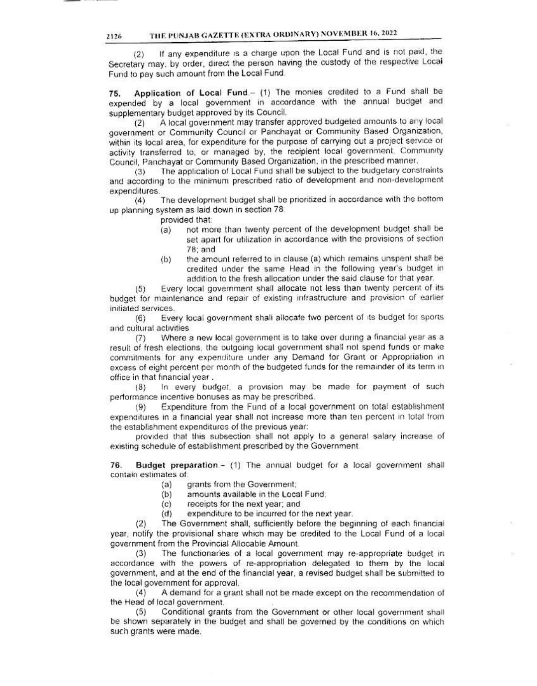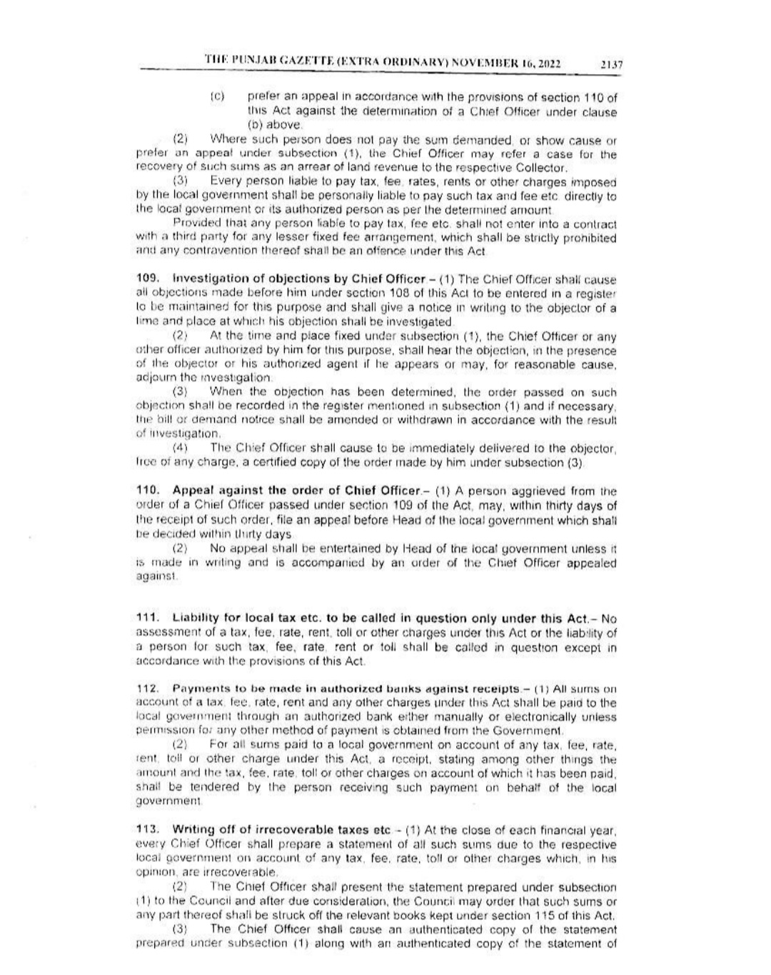 Punjab Local Government Act 2022 Gazette Notification