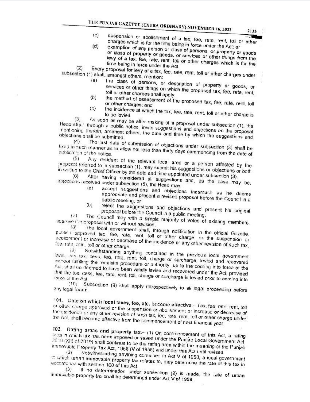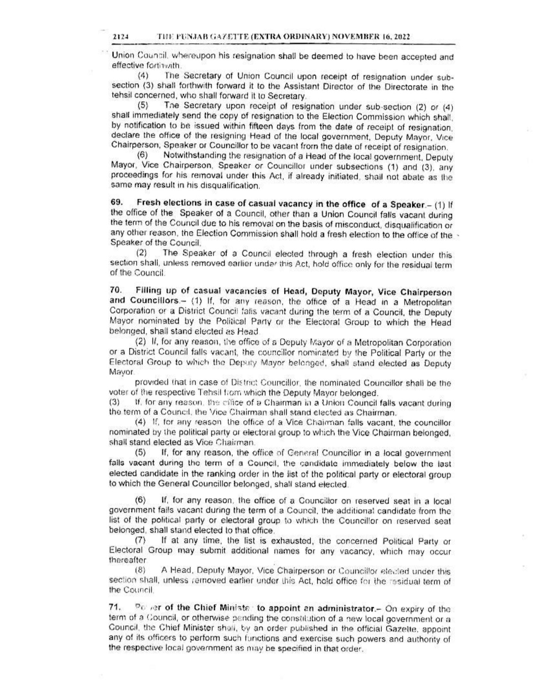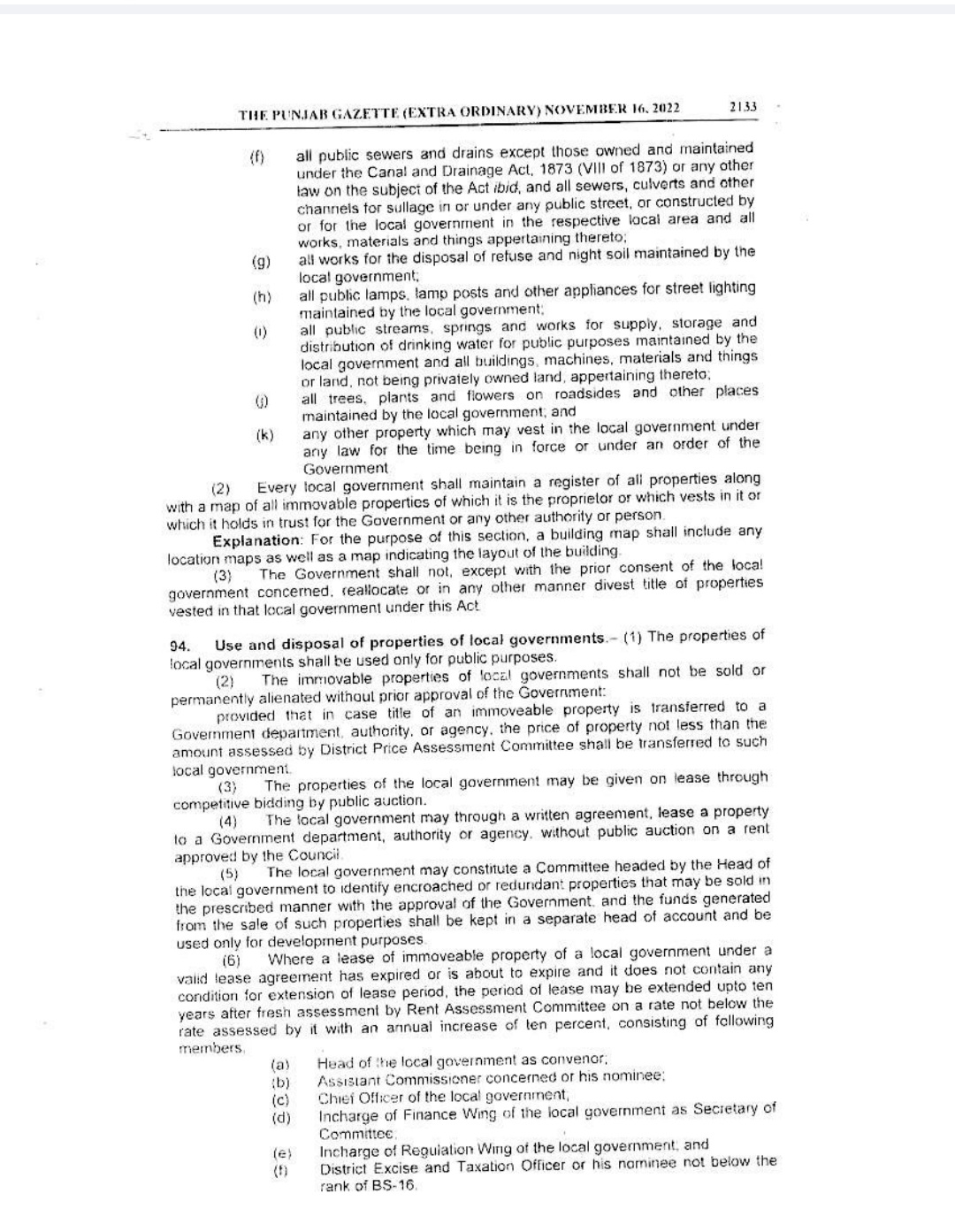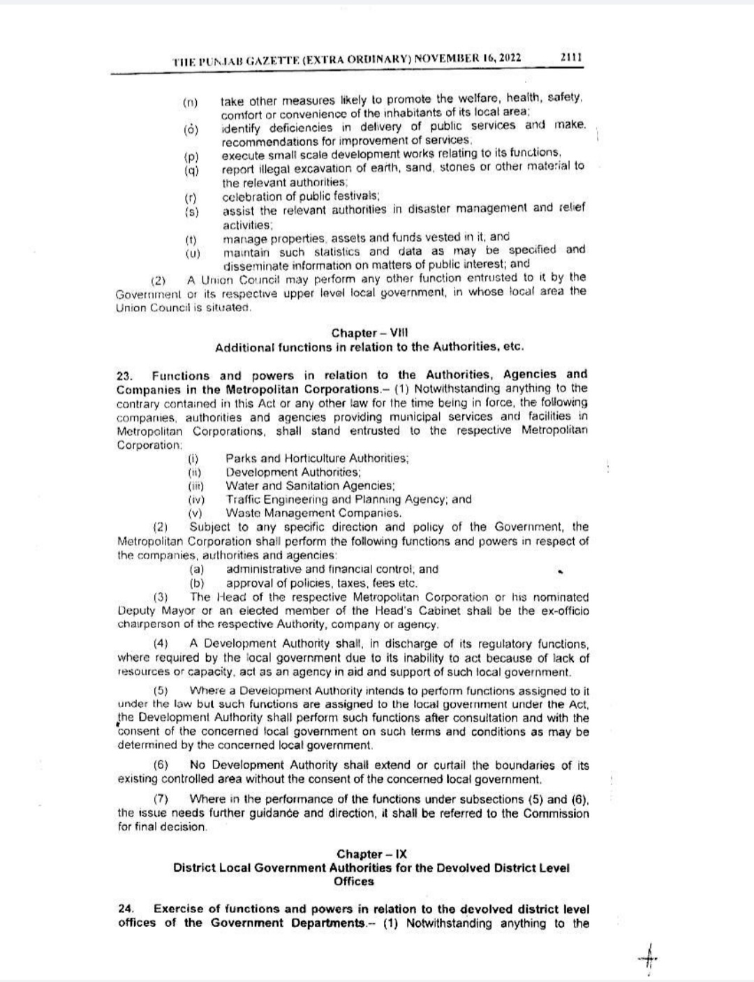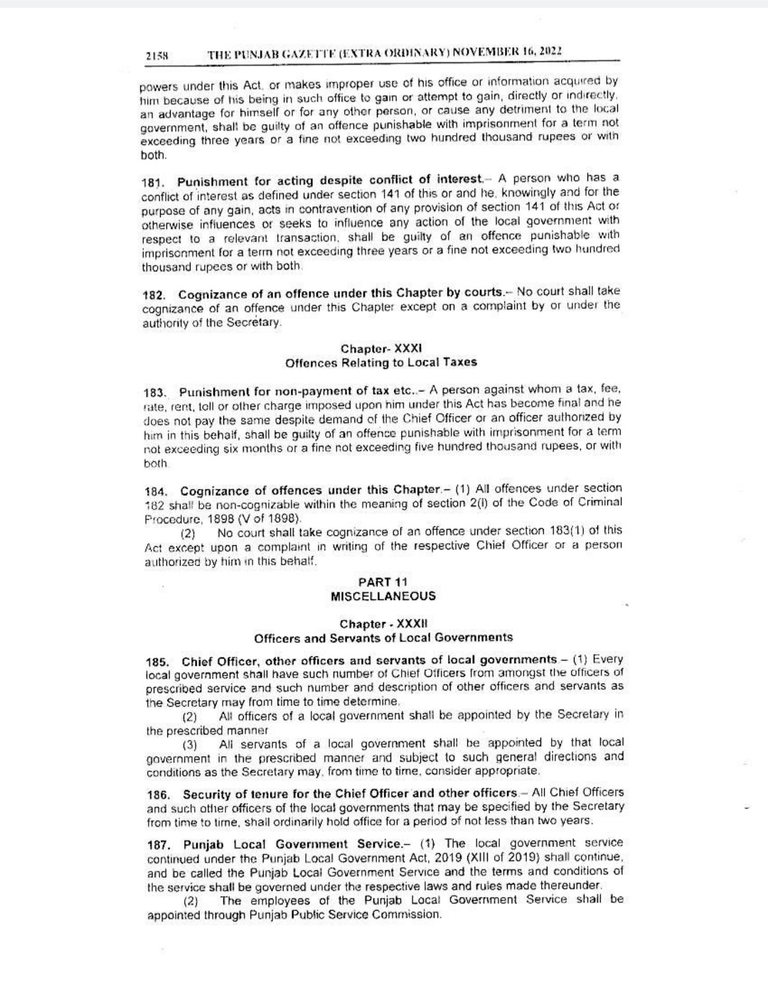 Punjab Local Government Act 2022 Gazette Notification