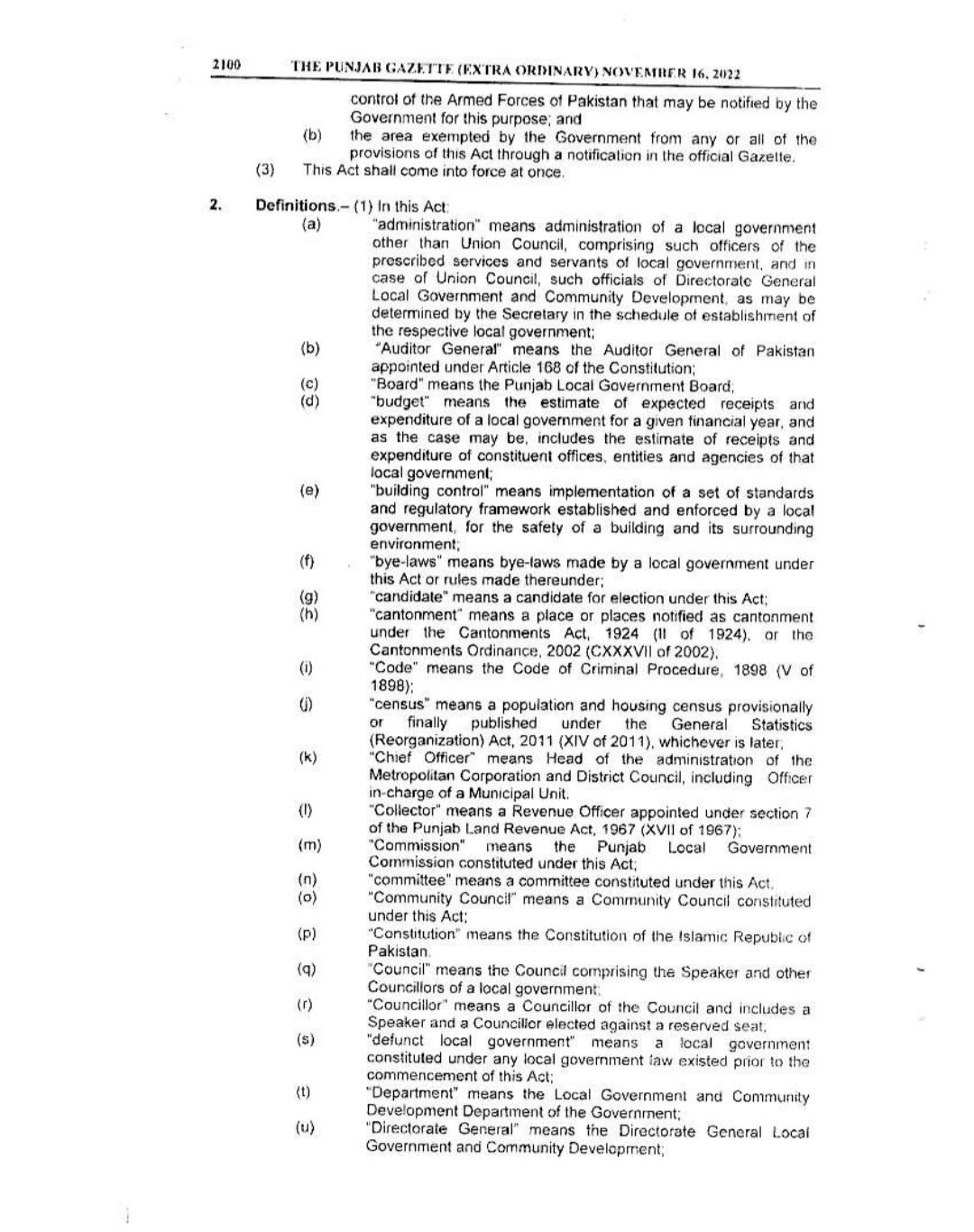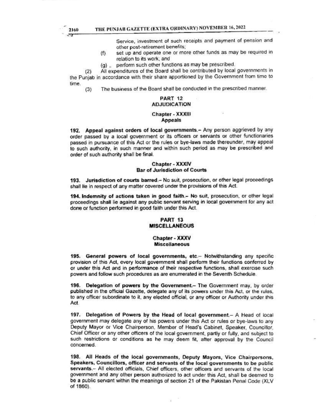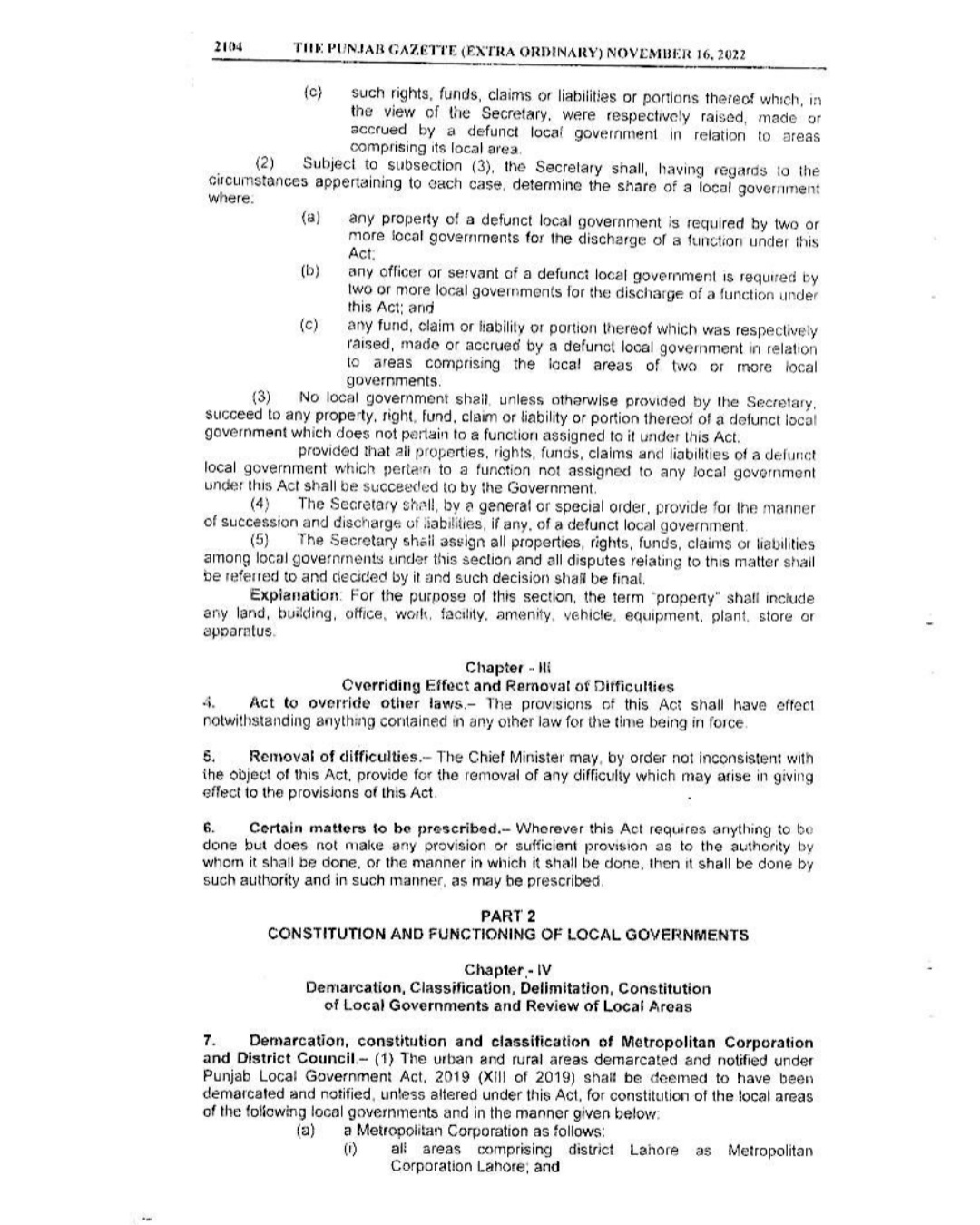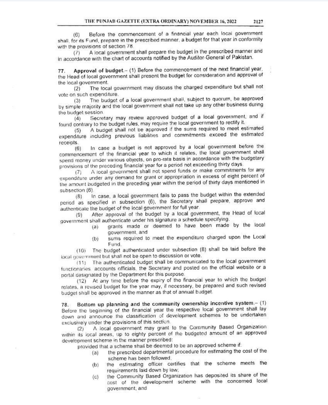 Punjab Local Government Act 2022 Gazette Notification