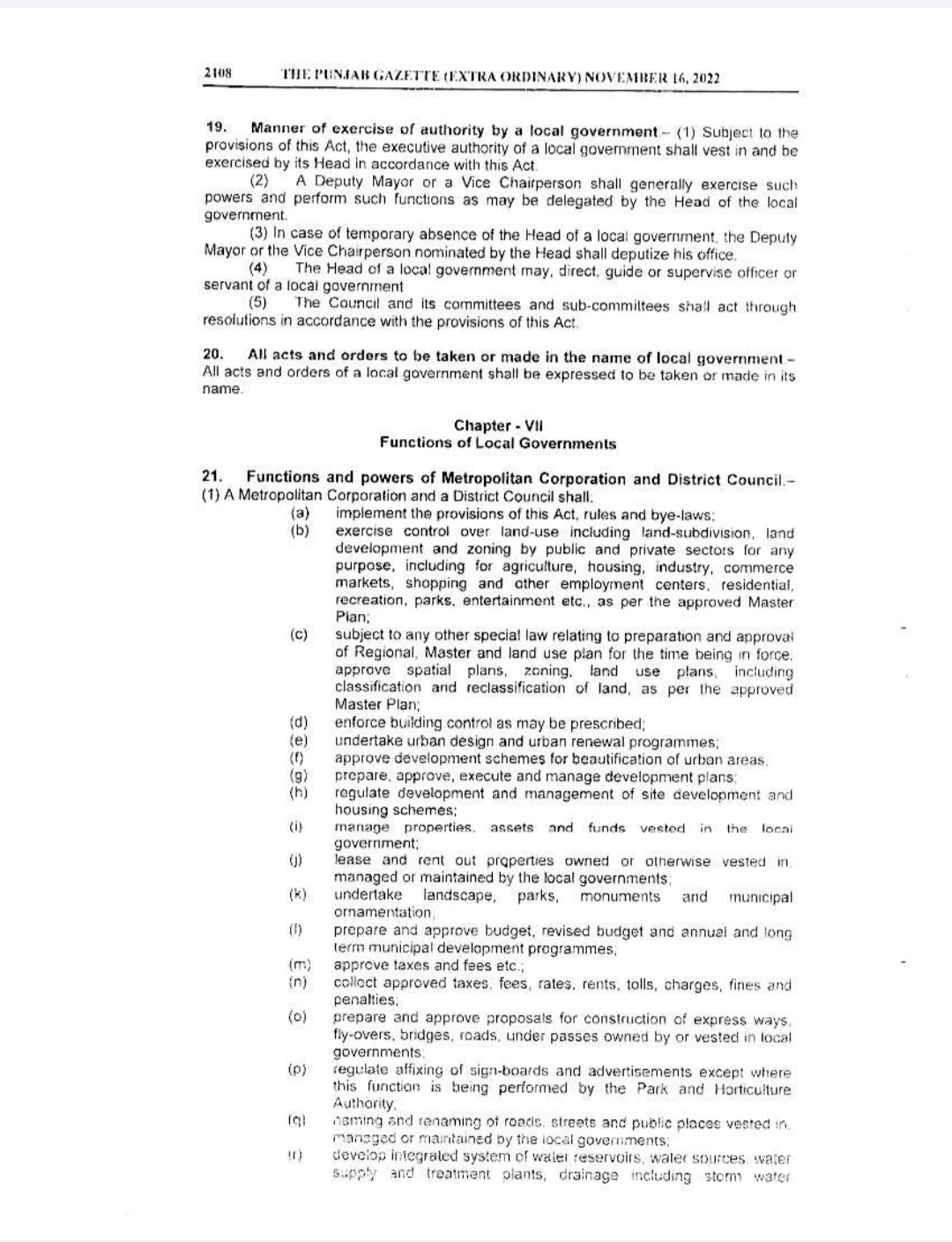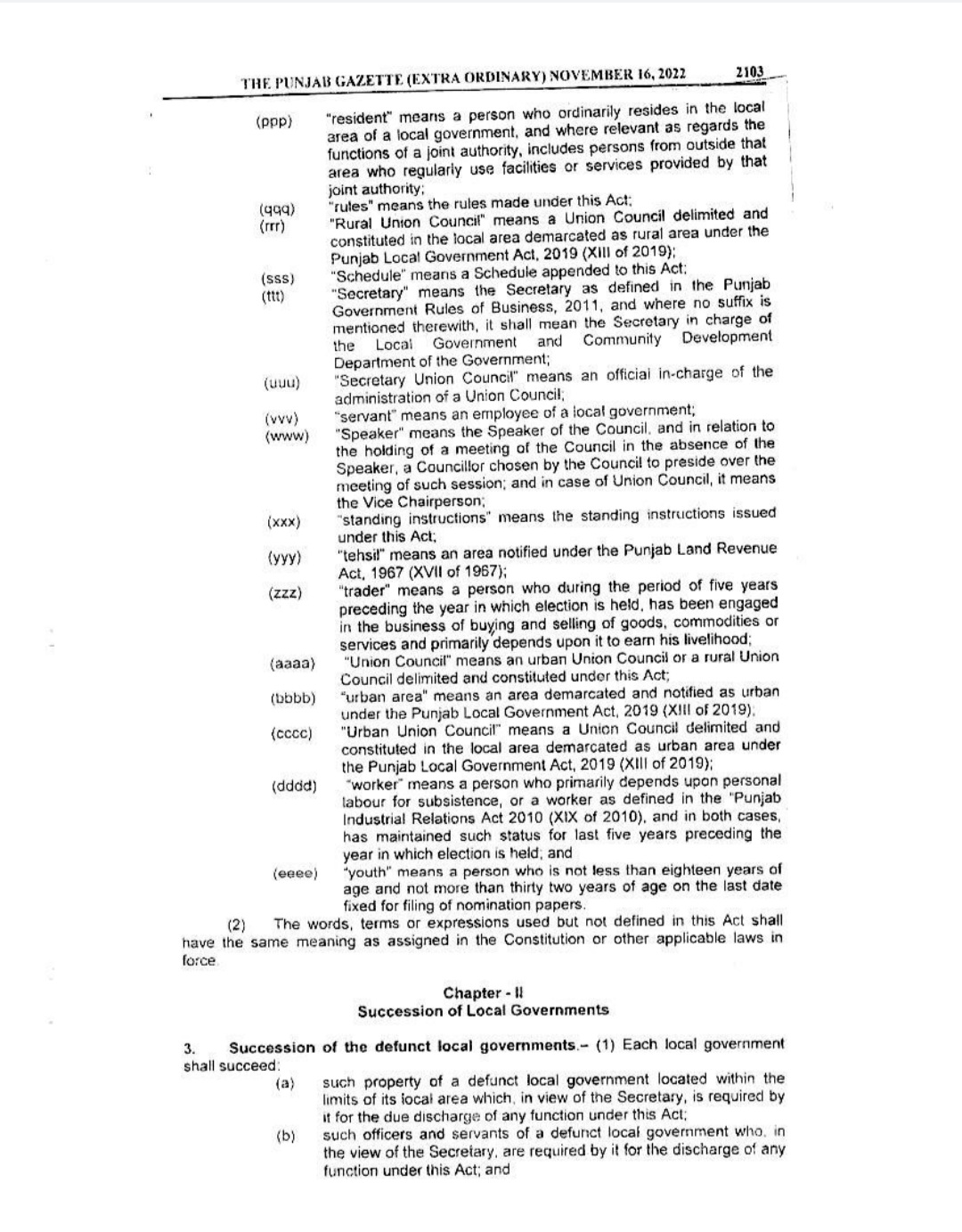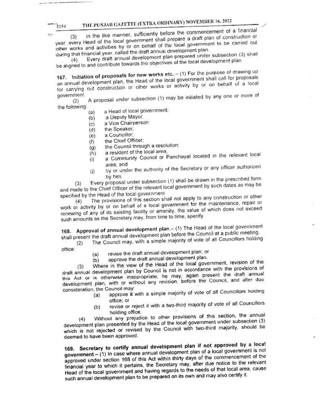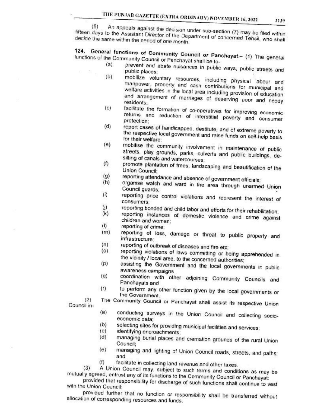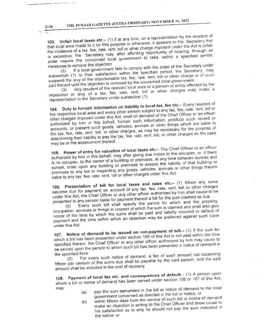 Punjab Local Government Act 2022 Gazette Notification