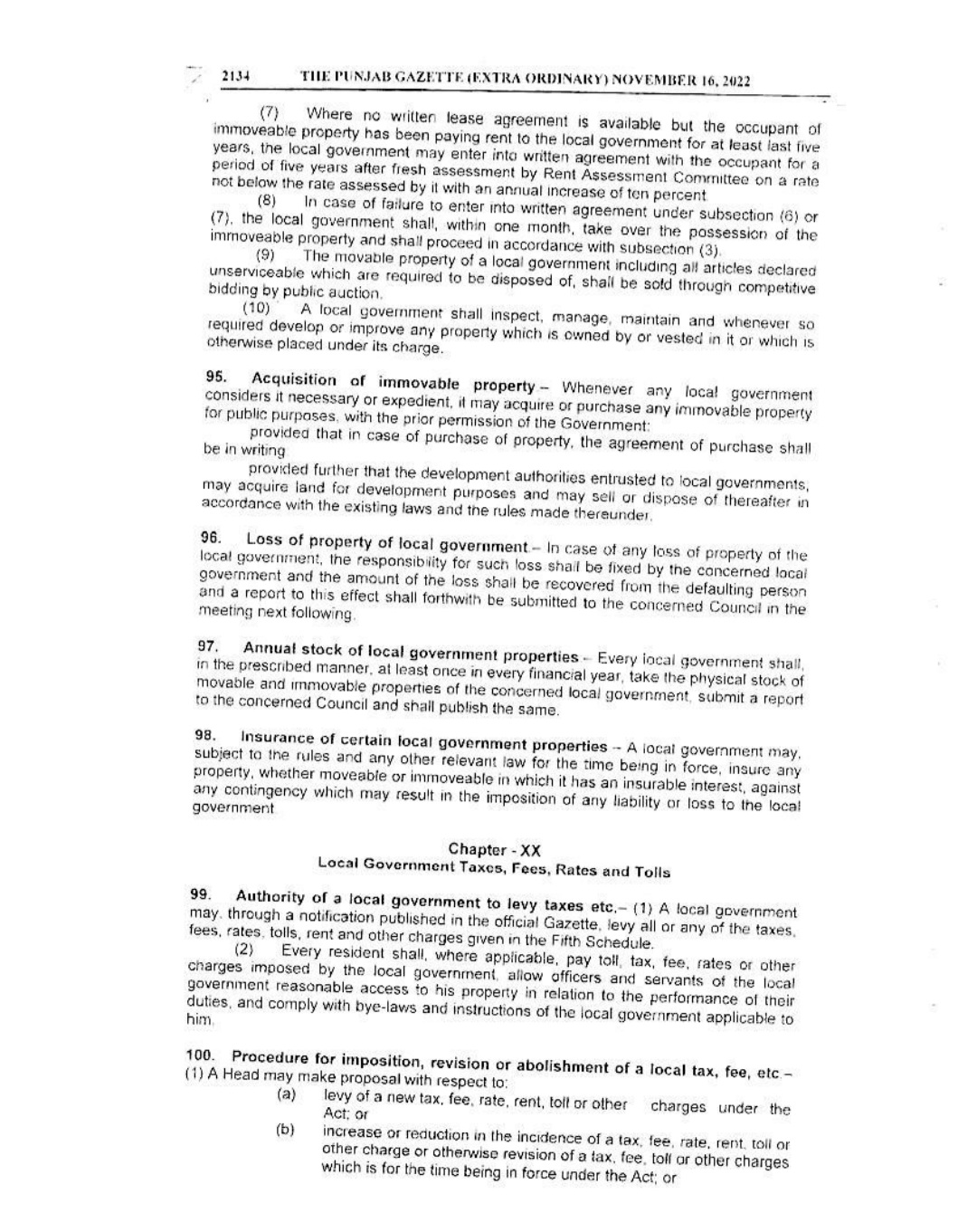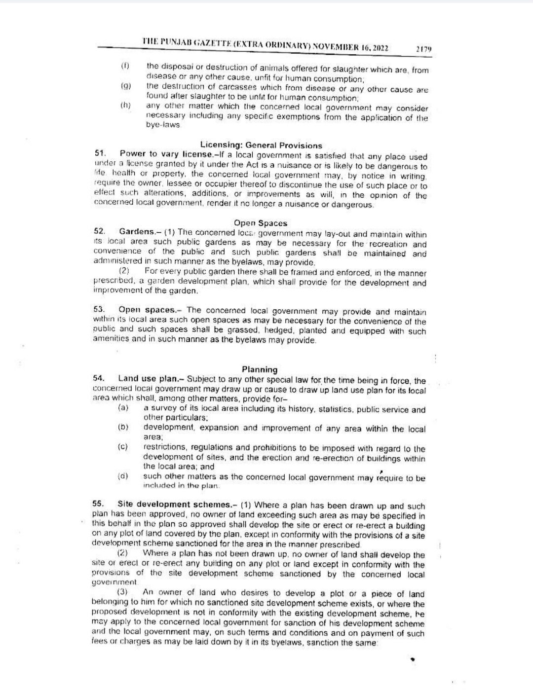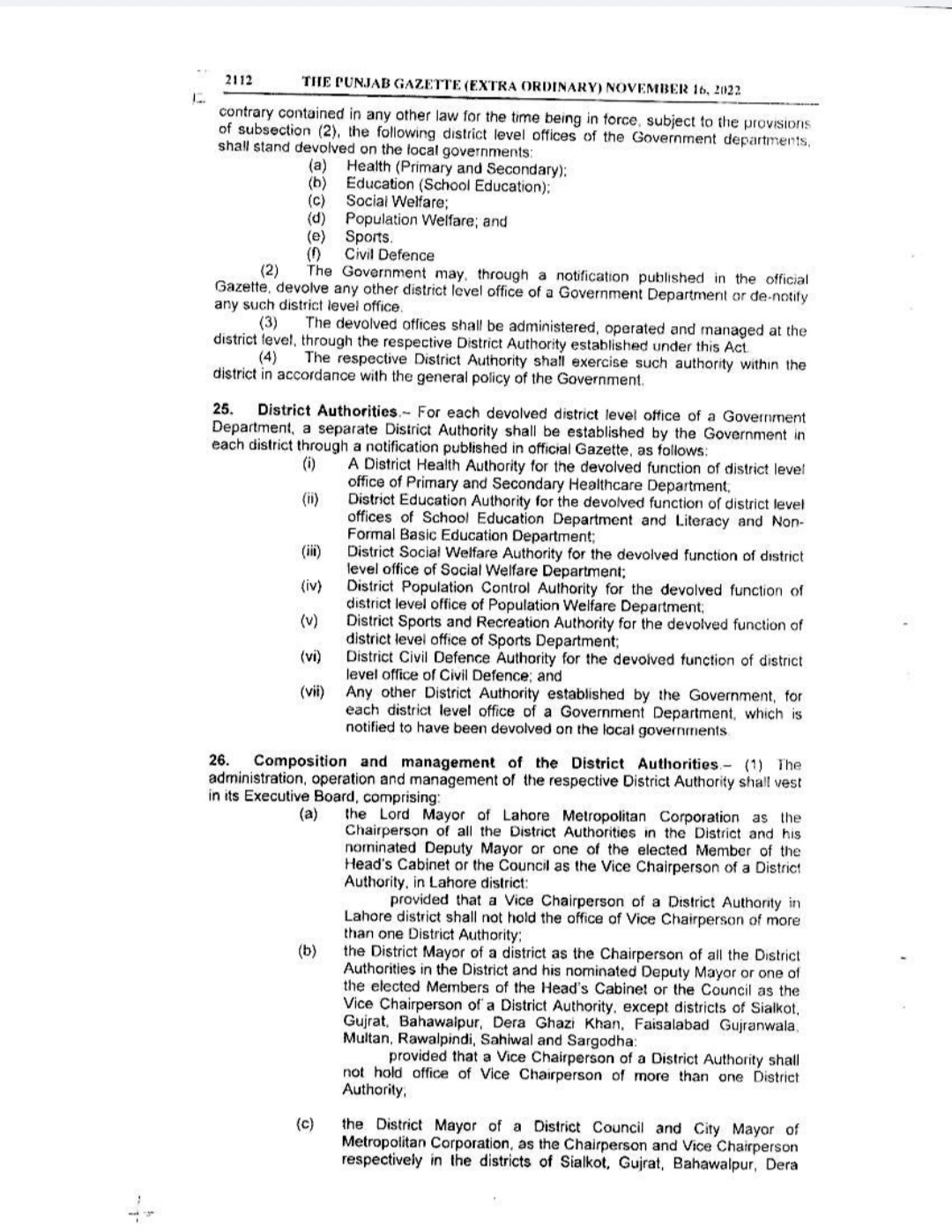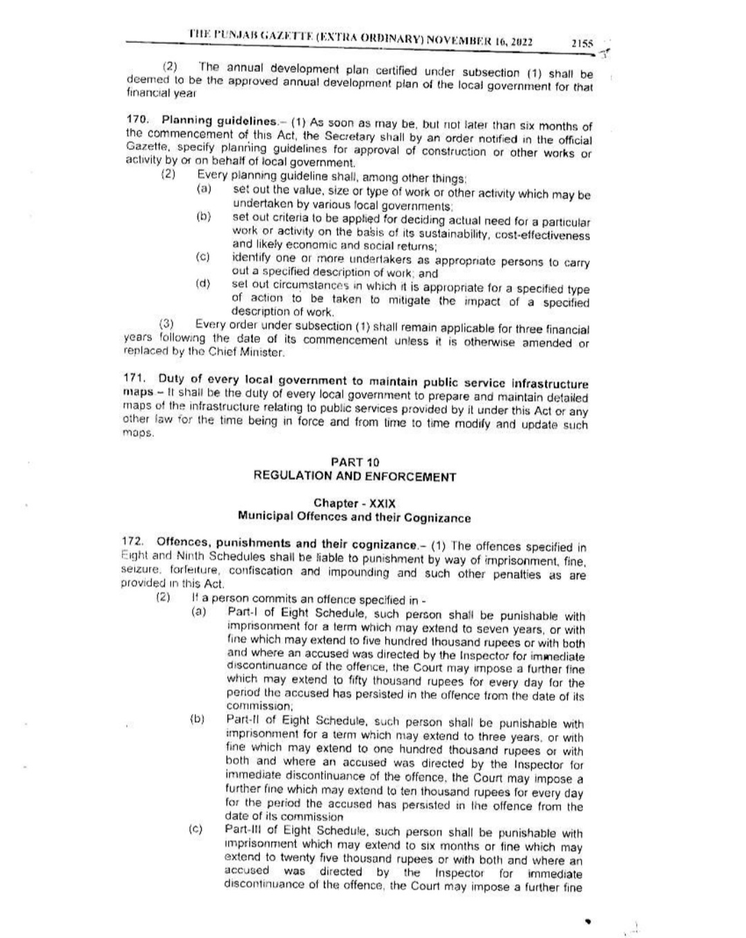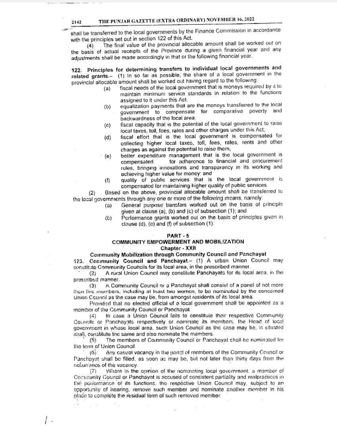 Punjab Local Government Act 2022 Gazette Notification