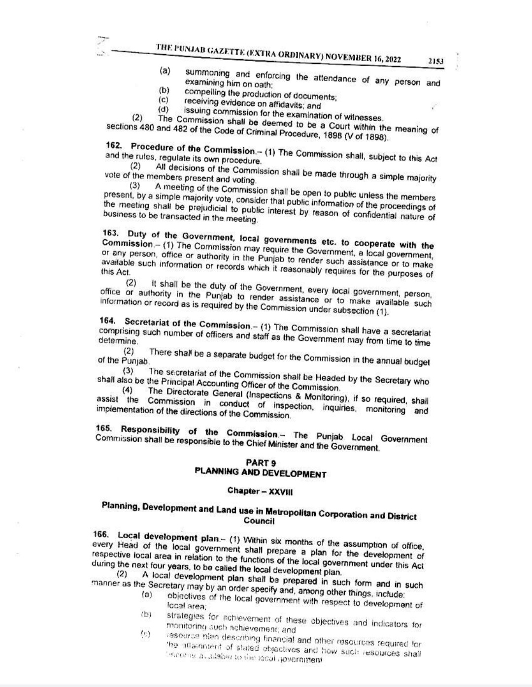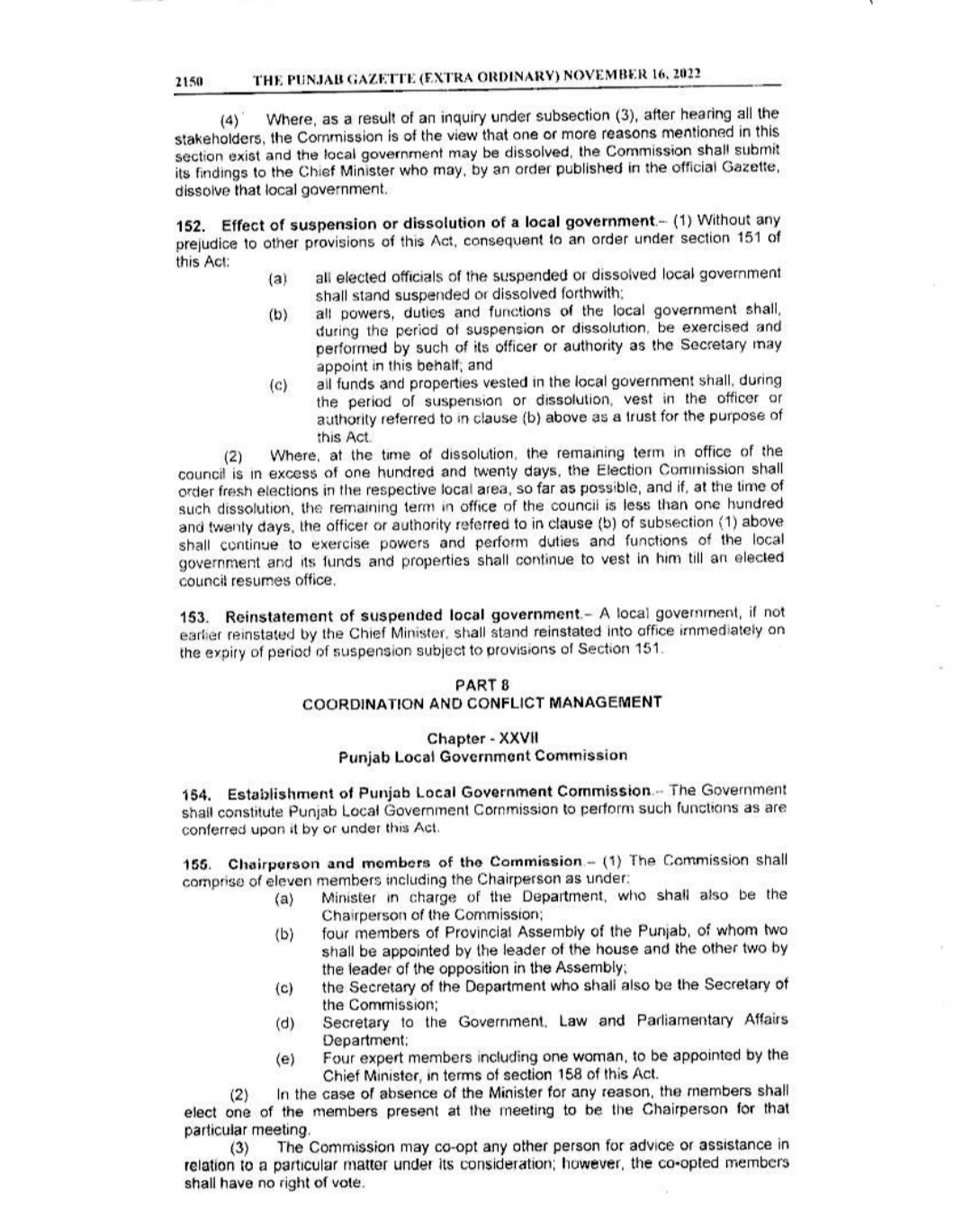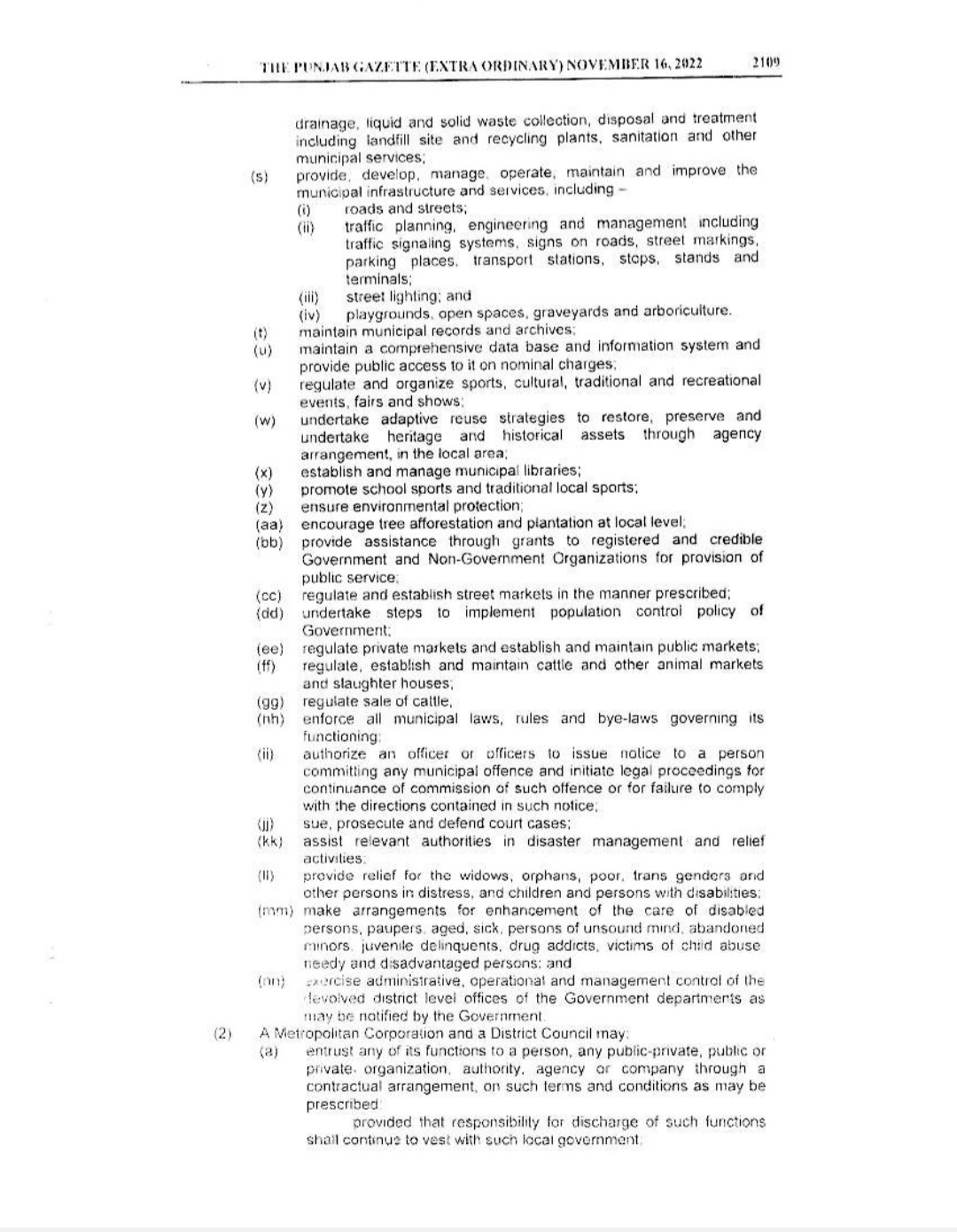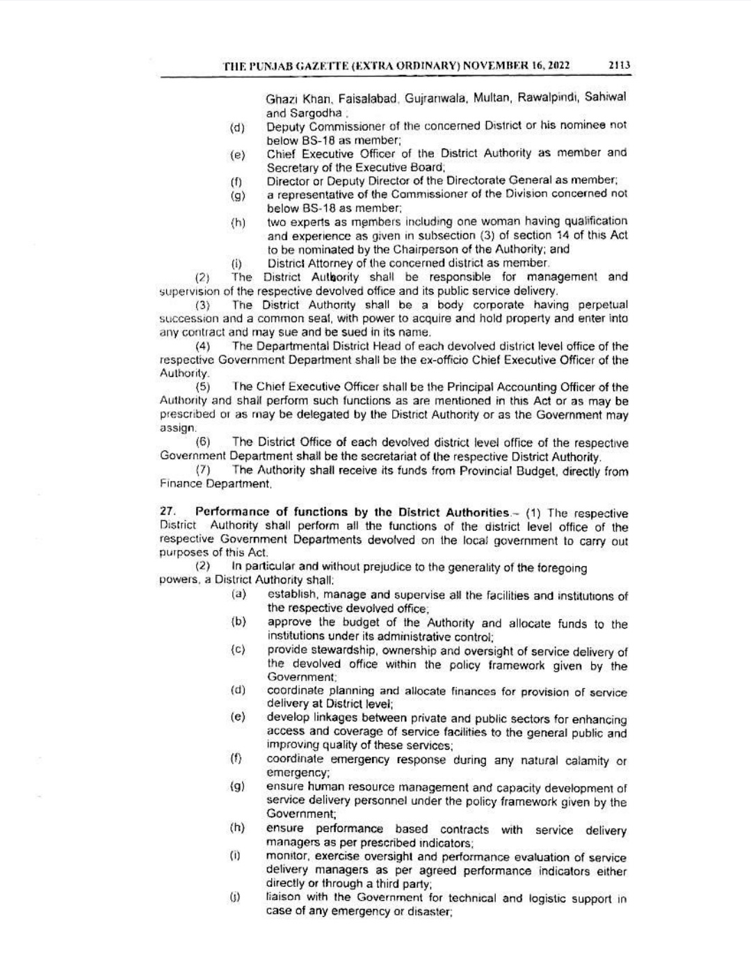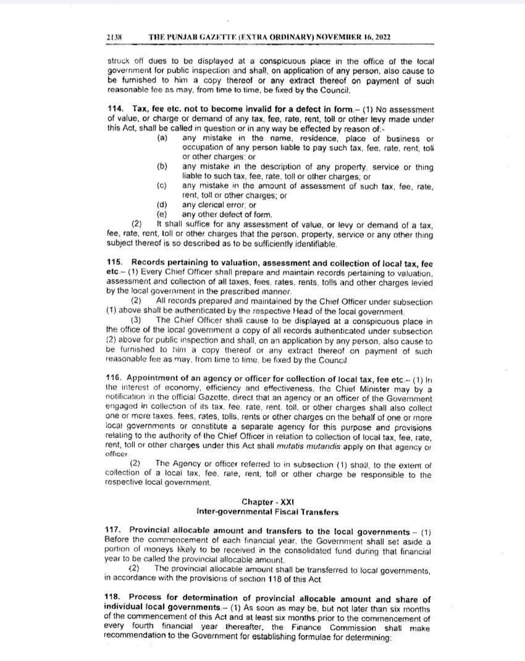 Punjab Local Government Act 2022 Gazette Notification