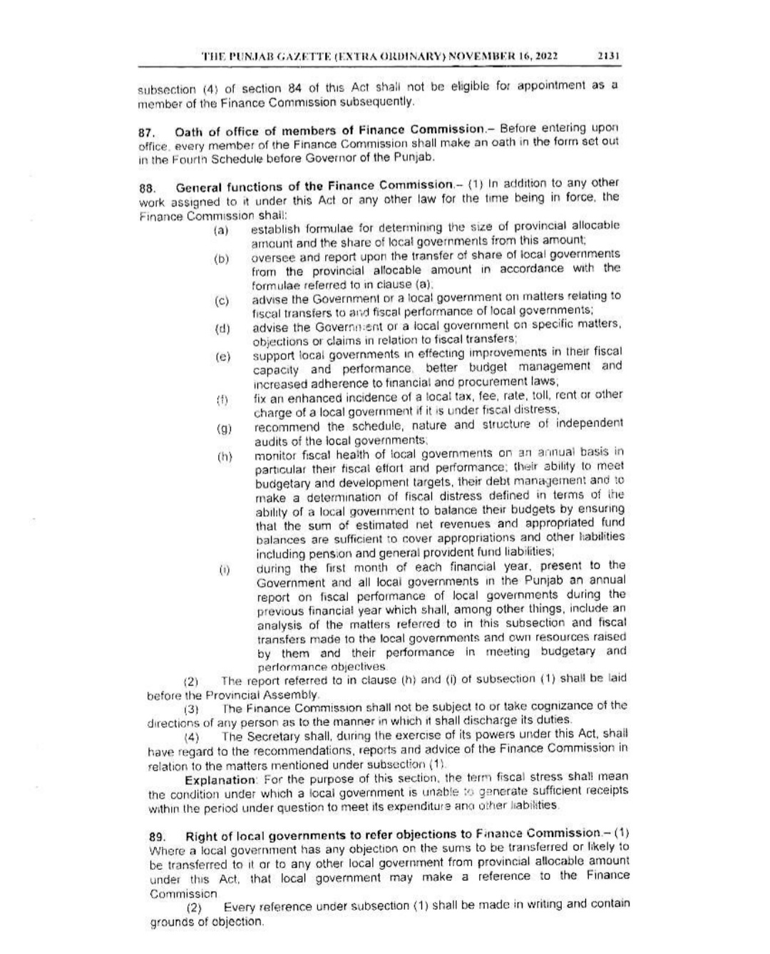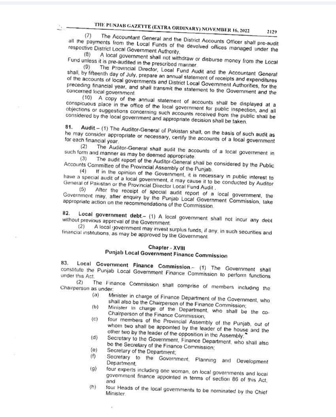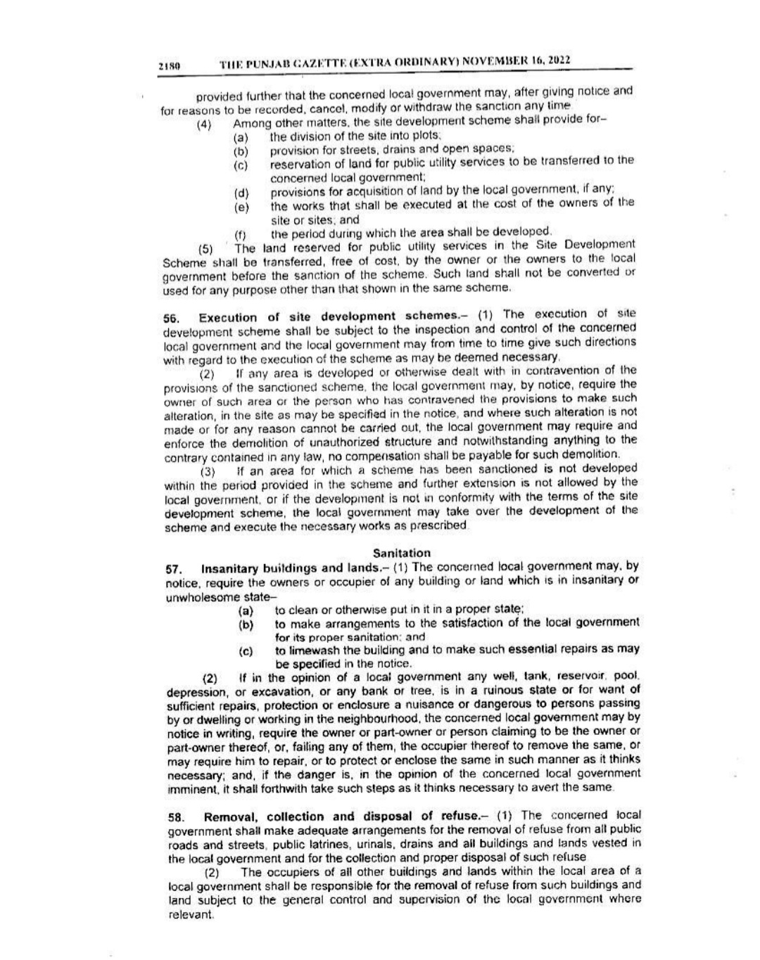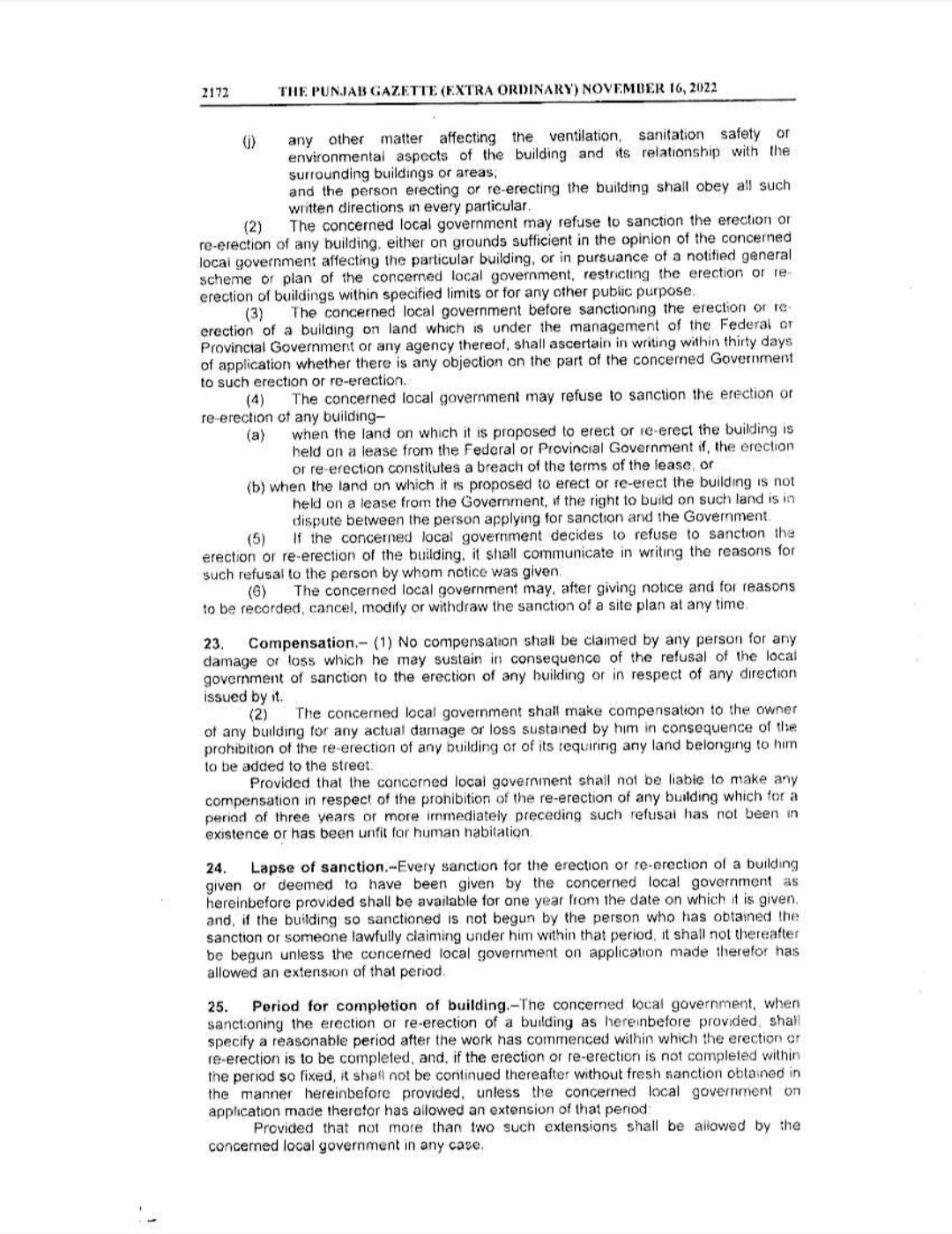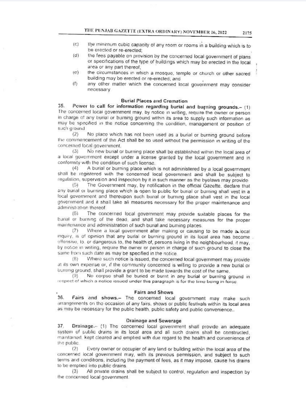 Punjab Local Government Act 2022 Gazette Notification