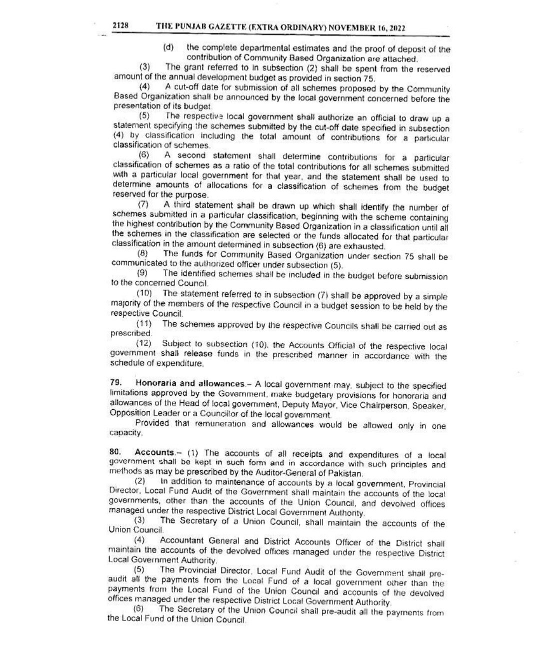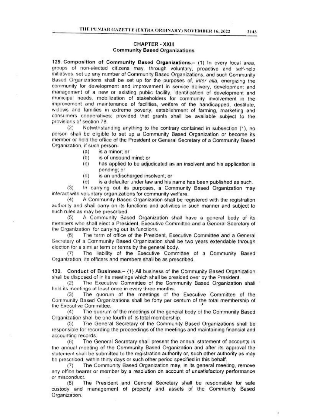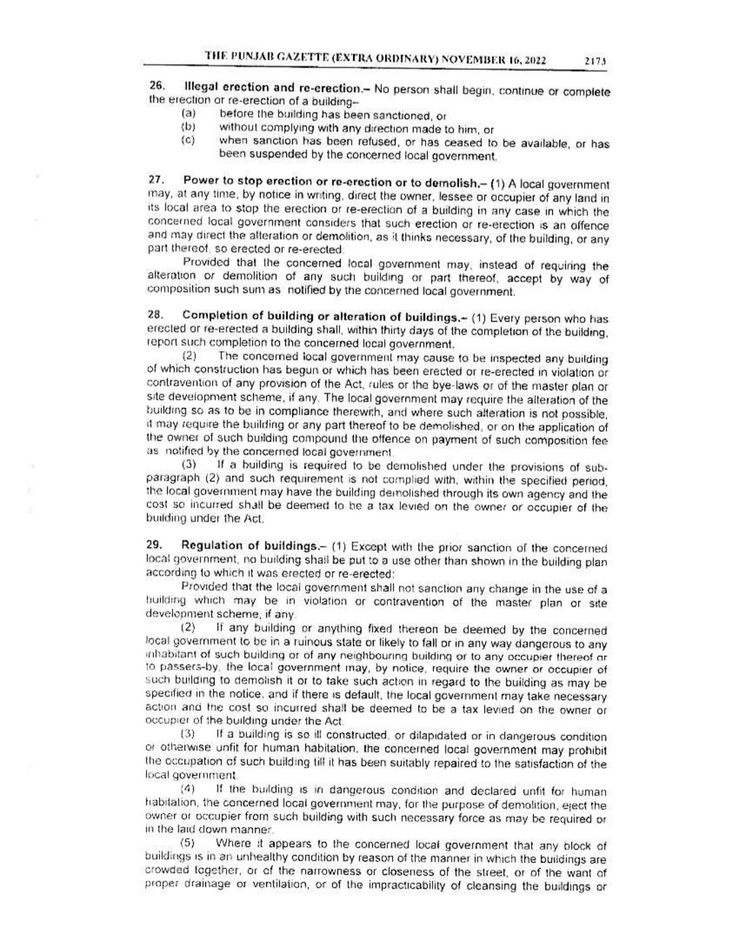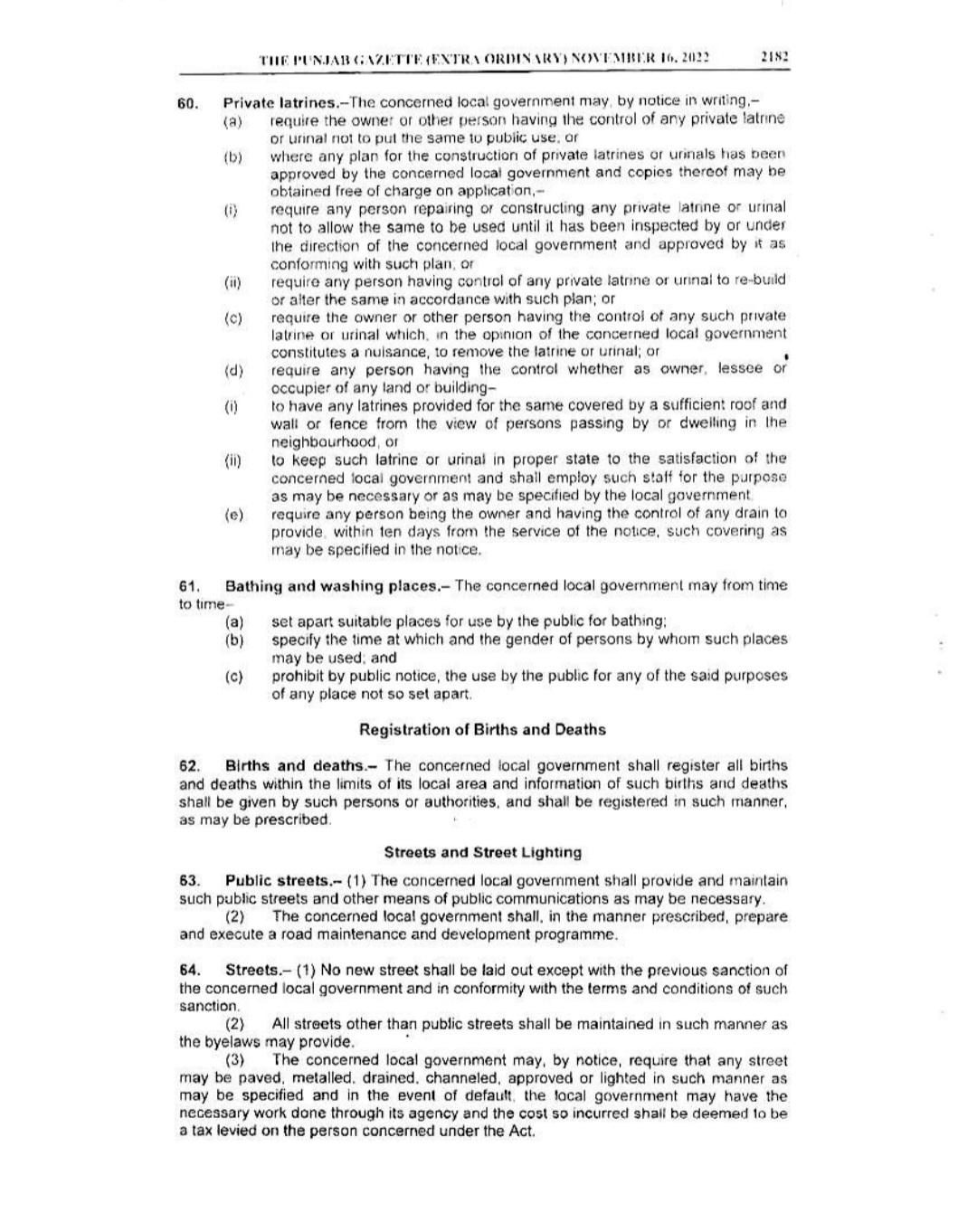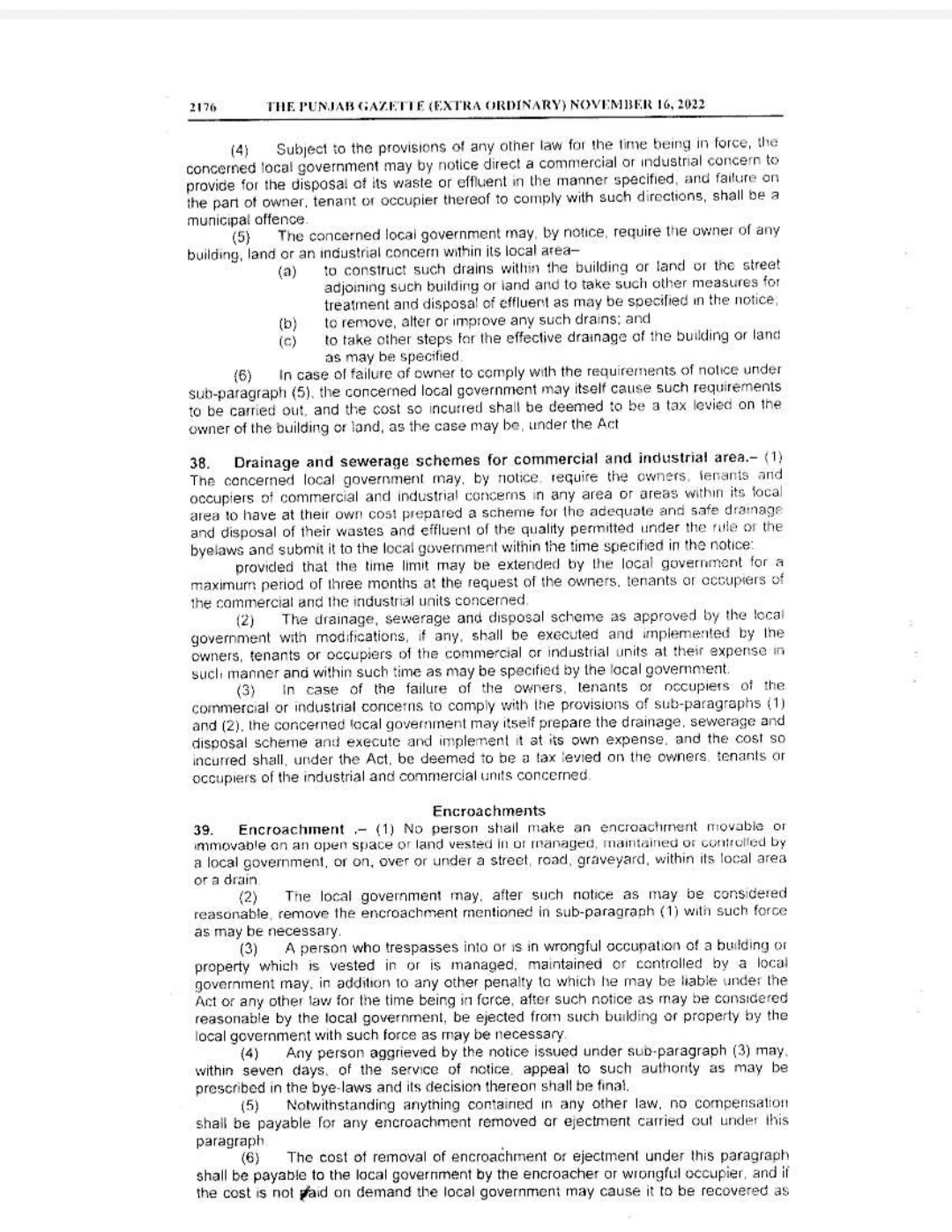 Punjab Local Government Act 2022 Gazette Notification