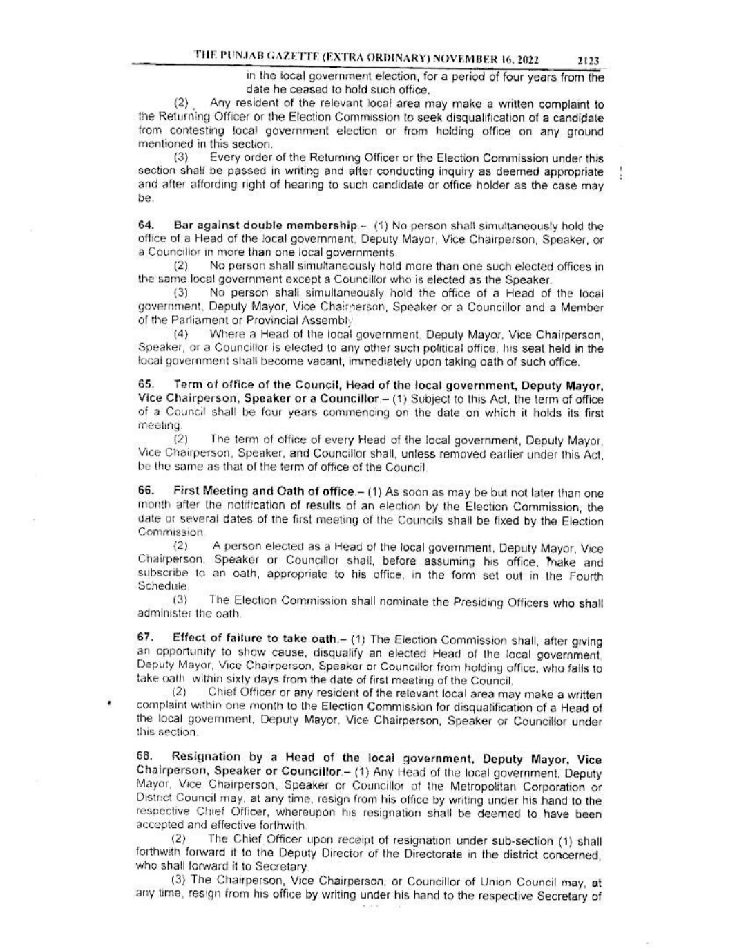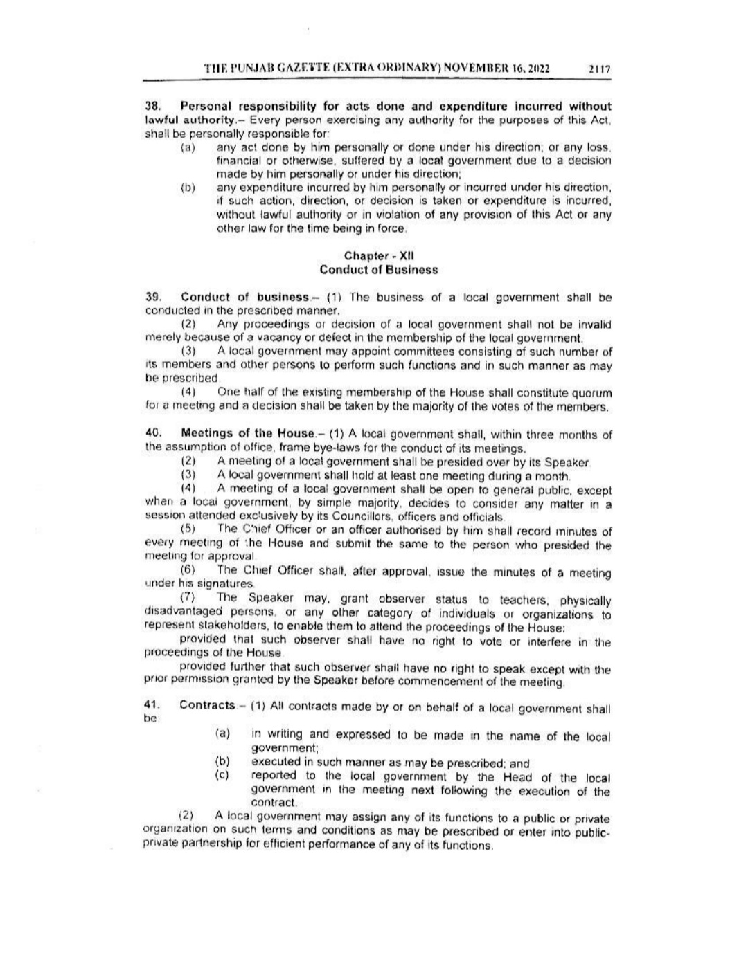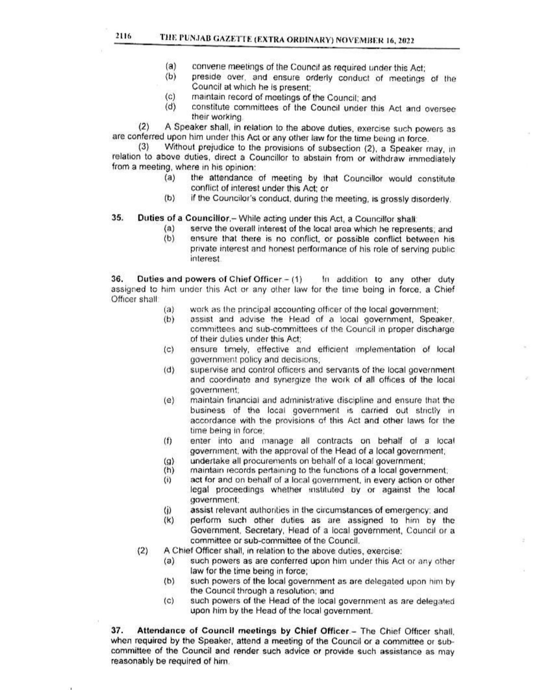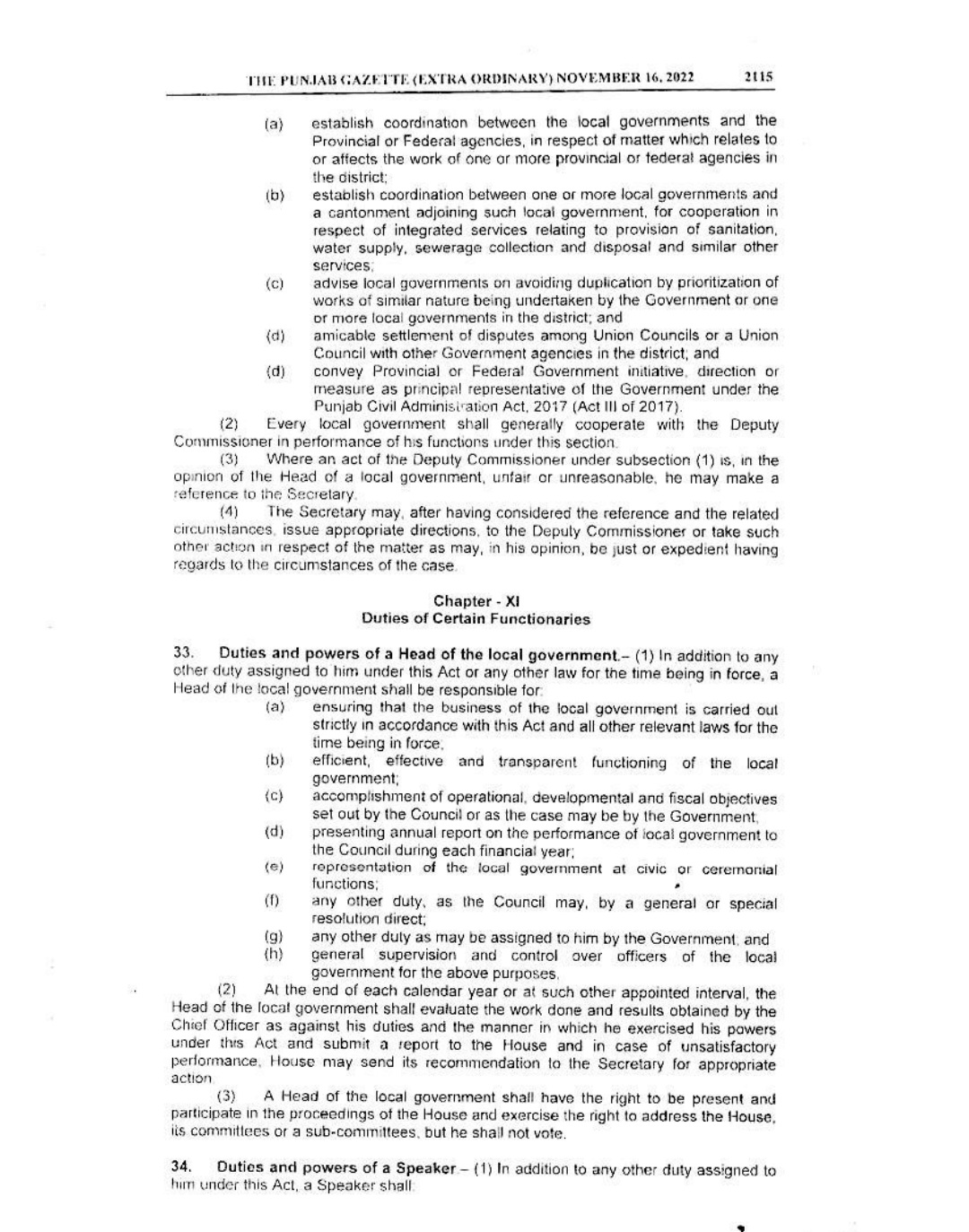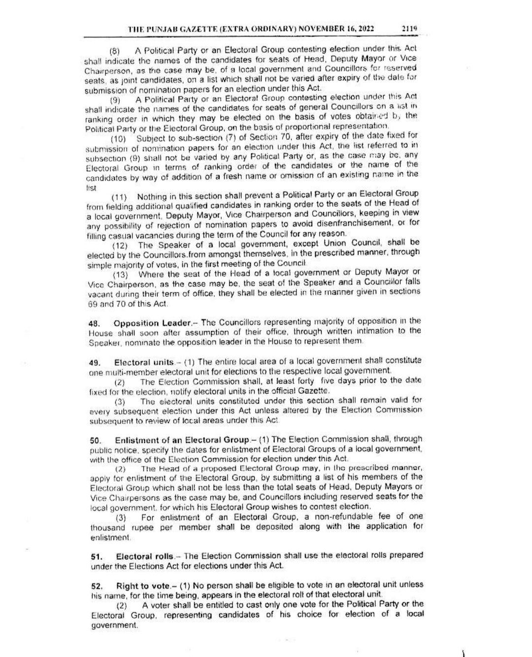 Punjab Local Government Act 2022 Gazette Notification
