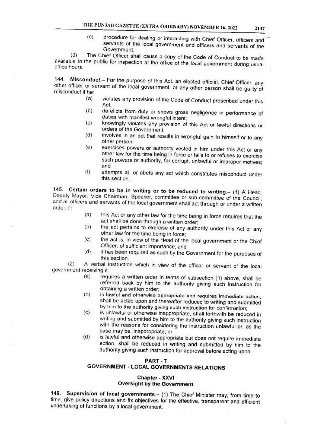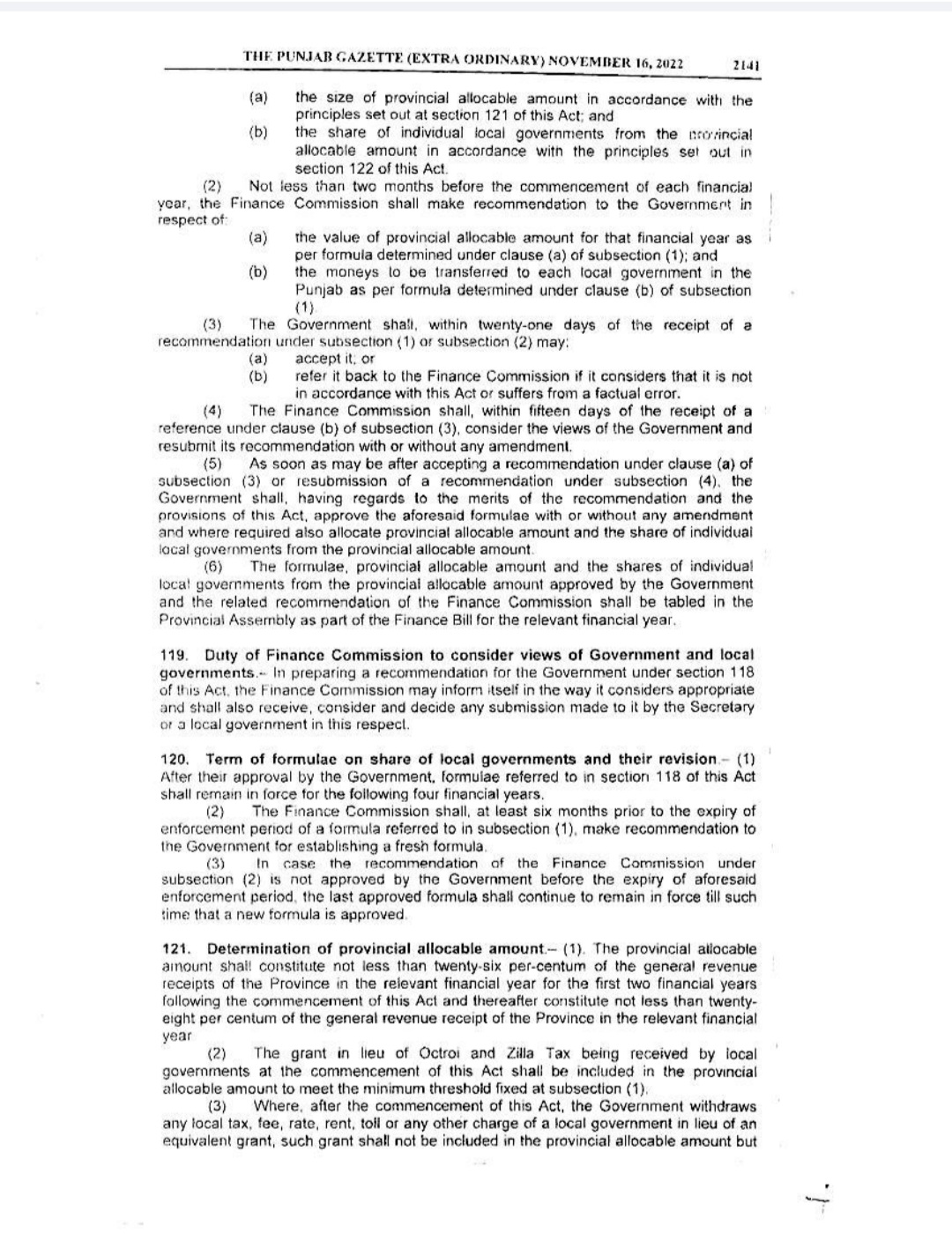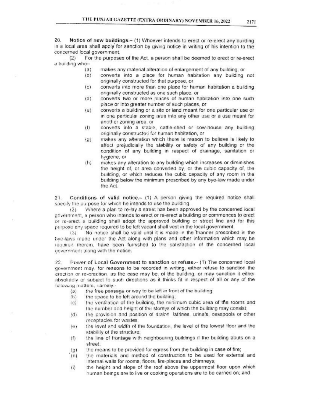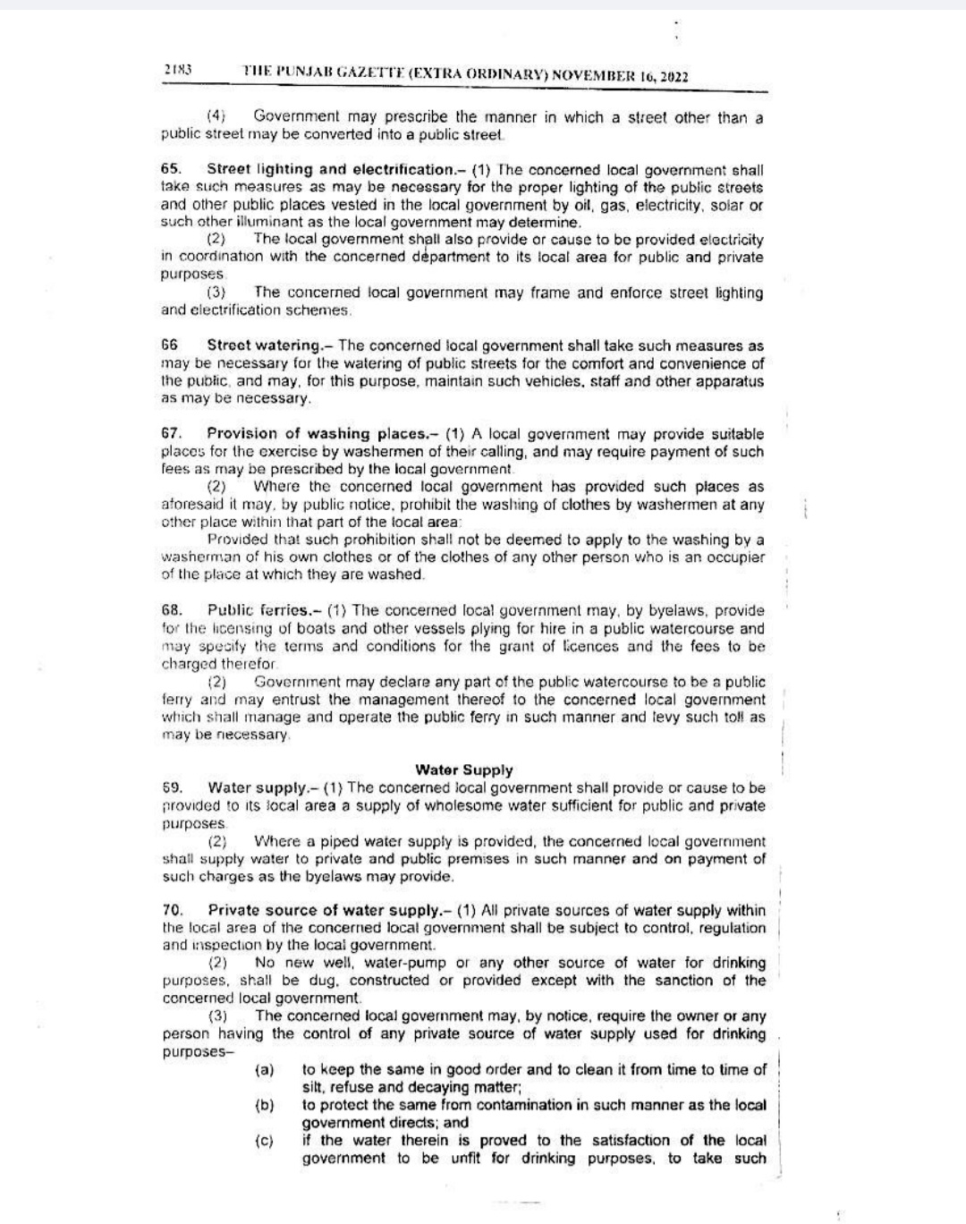 Punjab Local Government Act 2022 Gazette Notification
