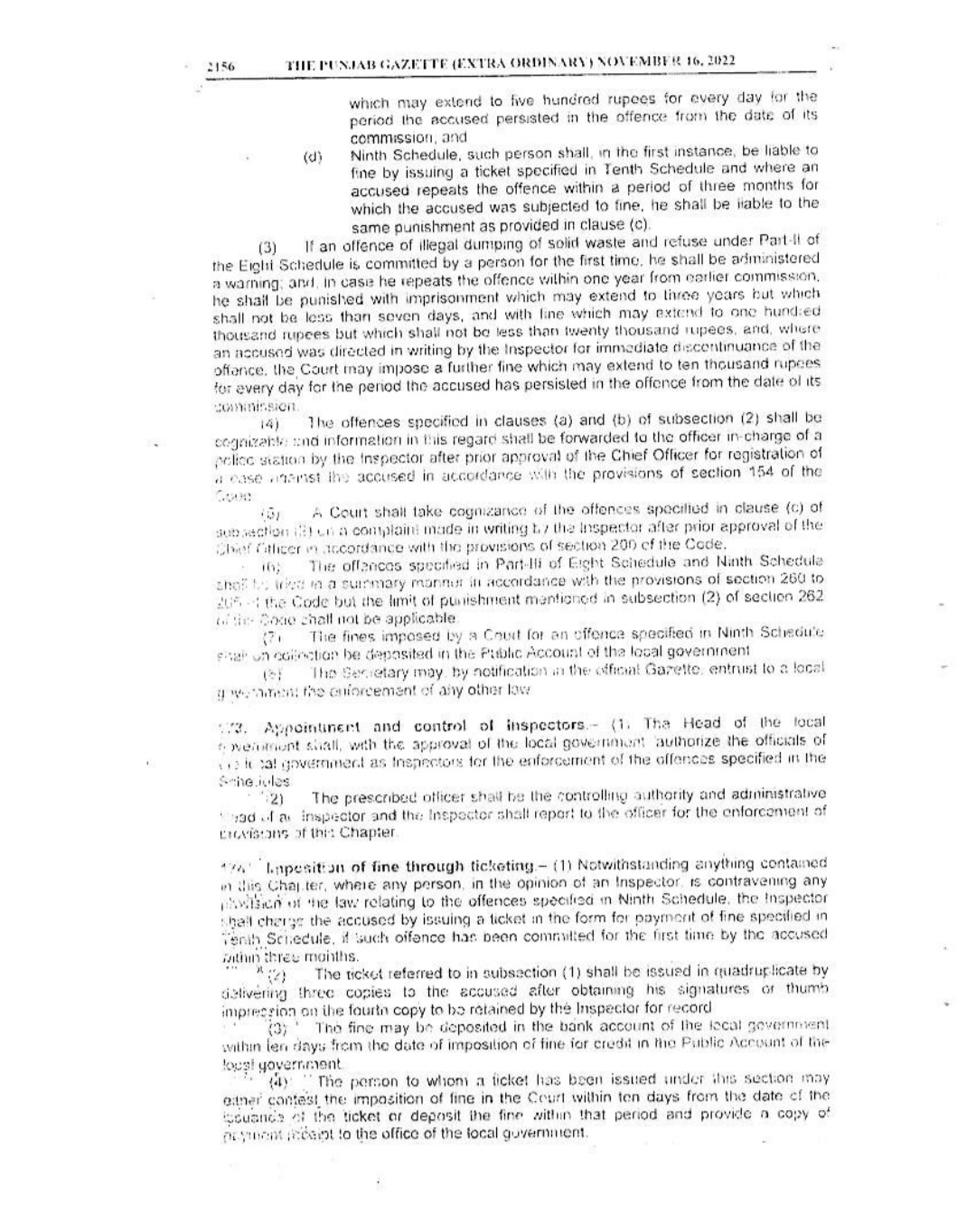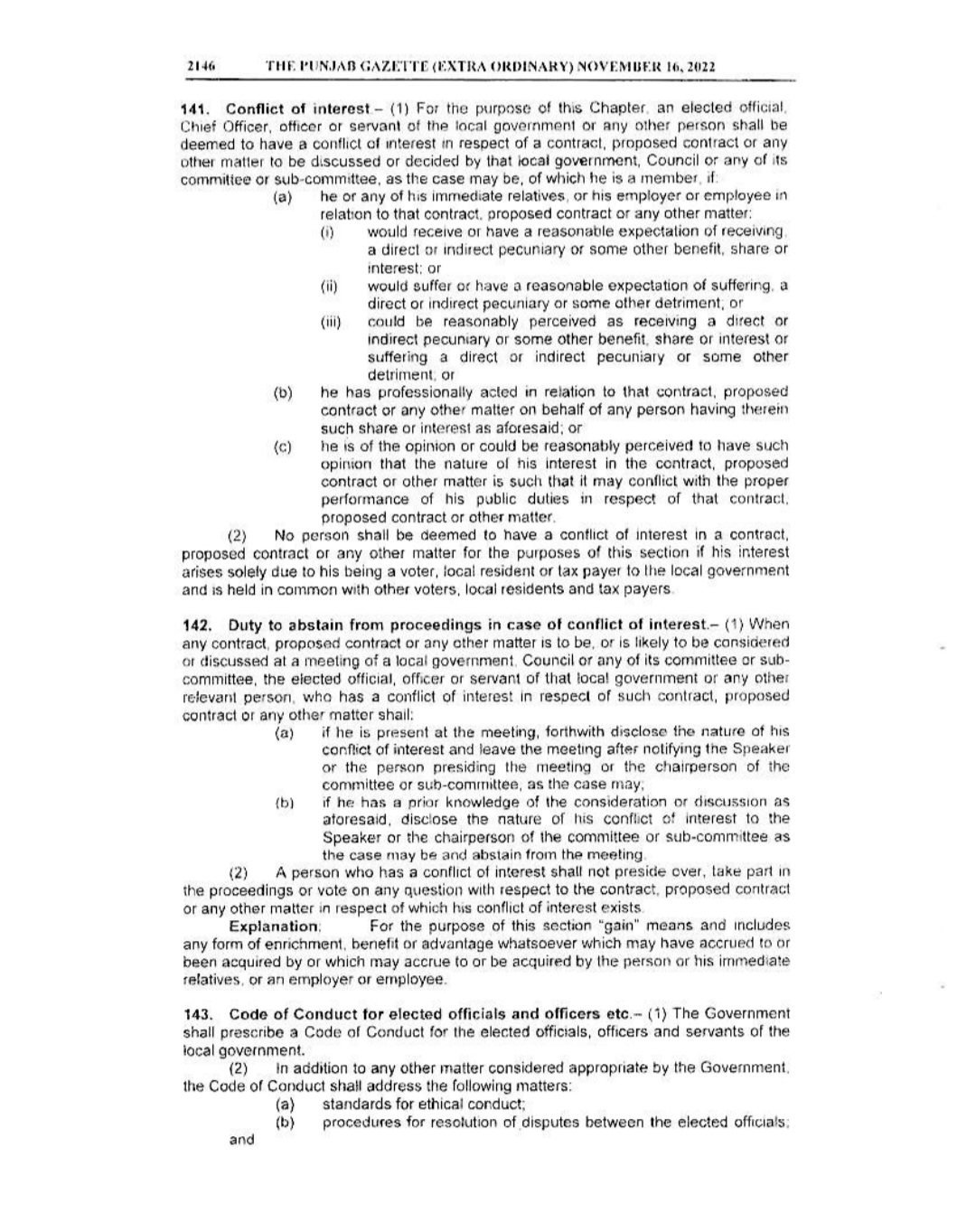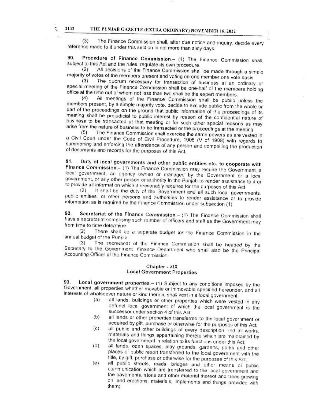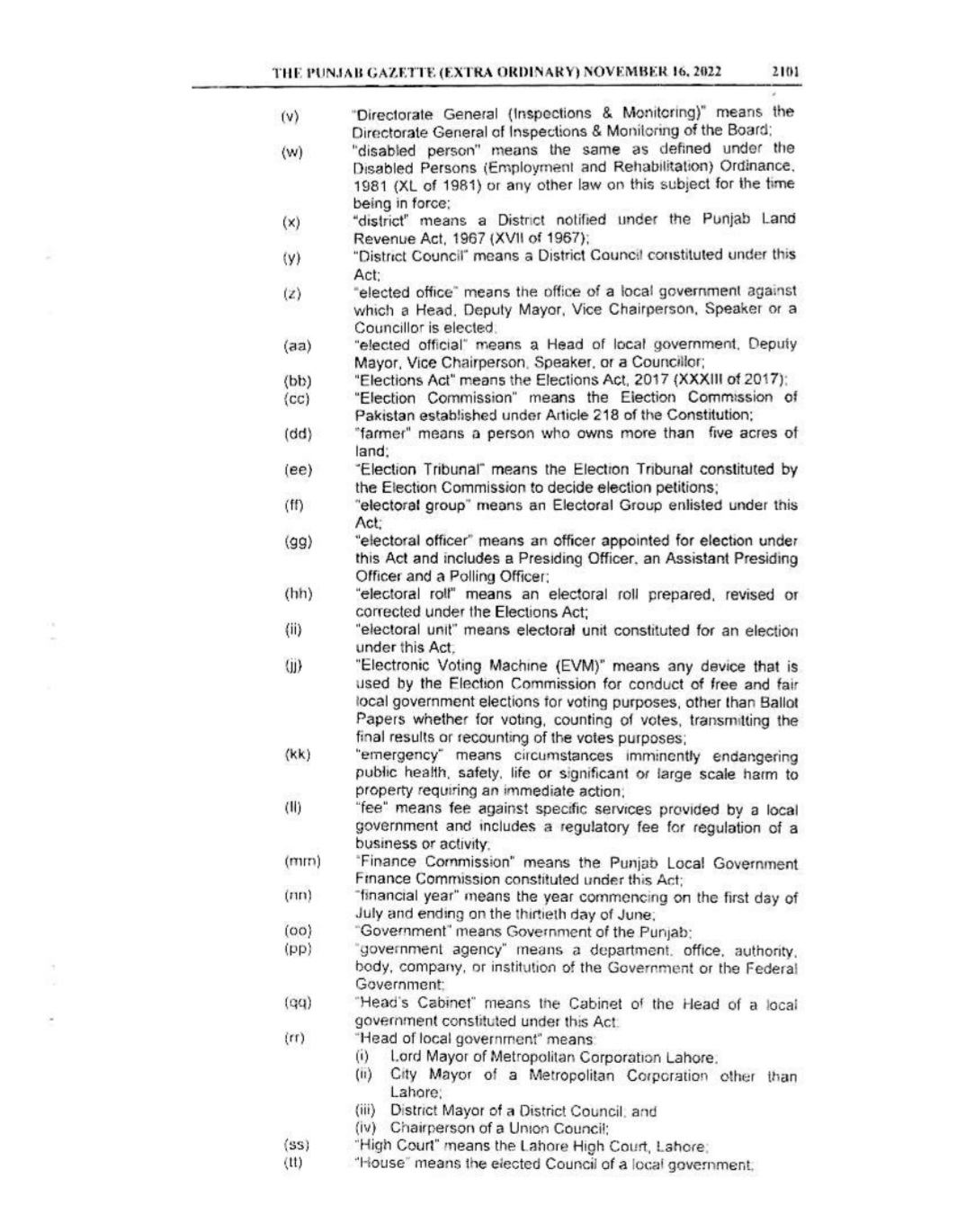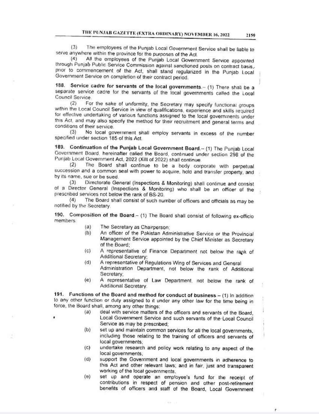Punjab Local Government Act 2022 Gazette Notification