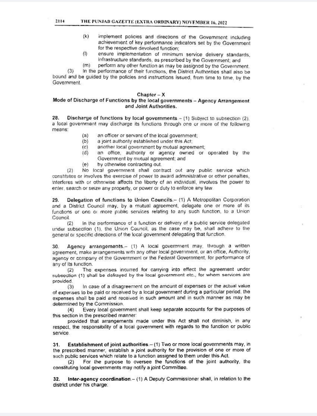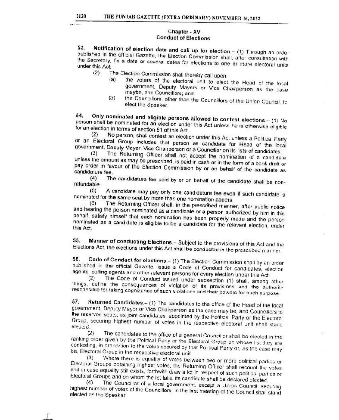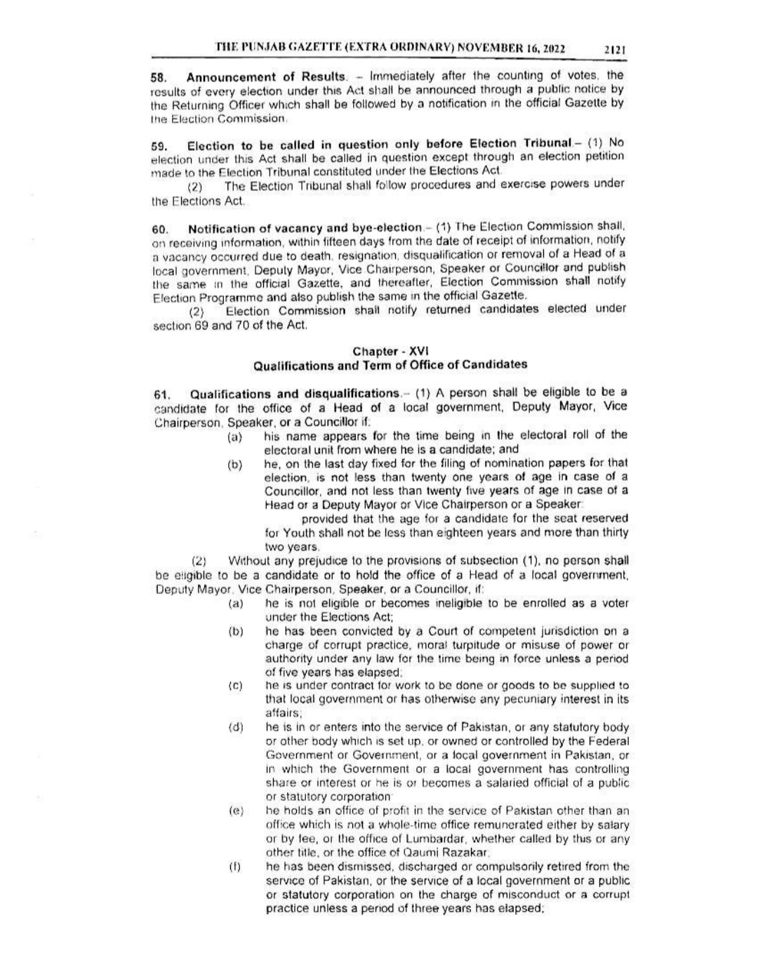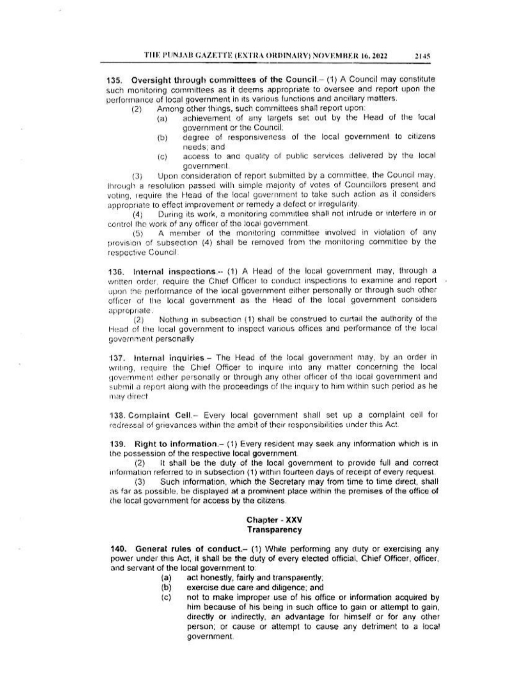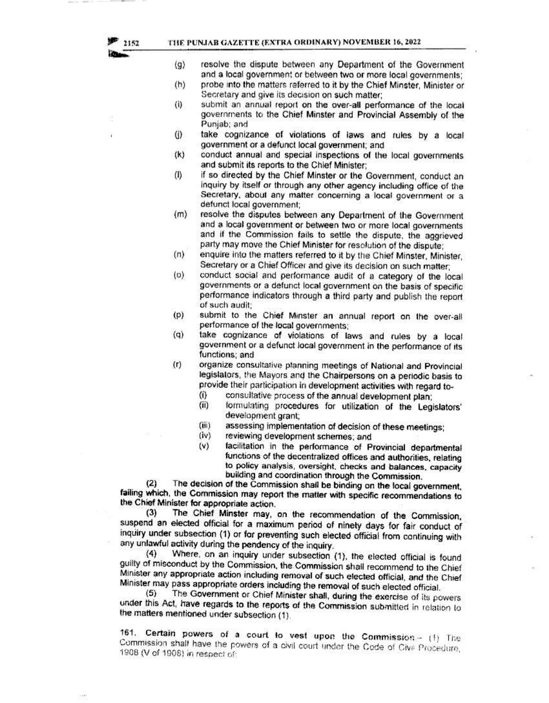Punjab Local Government Act 2022 Gazette Notification