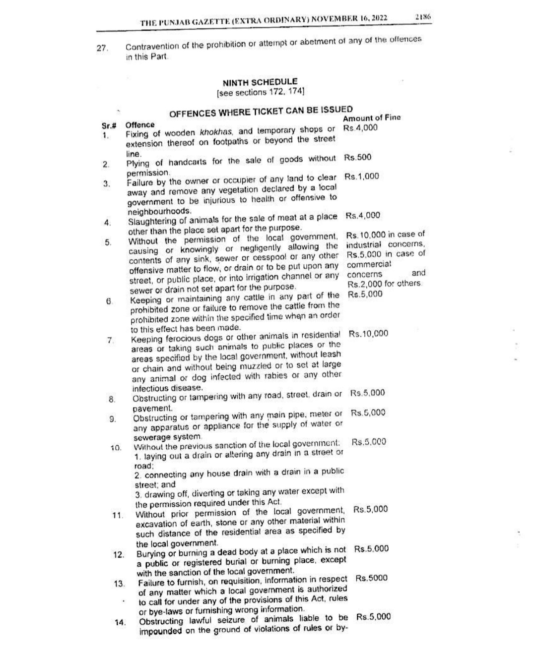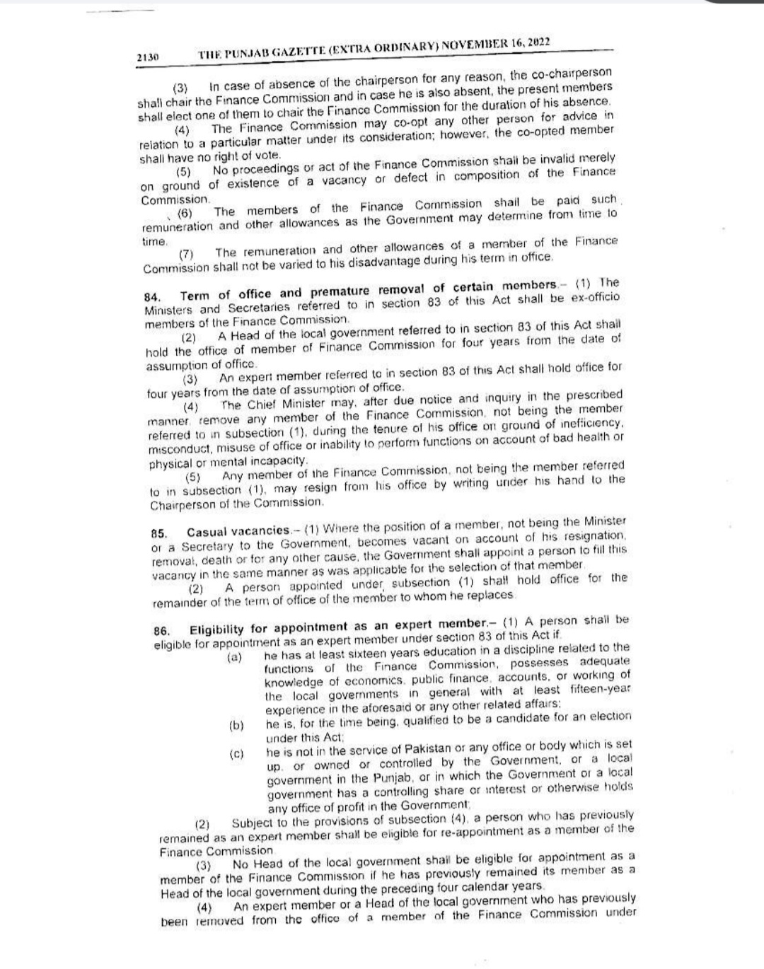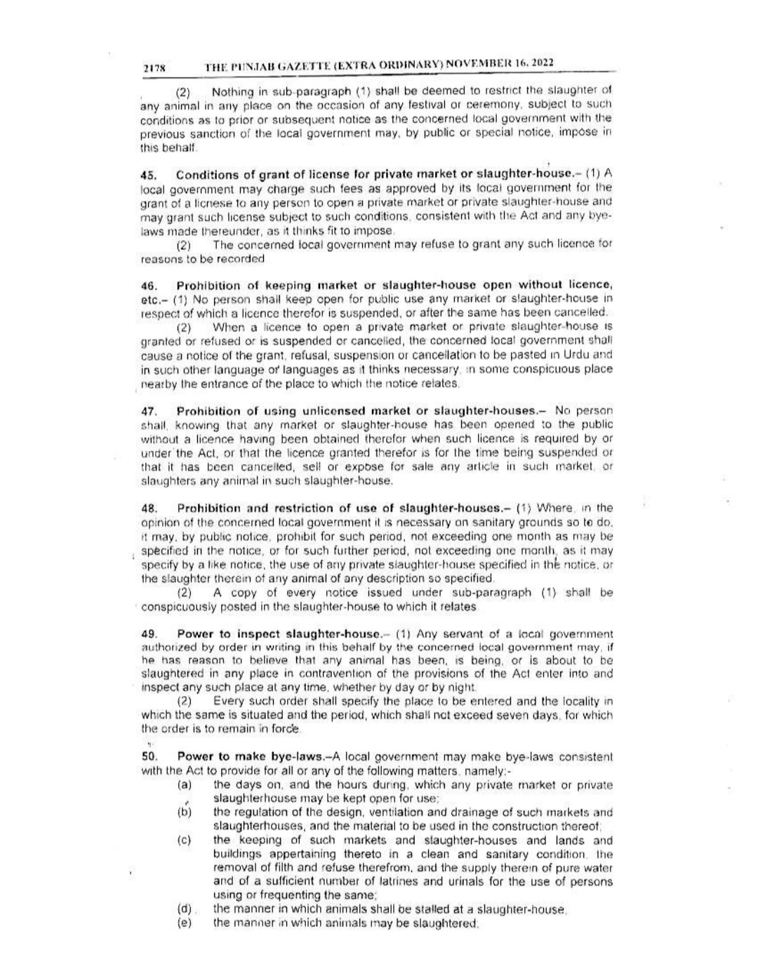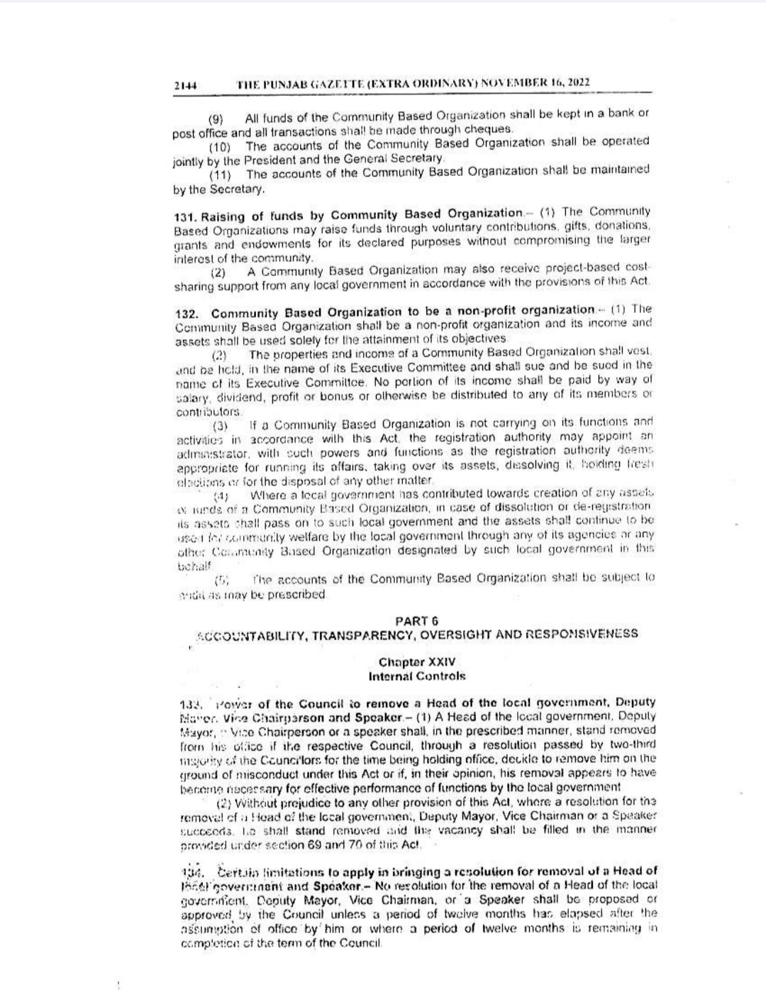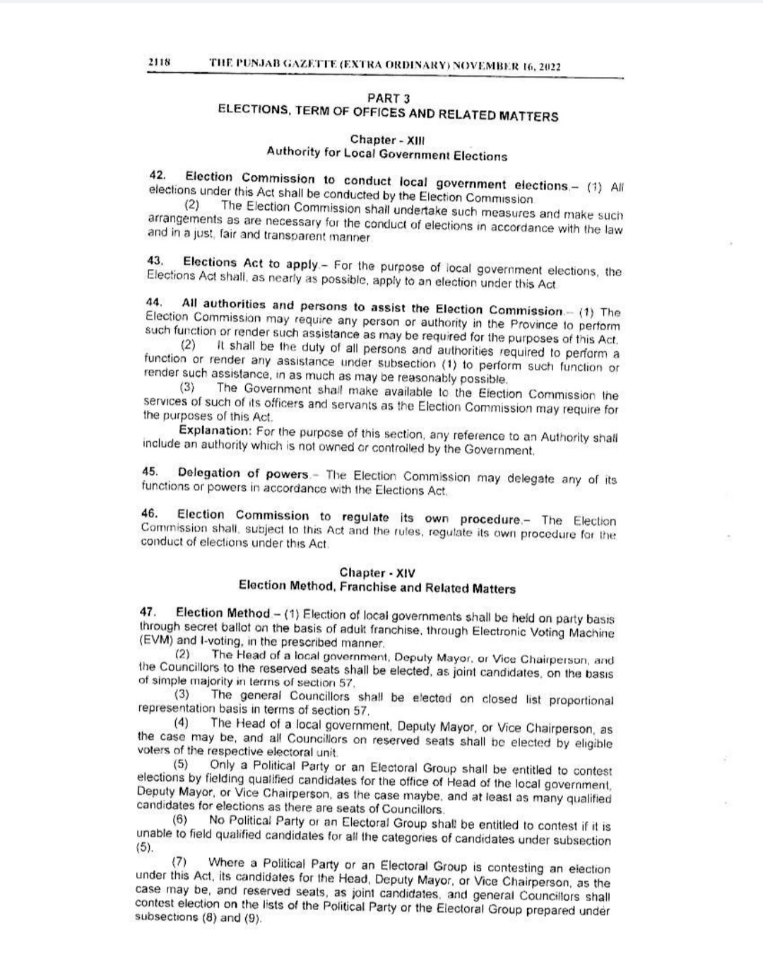 Punjab Local Government Act 2022 Gazette Notification