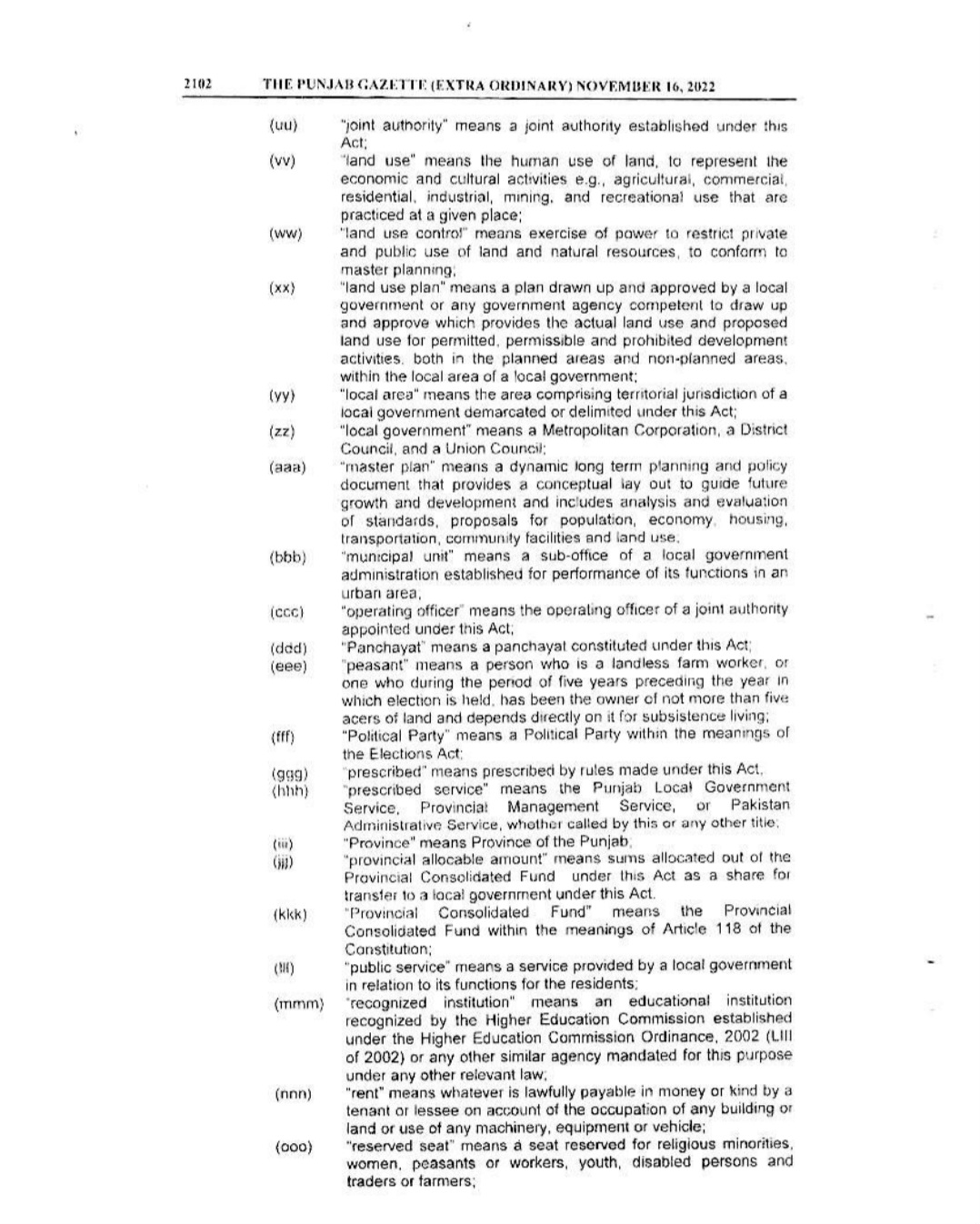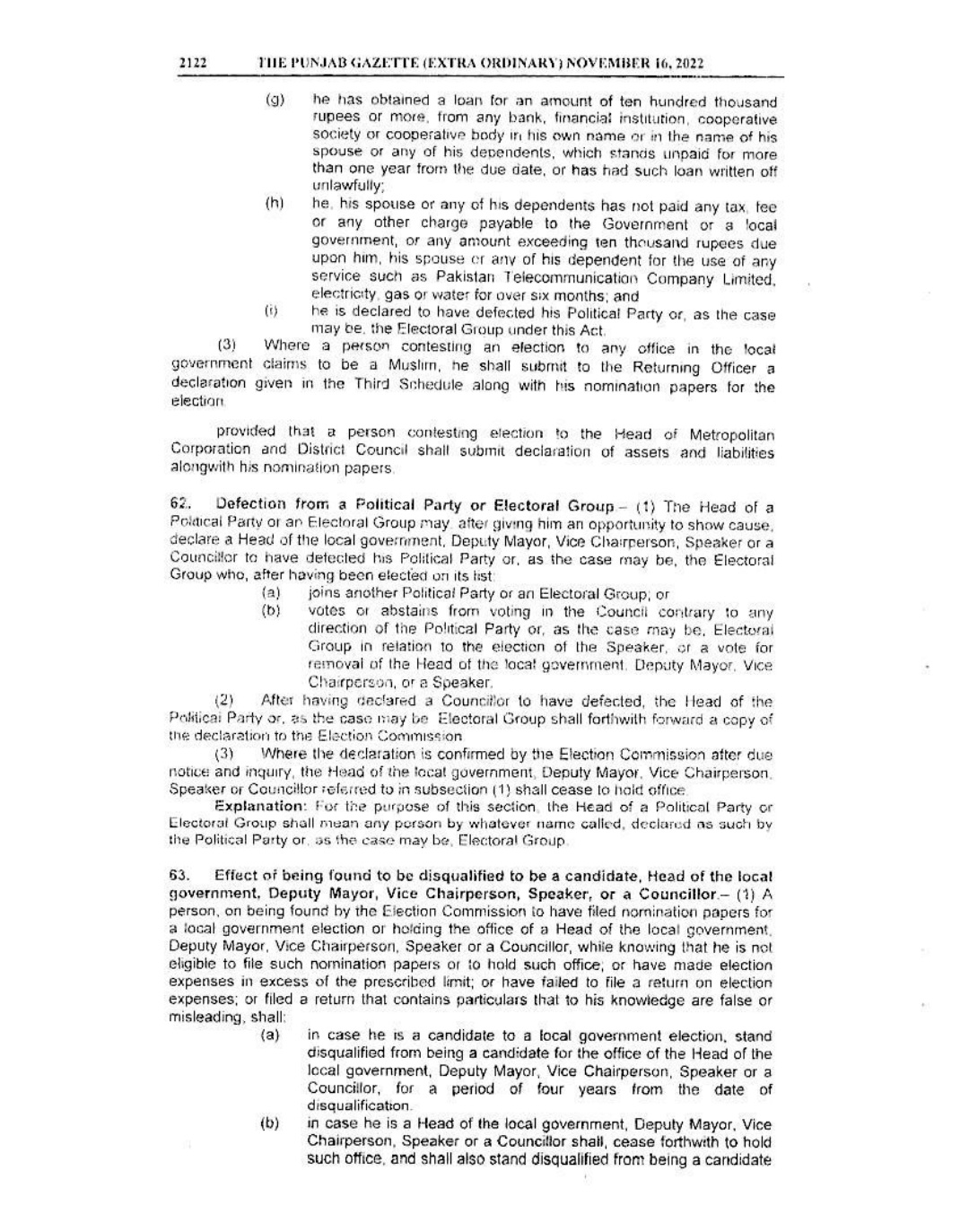 پنجاب لوکل گورنمنٹ ایکٹ 2022ء گزٹ نوٹیفکیشن