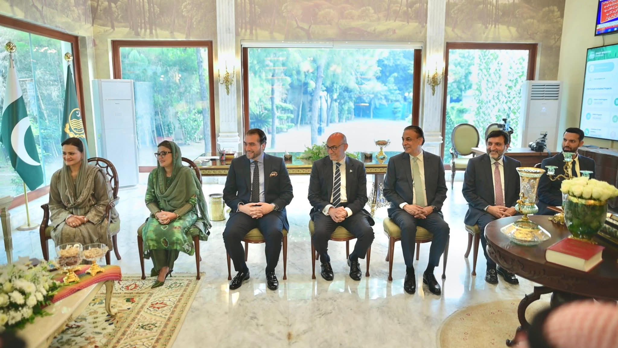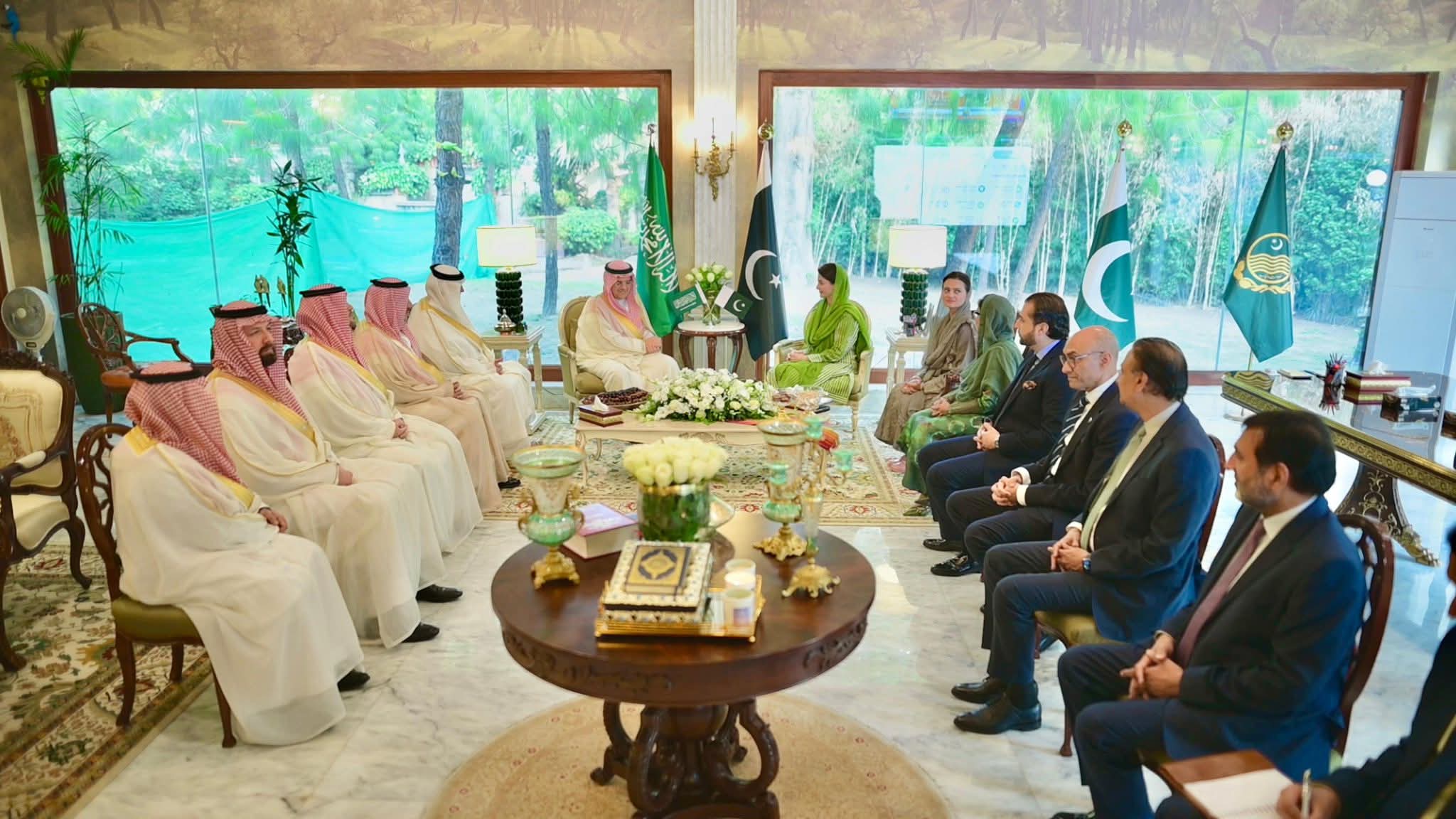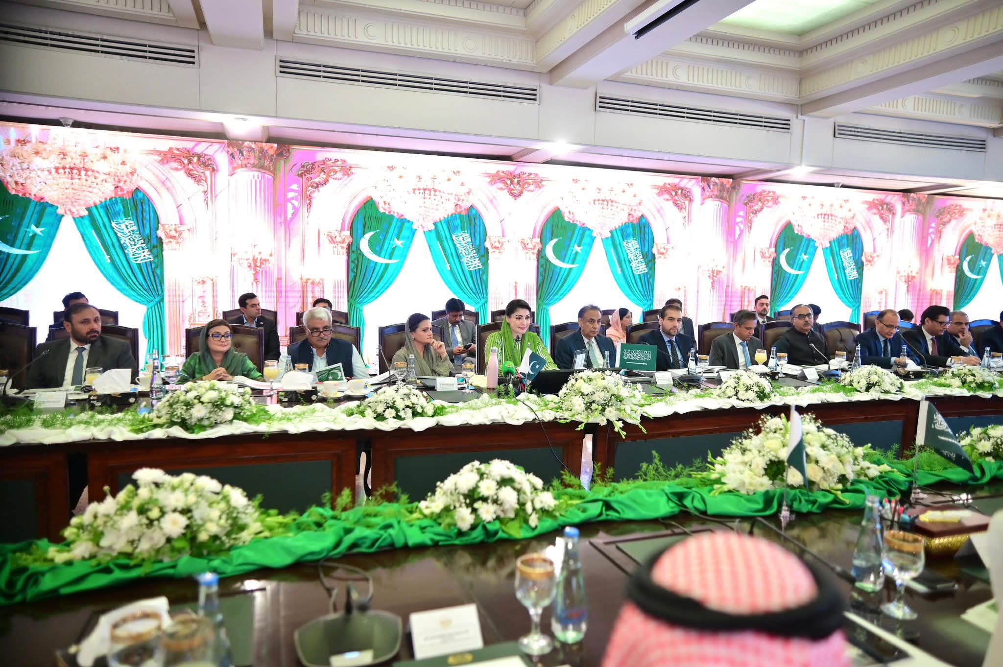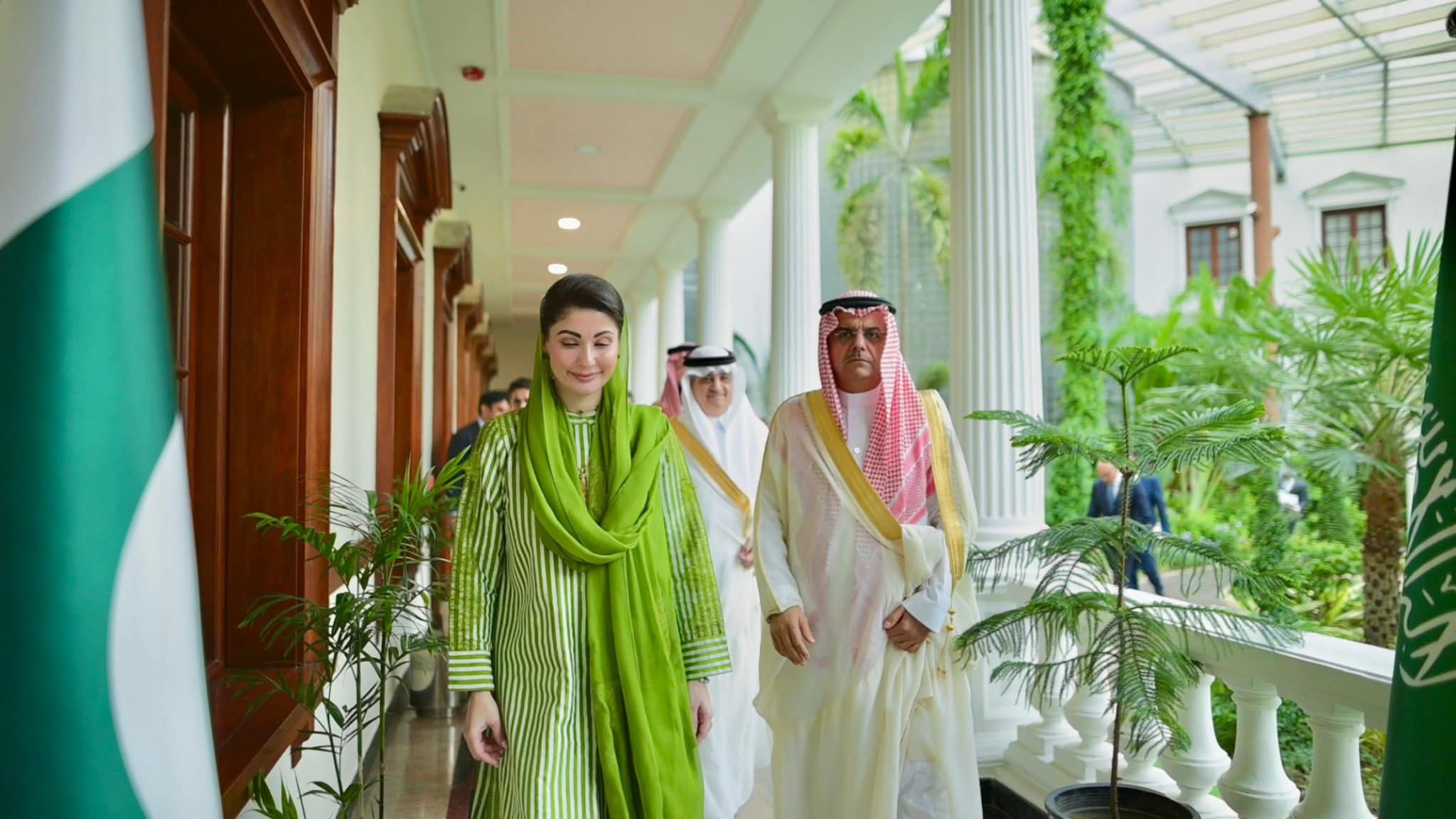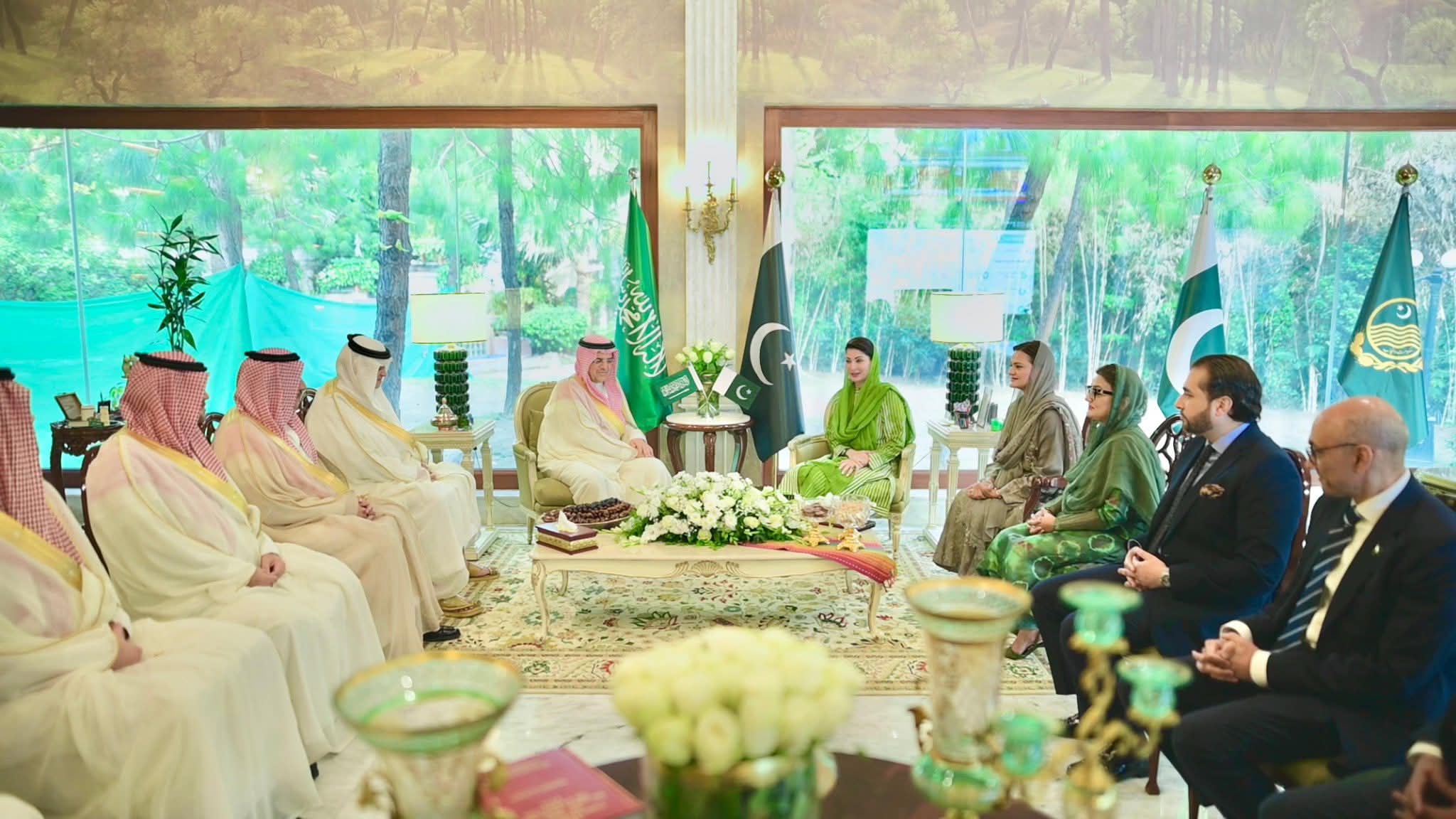 وزیراعلیٰ پنجاب مریم نواز شریف سے سعودی پاک جوائنٹ بزنس کونسل کے وفد نے ملاقات کی،جس میں تفصیلی بریفنگ دی گئی اور مختلف امورپر تبادلہ خیال کیا گیا-پاک سعودی بزنس فورم کے چیئرمین شہزادہ منصور بن محمد بن سعد آل سعود نے وفد کی سربراہی کی- سعودی وفد کو حکومت پنجاب کے نمایاں اقدامات اور پراجیکٹس پر تفصیلی بریفنگ دی گئی-وزیراعلی مریم نوازشریف نے سعودی وفد کا عربی زبان میں خیرمقدم کیا-سعودی وفد نے پنجاب میں عوامی فلاح و بہبود کے پراجیکٹس کو قابل تحسین قرار دیا-وزیراعلیٰ مریم نواز شریف نے پنجاب میں سرمایہ کاری کے وسیع تر مواقع سے بھی آگاہ کیا-وزیراعلیٰ مریم نواز شریف نے سعودی وفد کے بینکنگ، لائیوسٹاک، میٹ ایکسپورٹ اور کیمیکل سیکٹر کے نمائندوں سے ملاقات کے پروگرام پر اظہار مسرت کیا-سعودی وفد کے شرکاء نے لائیوسٹاک، مائنز، انفراسٹرکچر،میٹ،آئی ٹی اوردیگر شعبوں میں دلچسپی کااظہار کیا-وزیراعلیٰ مریم نوازشریف نے پنجاب میں خصوصی سعودی انڈسٹریل سٹیٹ قائم کرنے کا اعلان کیا-سعودی انڈسٹریل سٹیٹ میں 10سالہ ٹیکس ہالی ڈے،10سالہ انکم ٹیکس استثنیٰ دیا جائے گا-سعودی عرب کے لئے سپیشل اکنامک زون میں ون ٹائم کسٹم ڈیوٹی استثنیٰ بھی دیا جائے گا-