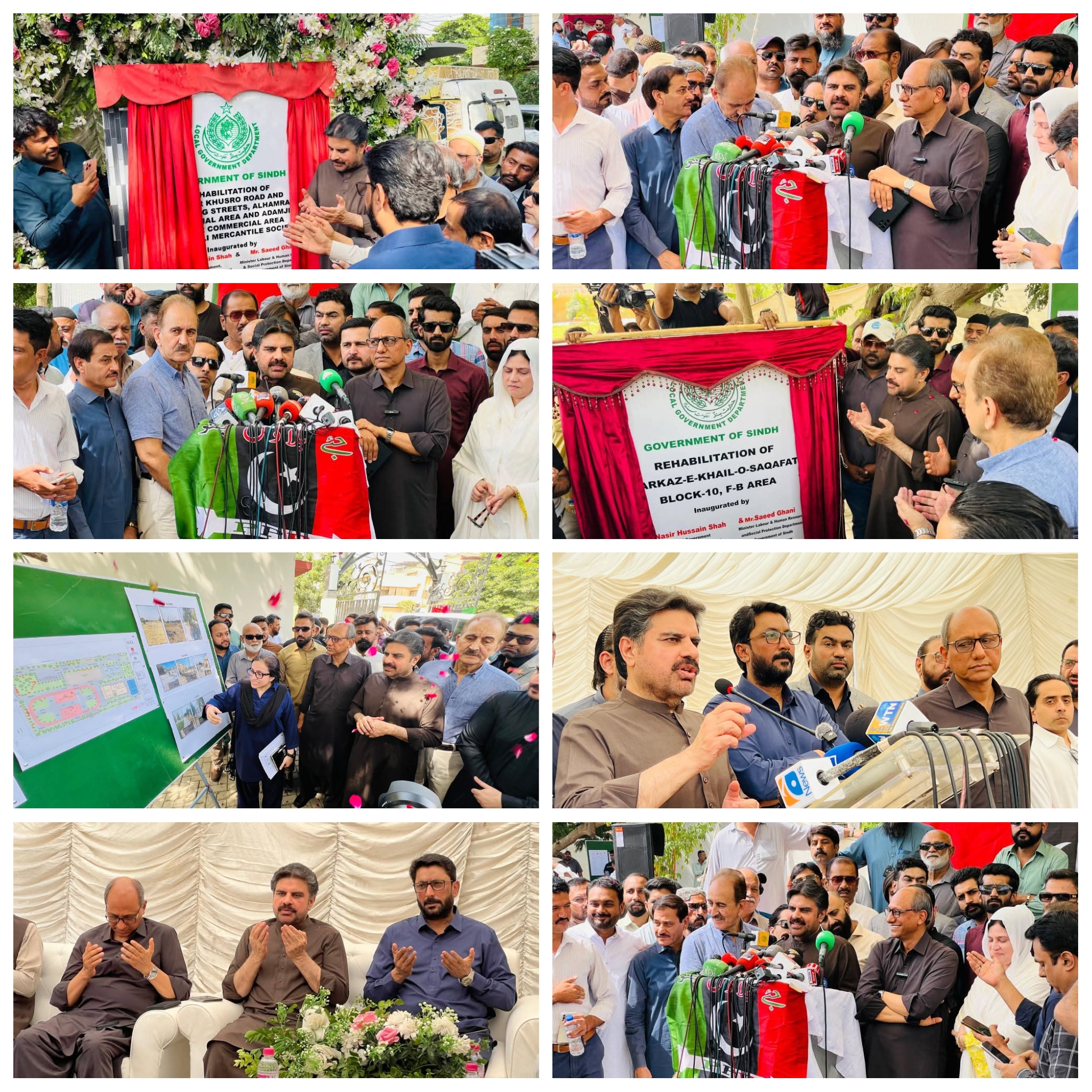 وزیر بلدیات و ہاؤسنگ ٹاؤن پلاننگ سید ناصر حسین شاہ نے وزیر محنت سعید غنی کے ہمراہ ڈسٹرکٹ سینٹرل میں مرکز کھیل و ثقافت ۔کریم آباد انڈر پاس کے دورے اور ڈسٹرکٹ اسٹیٹ میں امیر خسرو روڈ اور اس سے متصل سڑکوں کی بحالی کا کام مکمل ہونے پر افتتاح ہی تقاریب کے موقع اور میڈیا ٹاک کرتے ہوئے کہا ہے کہ صوبے کی ترقی کے لیے تمام اسٹیک ہولڈرز کو اپنا کردار ادا کرنا ہوگا جس کے لیے ہم بلاول بھٹو کی ویژن اور وزیرا اعلی سندھ کی ہدایت کے مطابق بلا کسی تفریق کے ہر جماعت بشمول جماعت اسلامی ،پی ٹی آئی، ایم کیو ایم سمیت تمام منتخب بلدیاتی نمائندوں سے ہر ممکنا تعاون کے لیے تیار ہیں بشرطیکہ سب کا مقصد شہر کی ترقی، بہتری اور عوام کو ریلیف دینے کا ہو ۔پاکستان پیپلز پارٹی کا منشور سب کو ساتھ لے کر چلنا ہے ۔انہوں نے کہا کہ سندھ حکومت عوام کی مشکلات کو حل کرنے کے لیے پیش پیش ہے جو بھی مسائل ہوں ان کی نشاندہی کی جائے انہیں حل کیا جائے گا۔