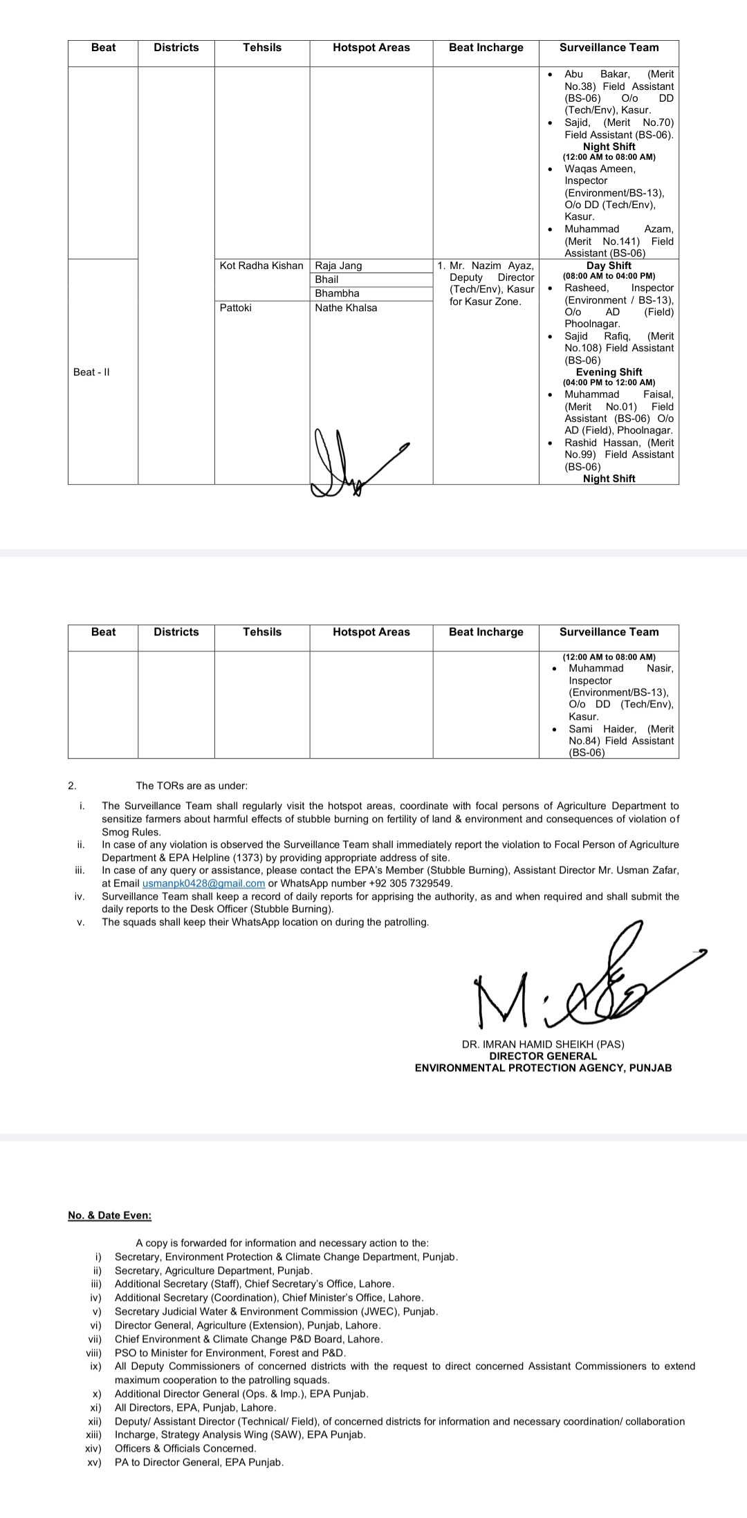 ڈی جی ای پی اے ڈاکٹر عمران حامد شیخ: زیرو ٹالرنس پالیسی پر سختی سے عمل کیا جائے گا۔تمام ڈپٹی کمشنرز کو اسکواڈز سے مکمل تعاون کی ہدایت بھی کی گئی ہے۔اسسٹنٹ ڈائریکٹر عثمان ظفر کواسٹبل برننگ کے فوکل پرسن نامزد کیا گیا ہے۔ترجمان کے مطابق کسان اطلاع کے لیے ای پی اے واٹس ایپ نمبر 0305-7329549 پر رابطہ کریں