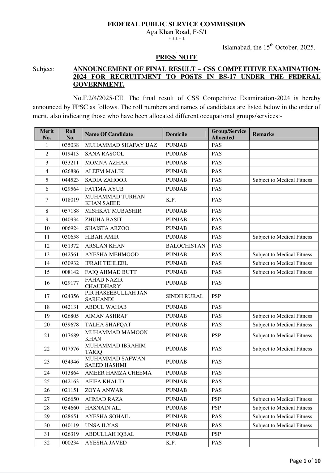 Result, CSS Exam,2024