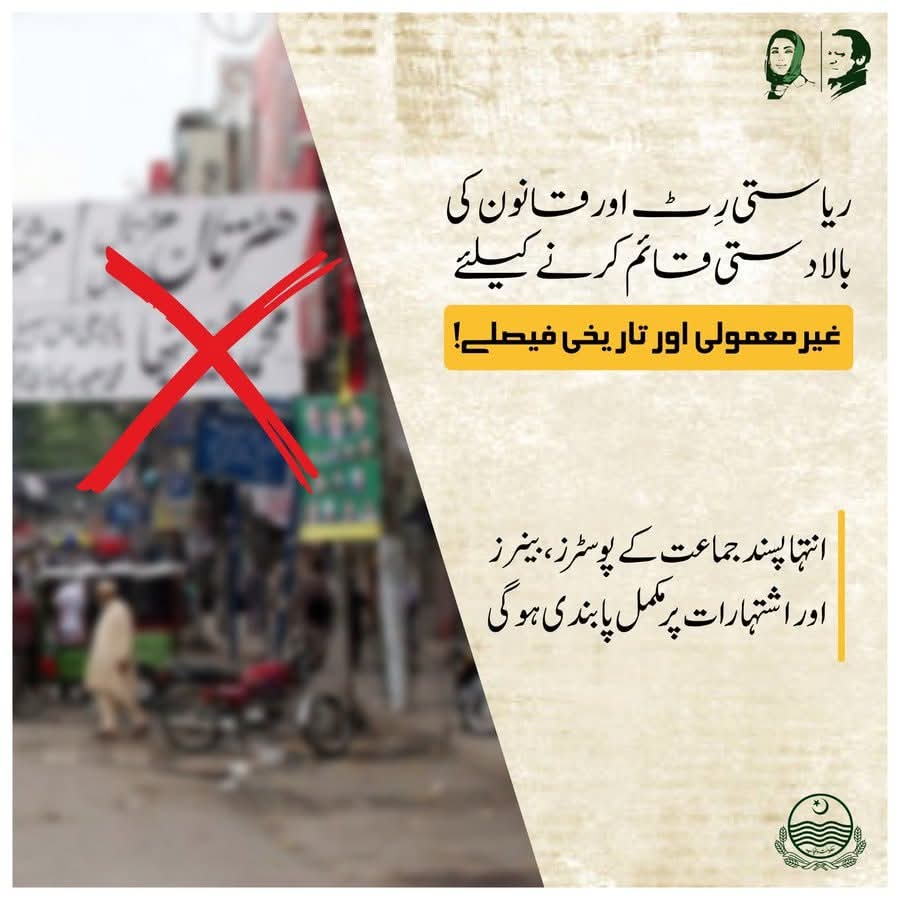 پنجاب بھر میں سیکشن 144 نافذالعمل ہے،خلاف ورزی پر دہشت گردی ایکٹ کے تحت مقدمات درج ہونگے۔پنجاب حکومت کا انتہا پسند جتھوں کے سہولت کاروں اور حامیوں کے خلاف سخت ترین کارروائی کا فیصلہ کیاگیا۔بازار، دکانیں یا ٹرانسپورٹ زبردستی بند کرانے والوں پر دہشتگردی ایکٹ لاگو ہوگا۔شوشل میڈیا پر نفرت انگیز مواد پھیلانے والوں کے خلاف پیکا ایکٹ کے تحت مقدمات درج ہونگے۔سوشل میڈیا پر شر انگیزی، نفرت اور فتنہ پھیلانے والوں کے لیے زیرو ٹالرنس پالیسی کا فیصلہ کیاگیا۔اجلاس میں انتہا پسند گروہوں کی ہر غیر قانونی سرگرمی پر مکمل پابندی عائد،سیکیورٹی اداروں کو فوری ایکشن کے اختیارات تفویض کیے گئے۔وزیراعلیٰ مریم نواز شریف کی زیرِ صدارت امن و امان پر غیر معمولی اجلاس میں پنجاب حکومت کاوفاقی حکومت کو انتہا پسند جماعت پر پابندی عائد کرنے کی سفارش کا فیصلہ کیا گیا۔اجلاس میں بتایا گیا کہ پنجاب میں نفرت انگیزی، اشتعال انگیزی اور قانون شکنی میں ملوث افراد کو فوری گرفتار کیا جائے گا۔ پولیس افسران کی شہادت اور سرکاری املاک کی تباہی میں ملوث رہنماؤں اور کارکنوں کے خلاف دہشت گردی کی عدالتوں میں مقدمات چلائے جائیں گے۔ انتہا پسند جماعت کی قیادت کو انسدادِ دہشت گردی ایکٹ کے فورتھ شیڈول میں شامل کیا جائے گا۔ اجلاس میں فیصلہ کیا گیا کہ انتہا پسند جماعت کی تمام جائیدادیں اور اثاثے محکمہ اوقاف کے حوالے کیے جائیں گے۔ انتہا پسند جماعت کے پوسٹرز، بینرز اور اشتہارات پر مکمل پابندی ہوگی۔ نفرت پھیلانے والے انتہا پسند جماعت کے سوشل میڈیا اکاؤنٹس بند کیے جائیں گے۔ انتہا پسند جماعت کے تمام بینک اکاؤنٹس منجمد کیے جائیں گے۔ لاؤڈ اسپیکر ایکٹ کی خلاف ورزی پر سخت ترین کارروائی ہوگی۔ پنجاب حکومت غیر قانونی افغان باشندوں کا رئیل ٹائم ڈیٹا تیار کرے گی اور افغان شہریوں کو ٹیکس نیٹ میں بھی لایا جائے گا۔ غیر قانونی تارکین وطن کے لئے وہسِل بلوئر سسٹم متعارف کرایا جائے گا اور اطلاع دینے والے کا نام مکمل رازداری میں رکھا جائے گا۔ اجلاس میں پنجاب حکومت کا غیر قانونی رہائشیوں اور ان کے کاروباروں کے خلاف کومبنگ آپریشن شروع کرنے کا فیصلہ کیا گیا ہے۔ غیر قانونی غیر ملکی باشندوں کو وفاقی حکومت کی پالیسی کے مطابق فوری طور پر ڈی پورٹ کیا جائے۔ وزیراعلیٰ مریم نواز شریف نے صوبہ بھرمیں غیر قانونی اسلحہ کی فوری بازیابی کا حکم دیا۔ ہوم ڈیپارٹمنٹ پنجاب کی جانب سے غیر قانونی اسلحے کو ایک ماہ میں جمع کروانے کا الٹی میٹم جاری کر دیا گیا۔ ایک ماہ ایک اندر شہری اپنا قانونی اسلحہ کو خدمت مرکز سے رجسٹر ڈ کرائیں گے۔ وزیراعلیٰ مریم نواز شریف نے اسلحہ فروشوں، تمام ڈیلرز کے سٹاک کا معائنہ کرنے اور پنجاب میں نئے اسلحہ لائسنس جاری کرنے پر مکمل پابندی حکم بھی دیا ہے۔ پنجاب حکومت نے وفاقی حکومت سے اسلحہ فیکٹریز اور مینوفیکچررز کو ریگولرائز کرنے کی سفارش کر دی۔ اجلاس میں صوبہ بھر میں غیر قانونی اسلحہ رکھنے کی سزا میں اضافہ کی منظوری دے دی۔ غیر قانونی اسلحہ رکھنے کی سزا چودہ سال قید اور بیس لاکھ روپے تک جرمانہ مقرر اور ناقابل ضمانت جرم بنا دیا گیا۔