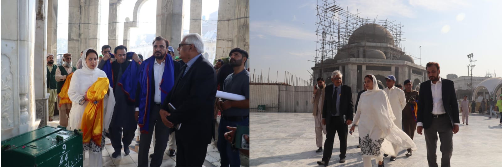 کمشنر لاہور ڈویژن مریم خان نے داتا صاحب کمپلیکس توسیع کیلئے جاری ترقیاتی کاموں پر پیشرفت جائزہ کے حوالے سے داتا دربار کا دورہ کیا اور اجلاس کی صدارت کی۔ کمشنر لاہور نے داتاصاحب دربار پر حاضری دی دعا کی اور پورے کمپلیکس کا دورہ کیا۔ اس موقع پر سیکرٹری اوقاف پنجاب سید طاہر رضا بخاری نے داتا دربار جاری ترقیاتی پیشرفت سے آگاہ کیا۔بعد ازاں کمشنر لاہور کی زیر صدارت داتا دربار کمپلیکس میں توسیع اور اطراف میں مجوزہ ترقیاتی کاموں پر پیشرفت جائزہ کے حوالے سے اجلاس منعقد ہوا۔ اجلاس میں متعلقہ محکموں نے داتا صاحب دربار کمپلیکس کی توسیع و تجاویز کے حوالے سے شرکاء کو بریفنگ دی۔ کمشنر لاہور نے سگنل فری کوریڈور، دربار گرد ٹریفک روانی اور توسیعی تجاویز کا جائزہ لیا۔ انہوں نے داتا دربار کے گرد وین سٹینڈ، برڈ مارکیٹ و ڈمپنگ سائٹ کی منتقلی کیلئے عملی پلان طلب کرلیا۔کمشنر لاہور مریم خان نے کہا ہے کہ داتا صاحب دربار مرجع خلائق ہے، عقیدت مندوں کا جم غفیر حاضری کیلئے باقاعدہ آتا ہے، داتا دربار برصغیر کے لوگوں کا روحانی آسودگی کا مقام ہے، انہوں نے کہا کہ داتا صاحب دربار کمپلیکس میں ڈویلپمنٹ کاموں میں زائرین کیلئے آسانیوں اور سہولیات کو مدنظر رکھتے ہوئے اعلی معیار کے مطابق پلاننگ کی جارہی ہے۔ کمشنر لاہور نے داتا دربار کمپلیکس کے سامنے گرین بیلٹ اور زائرین کی آمدورفت سہولیات کا خصوصی جائزہ لیا۔ اجلاس میں ڈی سی لاہور سید موسی رضا، جی ایم نیسپاک، سی ای اوایل ڈبلیو ایم سی، سی او ایم سی ایل، اے سی سٹی، ایڈمنسٹریٹر داتا دربار و دیگر افسران نے شرکت کی۔