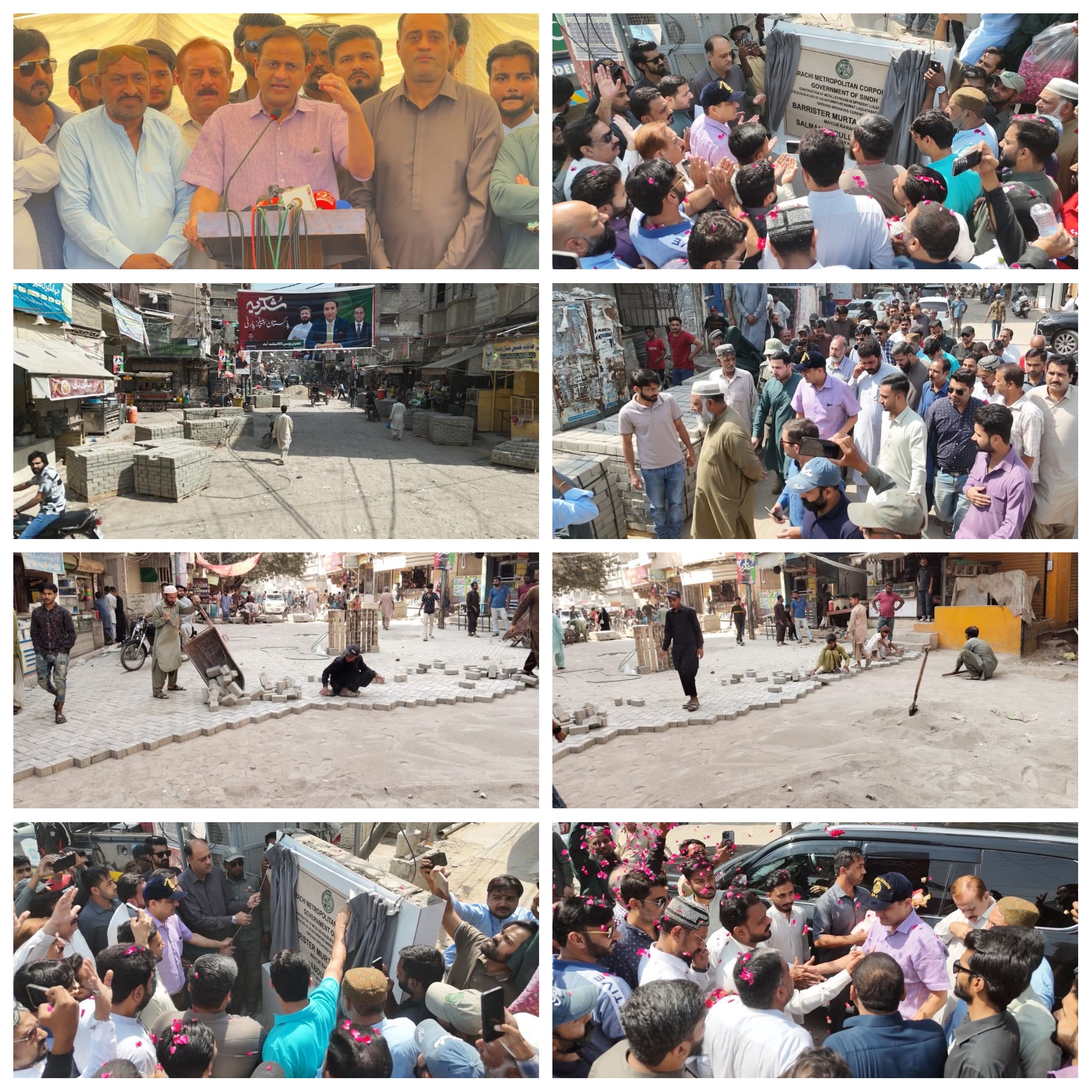 میئر کراچی بیرسٹر مرتضیٰ وہاب نے جمعرات کے روز ضلع وسطی کی مختلف یوسیز میں ترقیاتی کاموں کا سنگ بنیاد رکھ دیا، اس موقع پر ڈپٹی میئر کراچی سلمان عبداللہ مراد، سٹی کونسل میں ڈپٹی پارلیمانی لیڈر دل محمد، جمن دروان، شکیل خان شیروانی، جمال ناصر، حاجی فرحان اور عوام کی بڑی تعداد بھی موجود تھی، میئر کراچی بیرسٹر مرتضیٰ وہاب نے اس موقع پر منعقدہ تقریب سے خطاب کرتے ہوئے کہا کہ بلدیہ عظمیٰ کراچی کی جانب سے ضلع وسطی کی مختلف یوسیز میں اندرونی سڑکوں کی تعمیر و بحالی کے منصوبے کا باقاعدہ کام شروع کردیا گیا ہے، ان منصوبوں کے تحت لیاقت آباد فرنیچر مارکیٹ، غریب آباد اور بھنگوریہ گوٹھ کے علاقوں میں سڑکوں کی تعمیر و بحالی کے کام تیزی سے جاری ہیں،انہوں نے کہا کہ مجموعی طور پر 2 لاکھ 5 ہزار کیوبک فٹ سب بیس اور 2 لاکھ 20 ہزار کیوبک فٹ ایگریگیٹ بیس کورس بچھایا جائے گا جبکہ 4 لاکھ 30 ہزار مربع فٹ پیور بلاکس کی تنصیب کی جائے گی، اس منصوبے میں 60mm اور 80mm کے بلاکس استعمال کیے جارہے ہیں تاکہ سڑکوں کی پائیداری کو یقینی بنایا جاسکے،ان منصوبوں کی تکمیل سے علاقے میں ٹریفک کی روانی بہتر ہوگی،