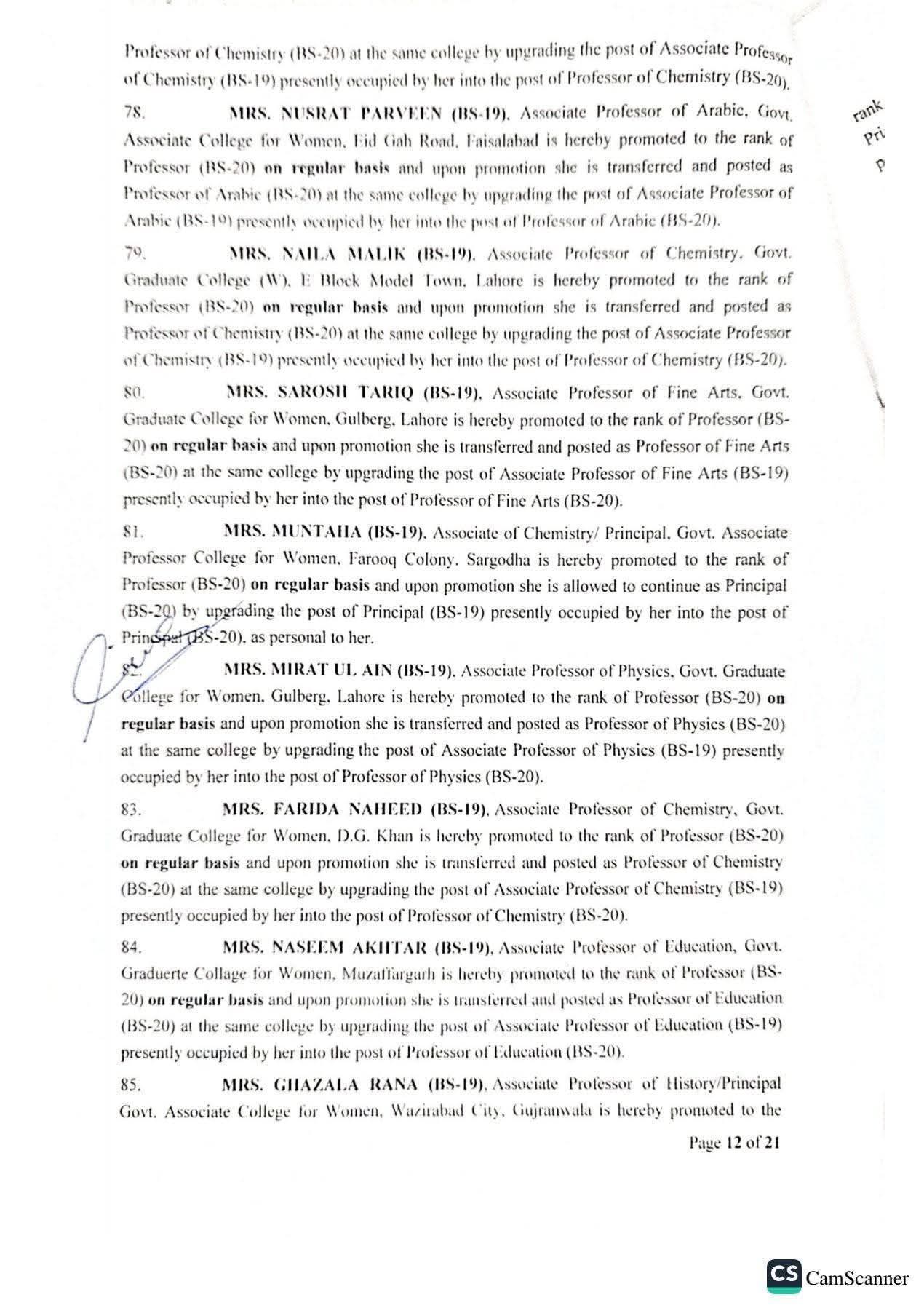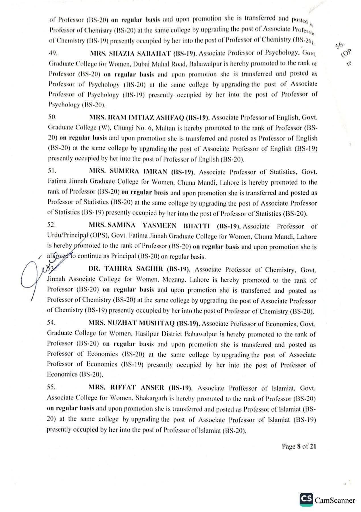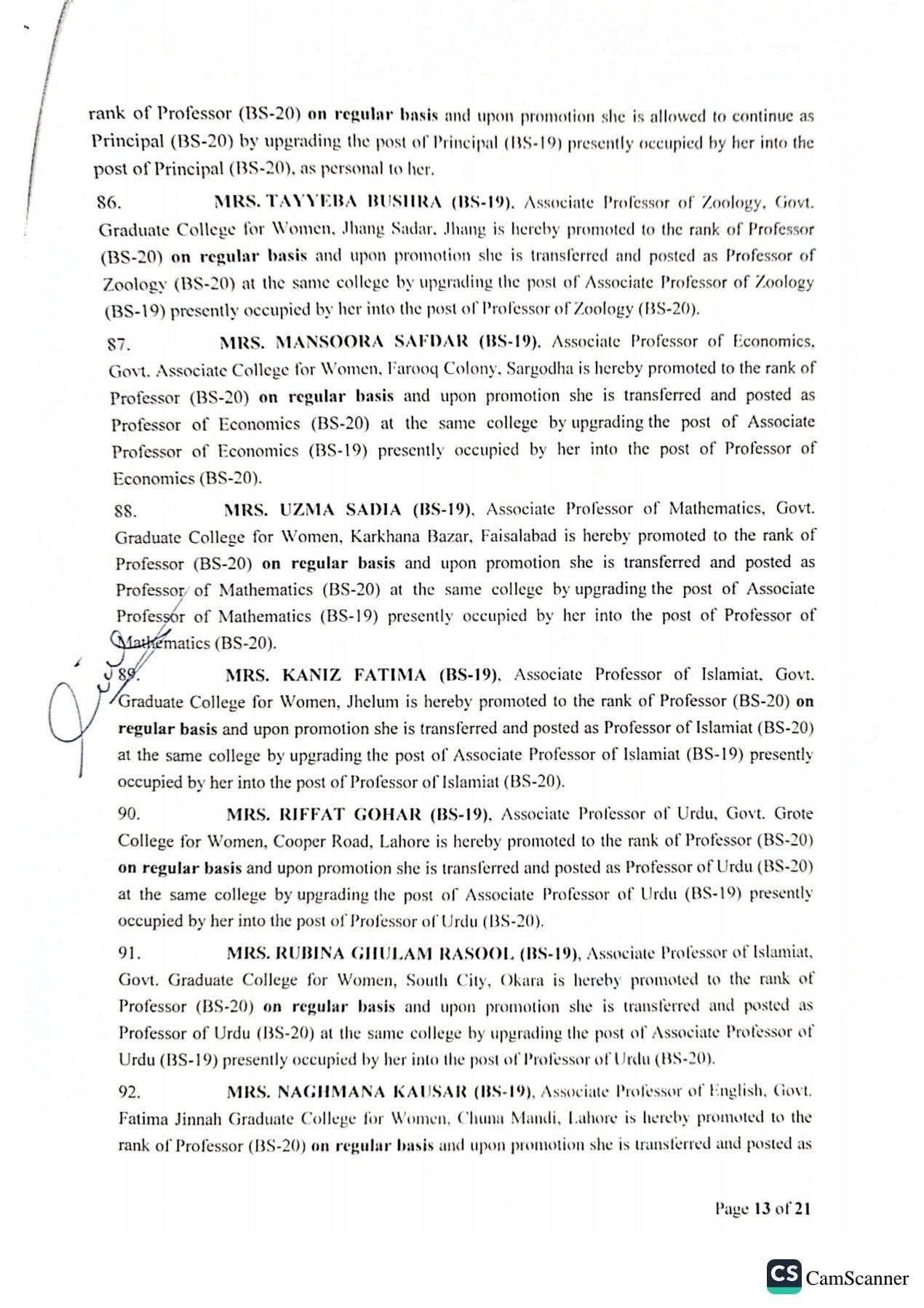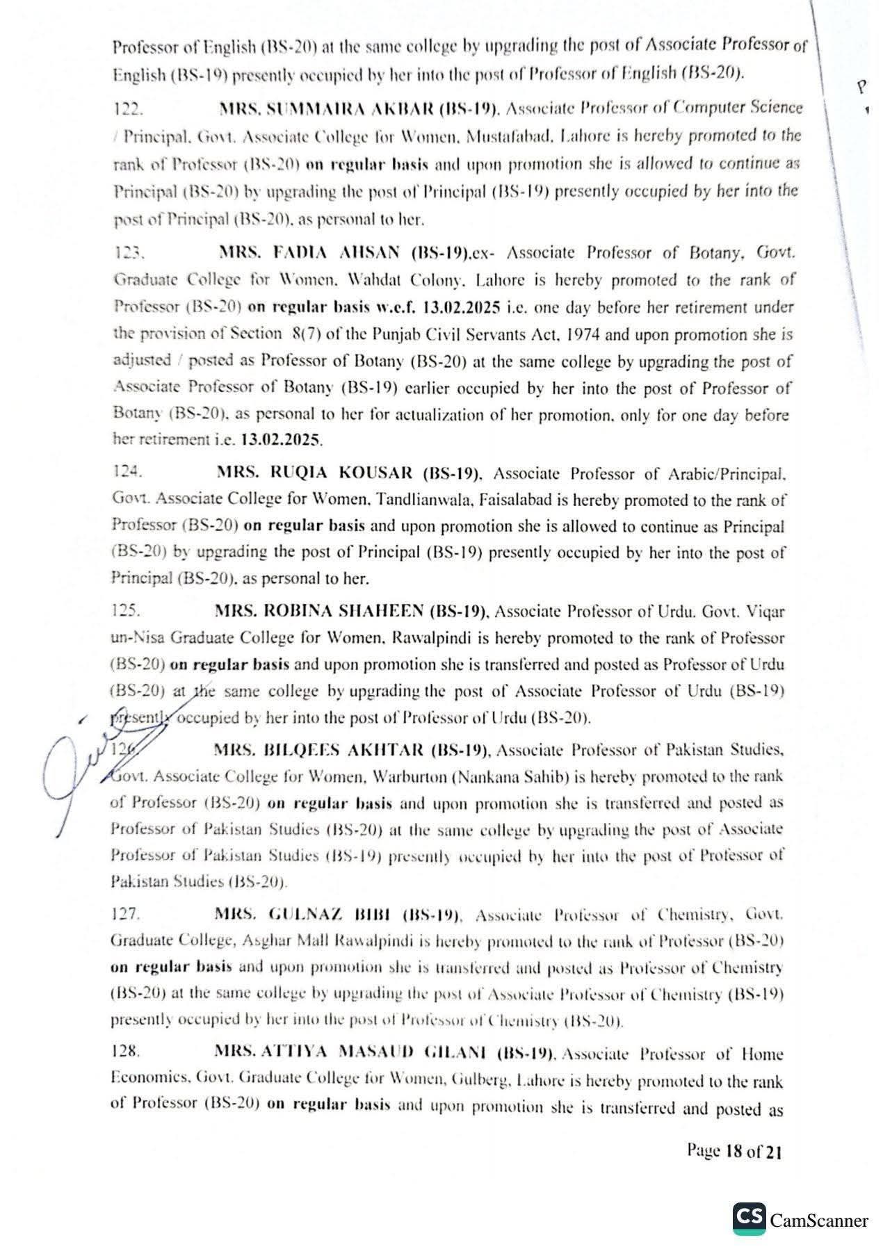 حکومت پنجاب نے 142 پروفیسرز کی گریڈ 20 میں ترقیوں اور تقرریوں کے احکامات جاری کر دیئے ہیں۔محکمہ سروسز پنجاب نے