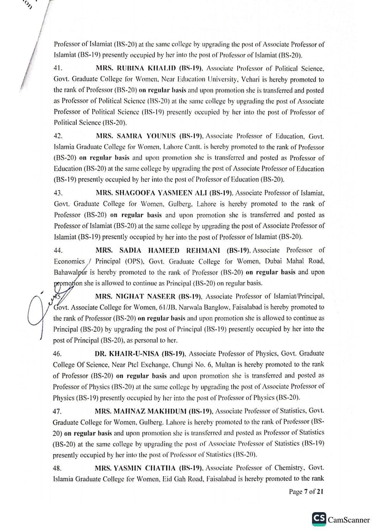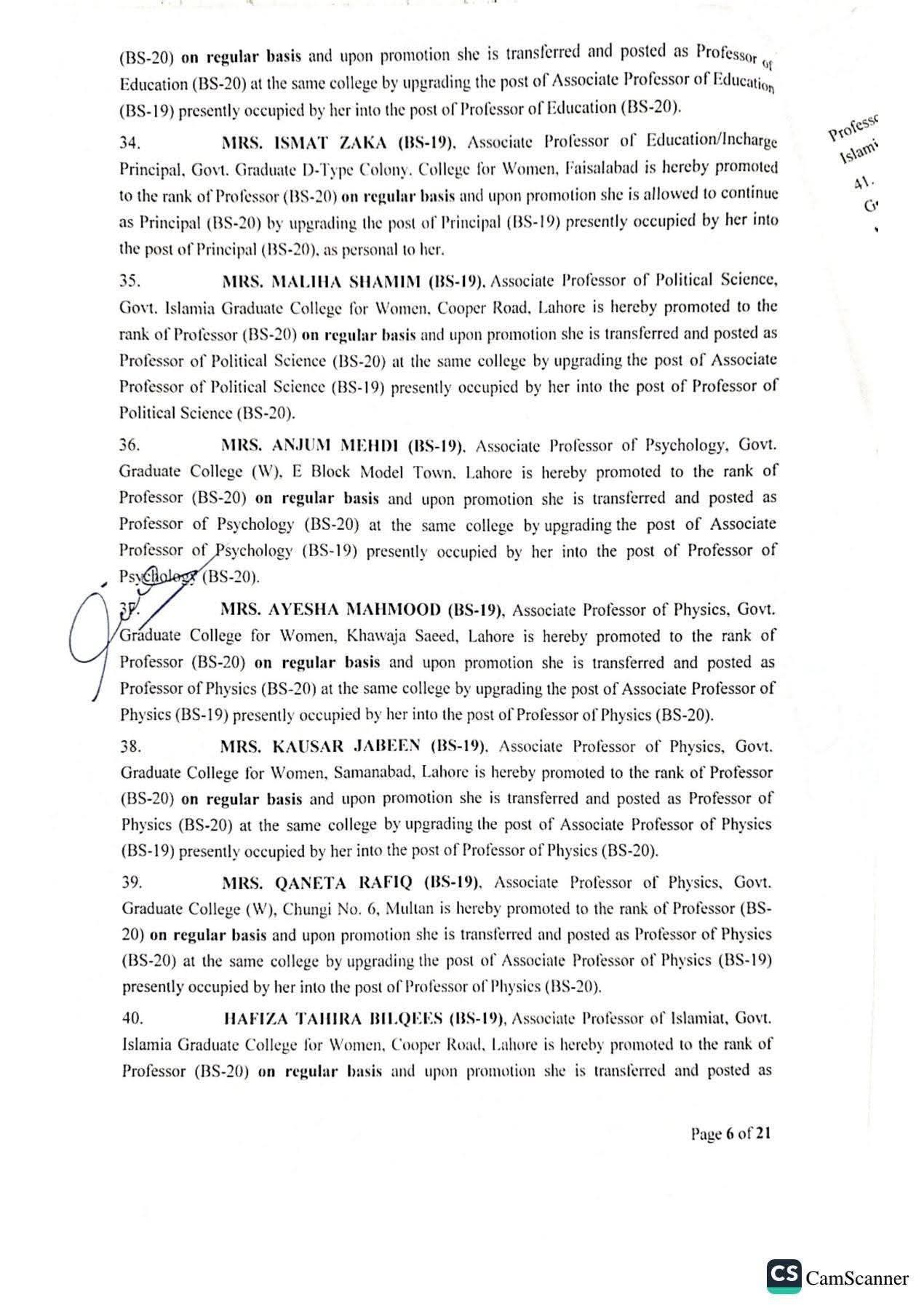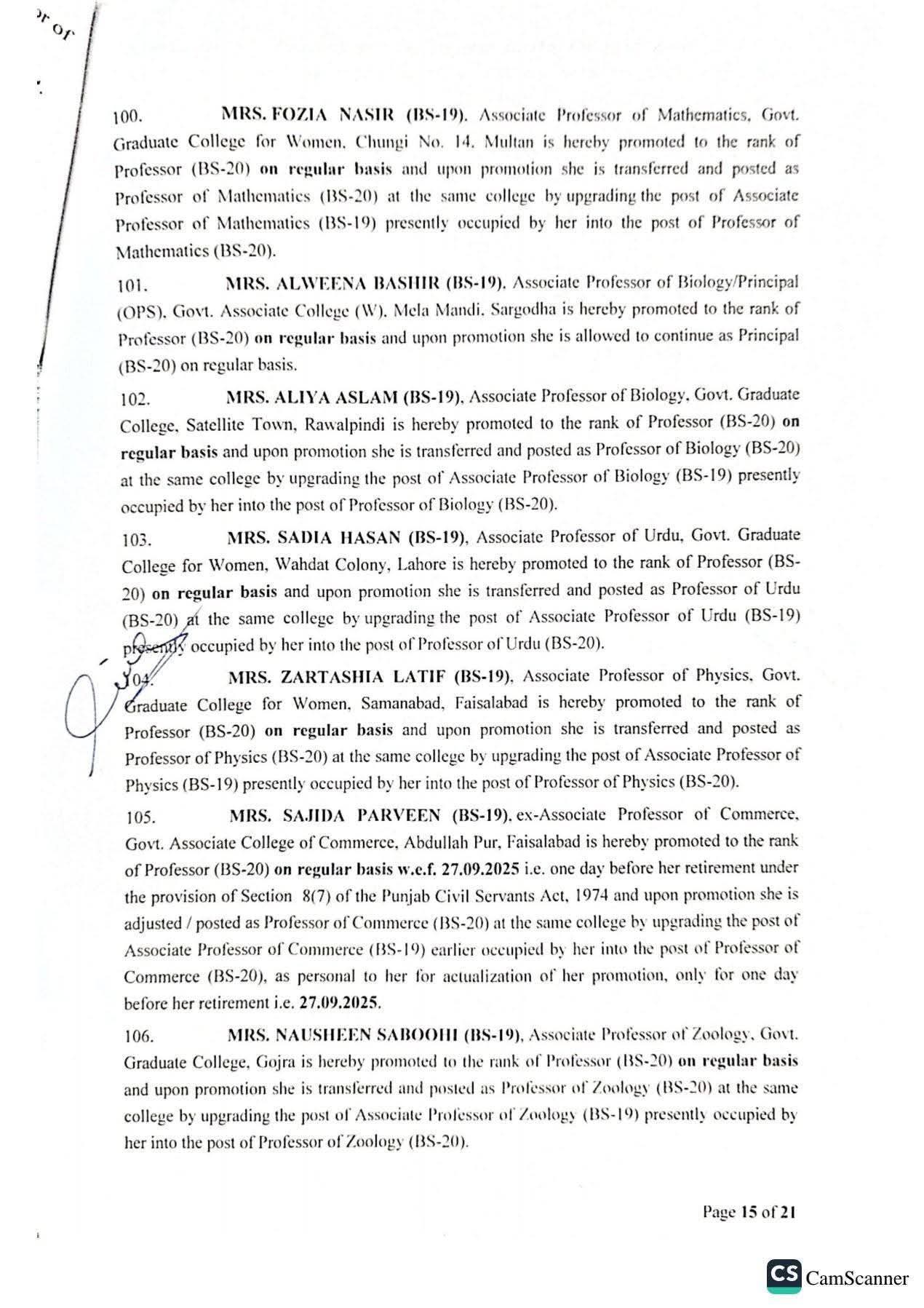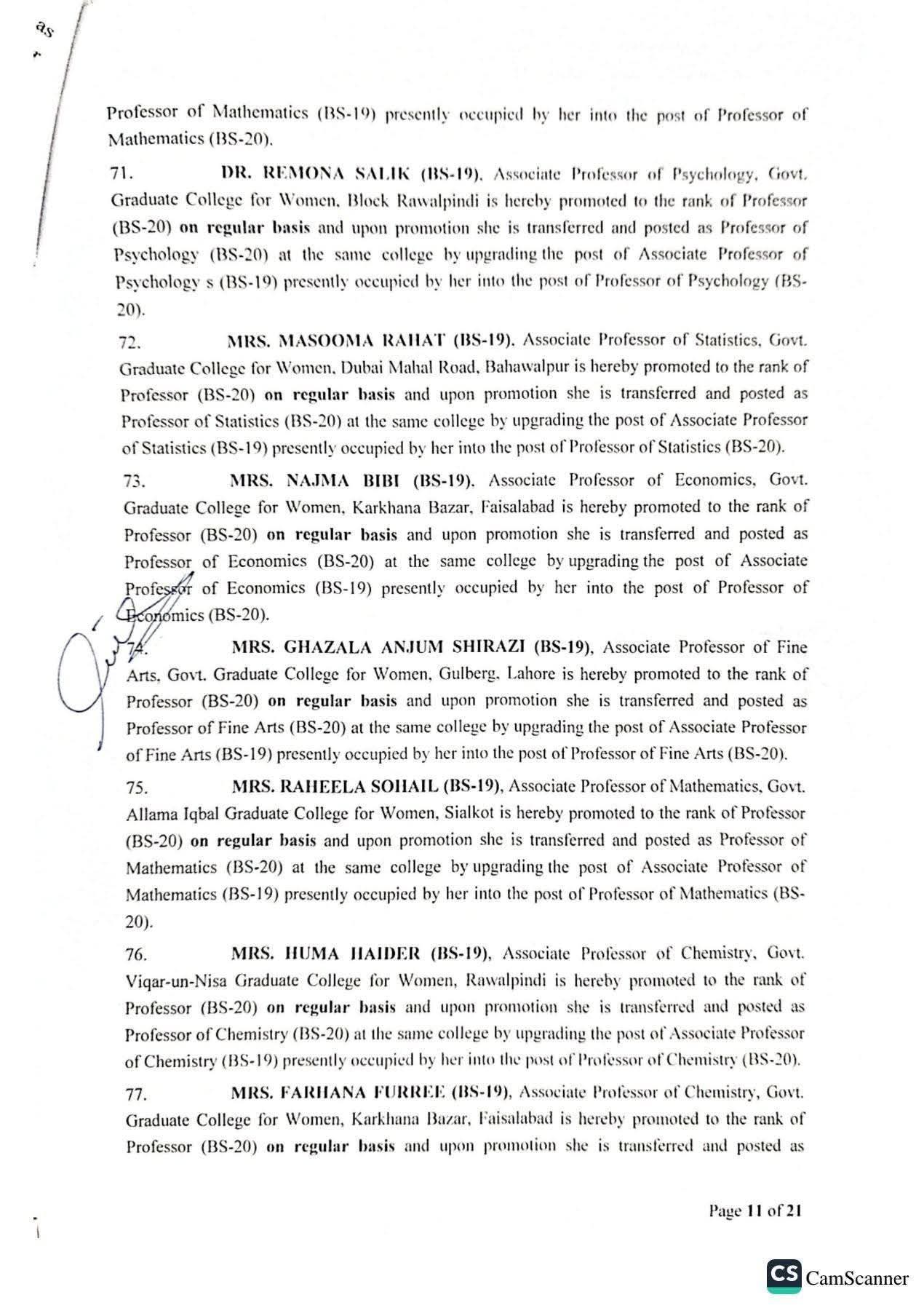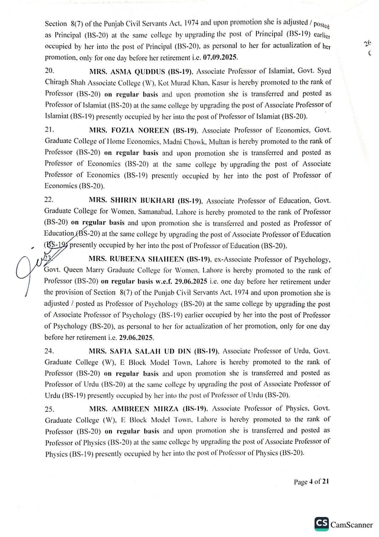 حکومت پنجاب نے 142 پروفیسرز کی گریڈ 20 میں ترقیوں اور تقرریوں کے احکامات جاری کر دیئے ہیں۔محکمہ سروسز پنجاب نے