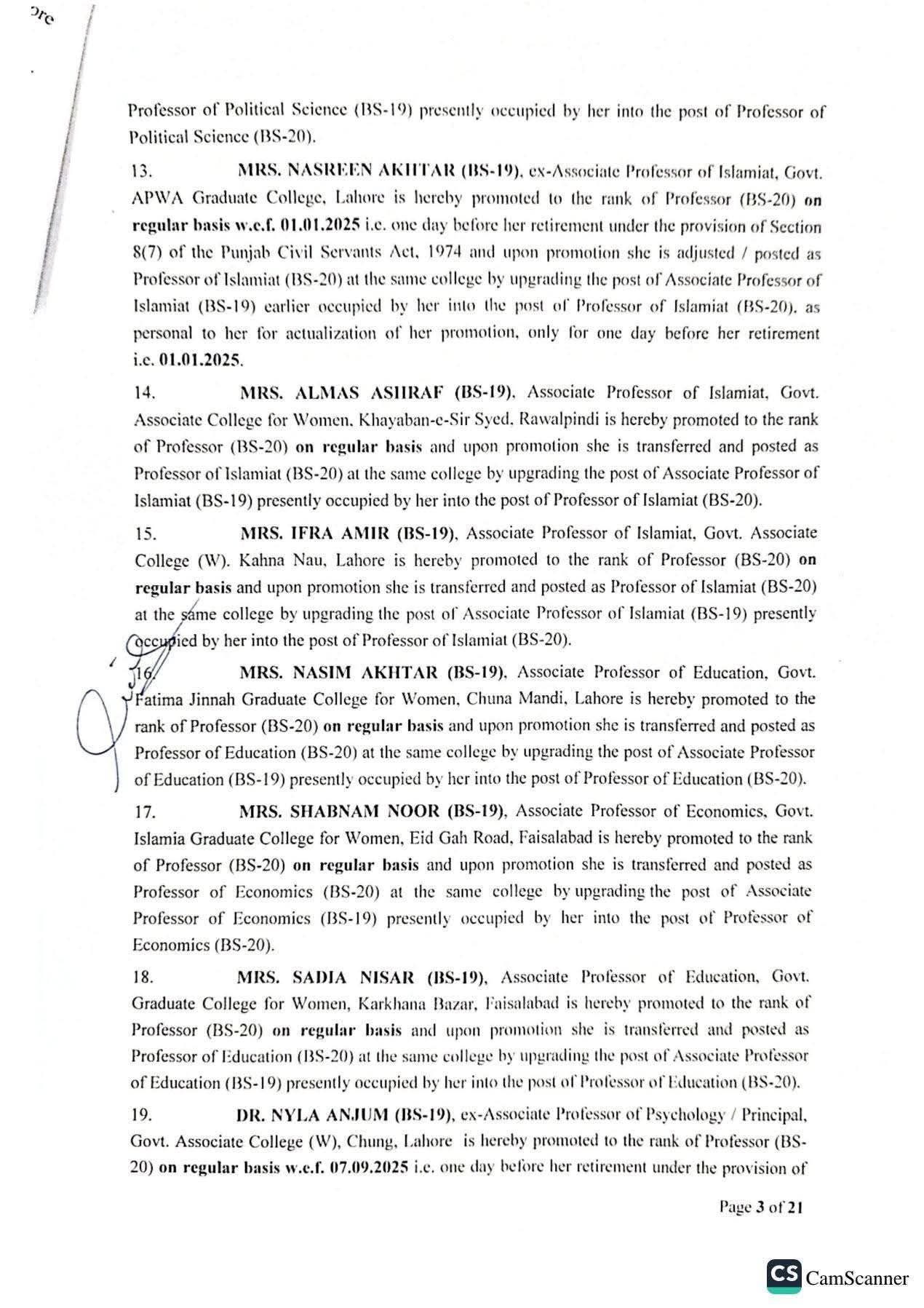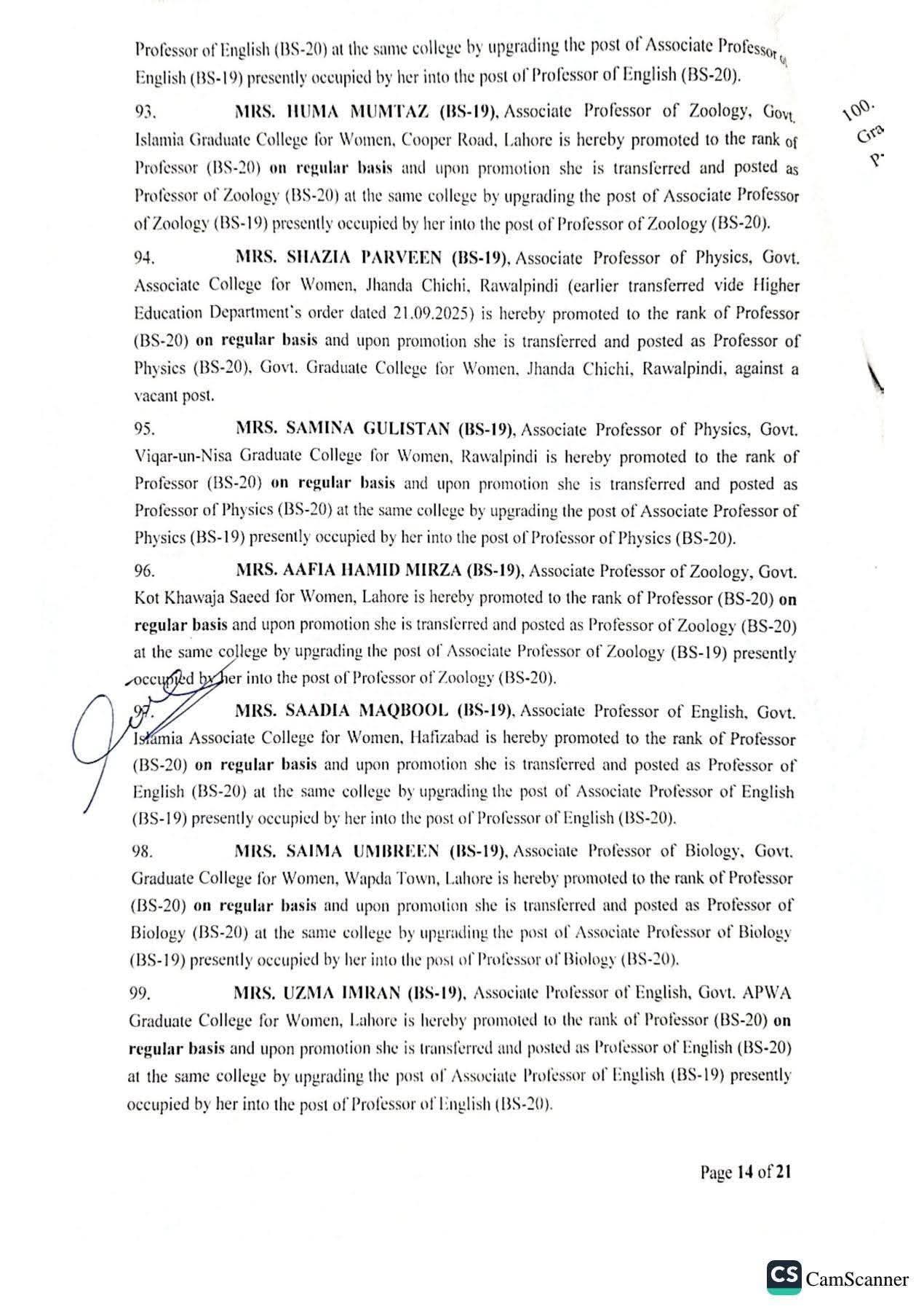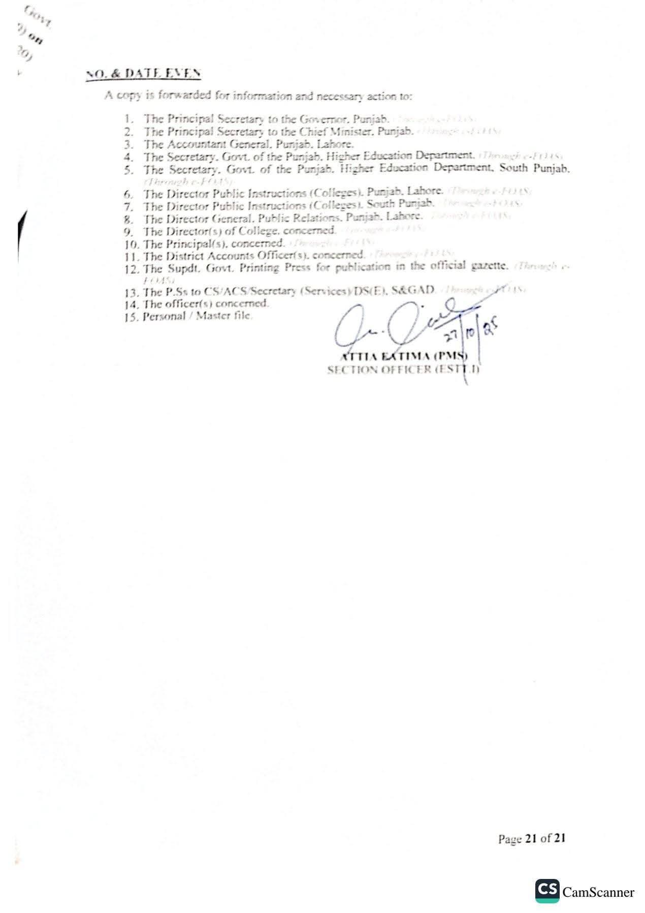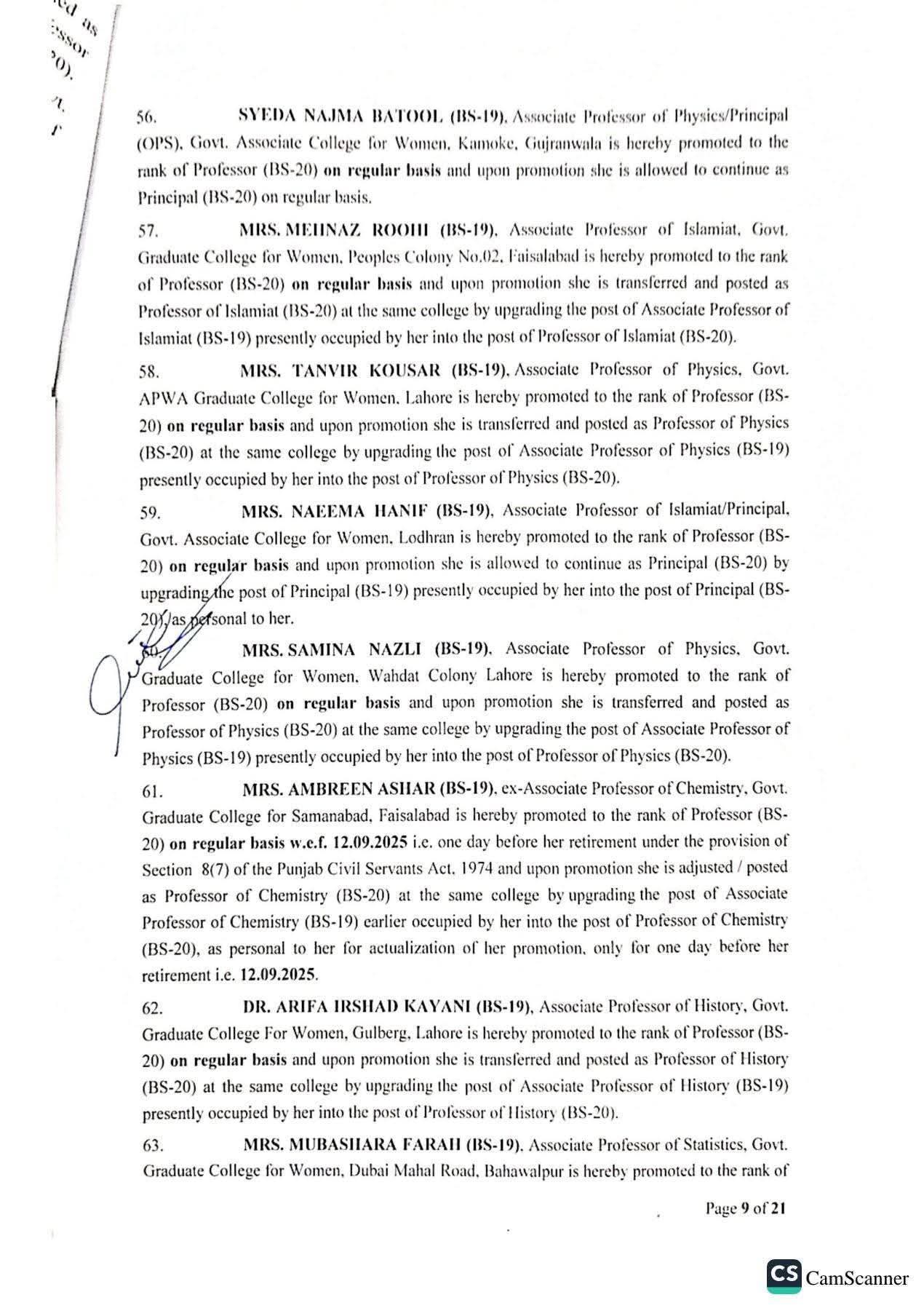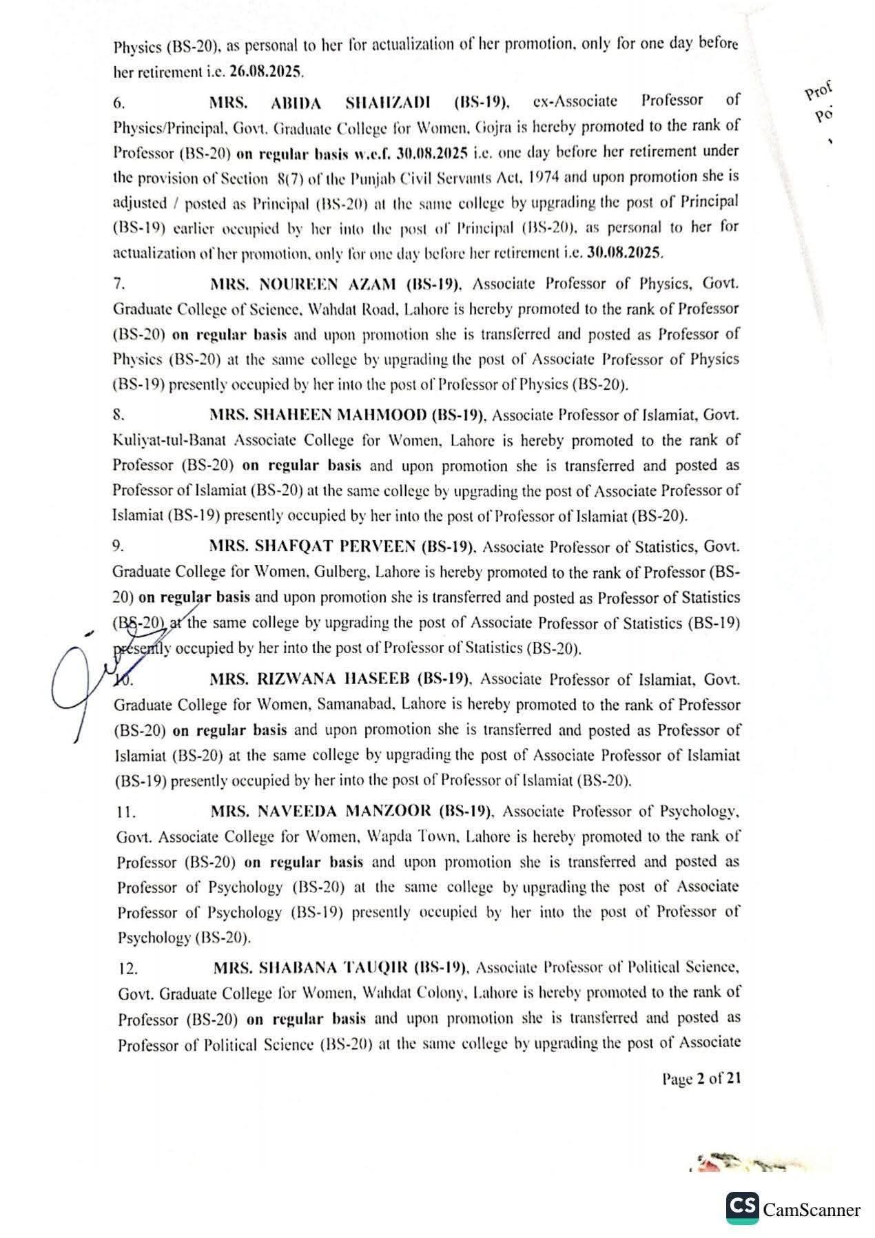 حکومت پنجاب نے 142 پروفیسرز کی گریڈ 20 میں ترقیوں اور تقرریوں کے احکامات جاری کر دیئے ہیں۔محکمہ سروسز پنجاب نے