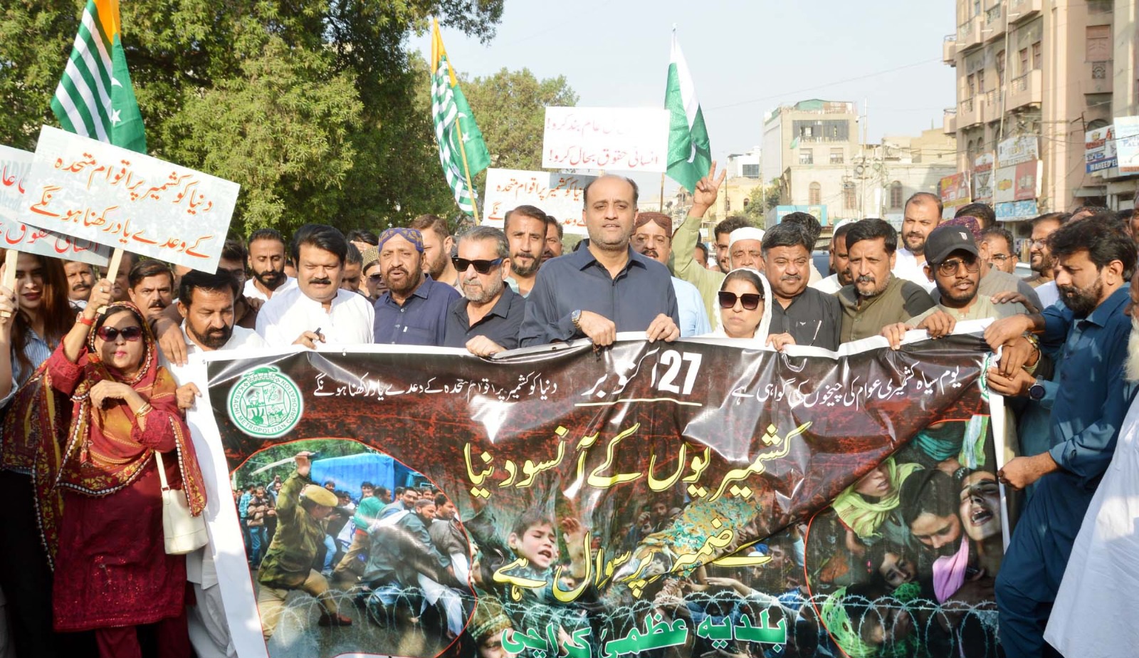 ڈپٹی میئر کراچی سلمان عبداللہ مراد نے کشمیری عوام سے اظہارِ یکجہتی کے لیے یومِ سیاہ کشمیر کے موقع پر بلدیہ عظمیٰ کراچی کی جانب سے کے ایم سی بلڈنگ، ایم اے جناح روڈ پر نکالی جانے والی ریلی کی قیادت کی، ریلی میں وزیر اعلیٰ سندھ کے مشیر نجمی عالم، سٹی کونسل میں پارلیمانی لیڈر کرم اللہ وقاصی، ڈپٹی پارلیمانی لیڈر دل محمد،جمن دروان، اسلم سموں، افتخار تنولی، خلیل ہوت، سٹی کونسل اراکین، چیئرمینز، بلدیہ عظمیٰ کراچی کے افسران و ملازمین سمیت عوام کی بڑی تعداد نے شرکت کی،