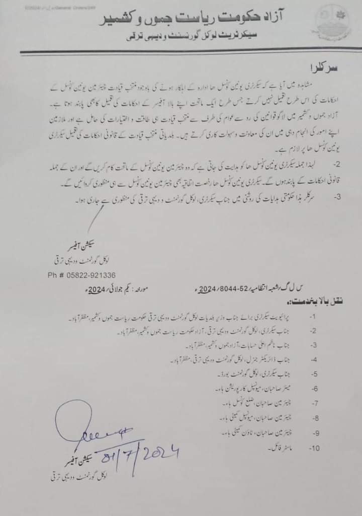 1۔ پہلا نوٹیفکیشن یونین سیکرٹری یونین کونسل کو چیئرمین یونین کونسل کے تابع کرانیکا تھا جو سیکریٹری لوکل گورنمنٹ نے جاری کردیا ہے۔ اب سیکرٹری یونین کونسل محکمہ لوکل گورنمنٹ کے دفاتر کی بجائے متعلقہ یونین کونسل کے دفتر میں بیٹھیں گے۔