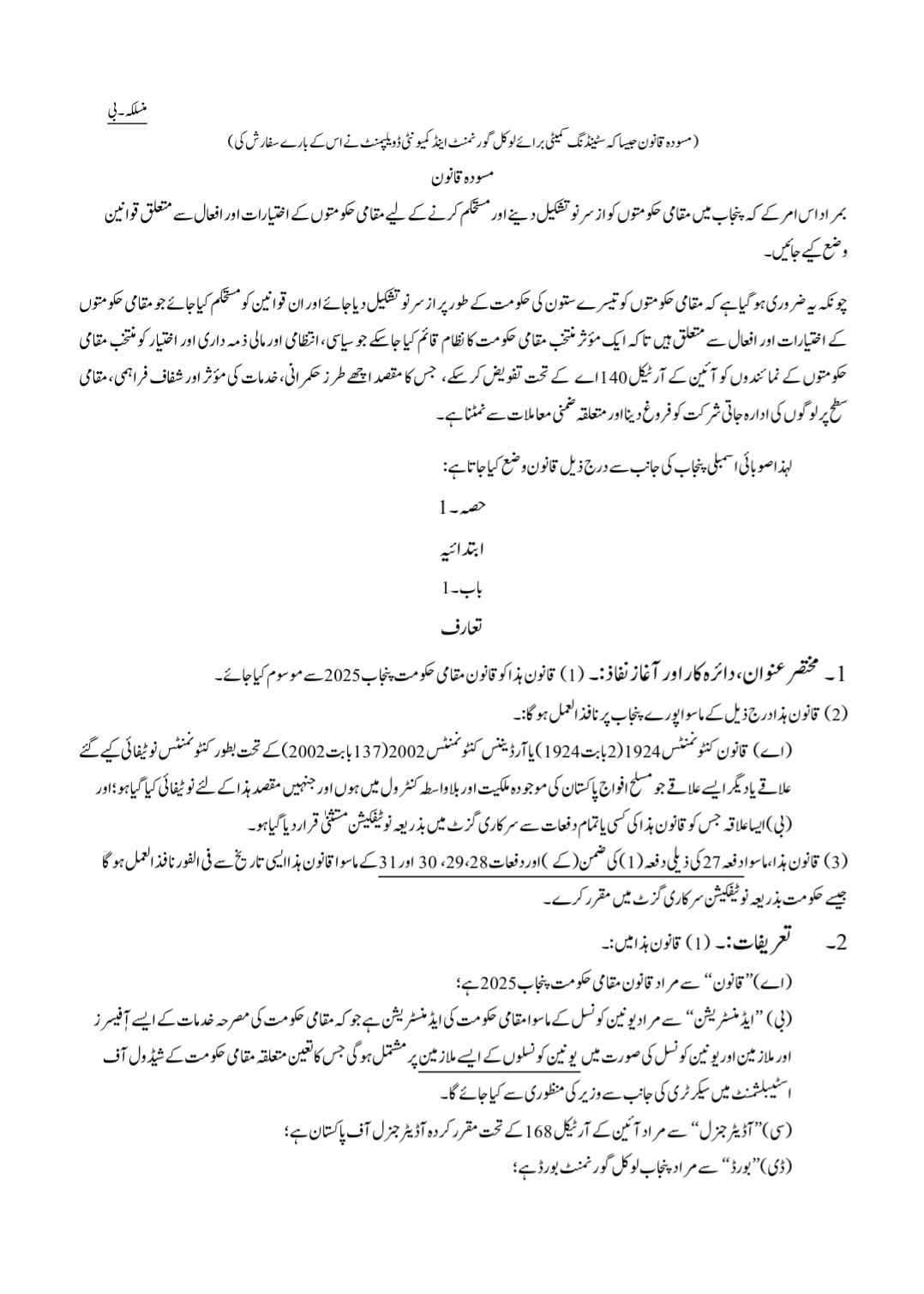 پنجاب لوکل گورنمنٹ ایکٹ 2025ء اردو ترجمہ عام لوگوں کی رہنمائی کے لئے عام فہم زبان میں جاری کیا جا رہا ہے۔