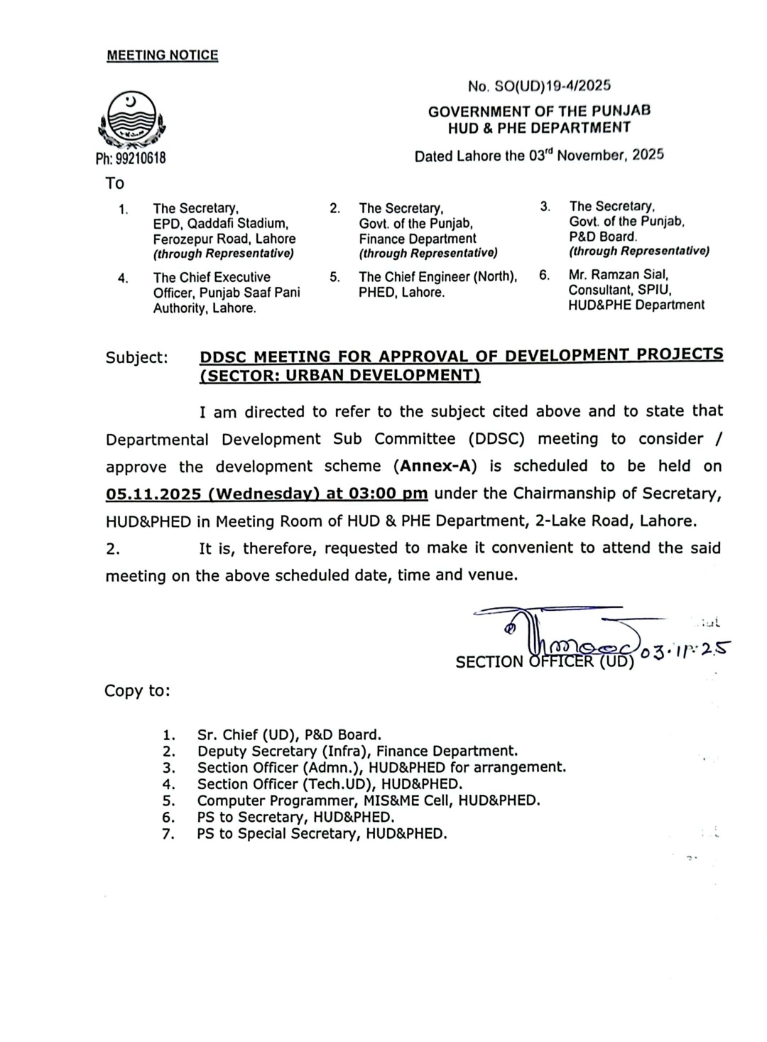 وزیر اعلیٰ پنجاب مریم نواز شریف کے ویژن کے تحت شہریوں کو صاف اور محفوظ پانی کی فراہمی کے لیے عملی اقدامات جاری ہیں۔ اسی سلسلے میں محکمہ ہاؤسنگ پنجاب میں ایک اہم اجلاس منعقد کیا جائے گا جس کی صدارت سیکرٹری ہاؤسنگ نورالامین مینگل کریں گے۔