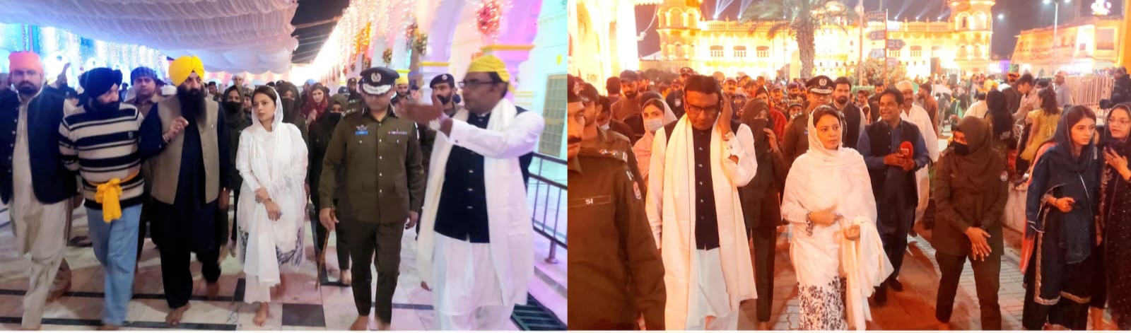 کمشنر لاہور ڈویژن مریم خان اور آر پی او شیخوپورہ رینج اطہر اسماعیل نے بابا گورونانک دیو جی کے 556 ویں جنم دن کی تقریبات کے موقع پر گردوارہ جنم استھان کا دورہ کیا۔ کمشنر لاہور نے پیر احمد شاہ، مانوالہ، شاہکوٹ، مانگٹانوالہ روڈز کا دورہ کیا اور صفائی ستھرائی، میونسپل، حفاظتی و دیگر انتظامات کا جائزہ لیا۔ کمشنر لاہور ڈویژن نے گوردوارہ جنم استھان میں ارداس میں شمولیت اختیار کی، سکھ رہنماٶں کی جانب سے کمشنر لاہور مریم خان اور آر پی او اطہر اسماعیل سمیت دیگر افسران کو سروپے بھی پہنائے گئے، سکھ رہنماؤں نے کہا کہ ضلعی انتظامیہ نے جنم دن کے موقع پر بہترین انتظامات کیے ہیں، دنیا بھر سے آئے سکھ یاتریوں نے بہترین انتظامات پر خوشی کا اظہار کیا۔کمشنرلاہورڈویژن مریم خان نے کہا کہ بابا گورونانک کے جنم دن کی تقریبات آج رات بھوگ کی رسم کے ساتھ اختتام پذیر ہو جائیں گی، بابا گورونانک کے جنم دن کی تقریبات میں 5 ہزار سے زاٸد افسران و اہلکاران یاتریوں کی خدمت پر مامور ہیں، انہوں نے کہا کہ گوردوارہ میں ہسپتال سمیت فسیلیٹیشن ڈیسک کام کررہے ہیں۔ کمشنر لاہور نے کہا کہ بھارت سے سینکڑوں سکھ یاتری بابا گورونانک کے جنم دن کی تقریبات میں شریک ہیں، سکھ یاتریوں کی رہائش اور سکیورٹی کے فول پروف انتظامات ہیں، سی سی ٹی وی کیمرے نصب اور 3 کنٹرول رومز قائم ہیں جبکہ صفائی و کھانے کے بہترین انتظامات ہیں۔کمشنر لاہور نے مزید کہا کہ وزیر اعلٰی پنجاب کی ہدایات پر جنم دن کی تقریبات کے بہترین انتظامات کو یقینی بنایا گیا ہے، ہزاروں سکھ یاتری جنم دن کی تقریبات میں شرکت کے لیے ننکانہ صاحب میں موجود ہیں، بابا گورونانک دیو جی کا ہر مذہب اور ہر مسالک عزت کرتا ہے۔