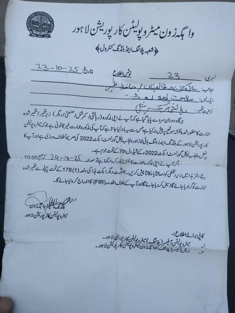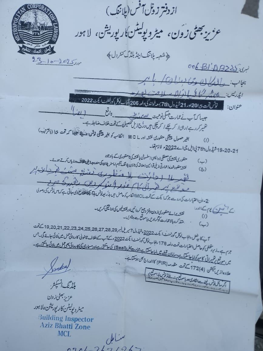 ۔بڑی تعداد میں ایسے علاقے ہیں جہاں دونوں زون متحرک ہیں۔کنال بینک سلامت پورہ روڈ مختارہ رفیق ہاسپٹل کے پاس غیر قانونی کمرشل بیسمنٹ نوٹس دے کر تیار کروائی جا رہی ہے زون کے عملے کی ملی بھگت کے ساتھ کمرشل بیسمنٹ کا کام تیزی سے مکمل کیا جا رہا ہے۔ بابر نامی مالک نے ٹاؤن کے عملے کے ساتھ مل کر کام جاری رکھے ہوئے ہے۔یہ کیس بھی اسی نوعیت کا ہے جہاں ایک طرف تو واہگہ زون اور عزیز بھٹی زون نے غیر قانونی بیسمنٹ کا نوٹسز دیا۔یہ نوٹسز جو متنازعہ ہیں مالک کو جاری کر کے تیزی سے تعمیر مکمل کروائی جا رہی ہے۔مذکورہ علاقہ میں کچھ عرصہ میں درجنوں غیر قانونی تعمیرات مکمل کروا کے جہاں دونوں زونز کے افسران اور عملہ مستفید ہوئے وہاں ایم سی ایل کو نقشہ فیس کی مد میں لاکھوں روپے کا نقصان ہوا ہے۔اہل علاقہ نے ایڈمنسٹریٹر و ڈپٹی کمشنر لاہور سید موسٰی رضا چیف آفیسر شاہد عباس کاٹھیا ،ڈپٹی چیف آفیسر ہیڈ کوارٹر محمد جمیل اور ایم او پلاننگ محمد سلیم سے اس کیس کی انکوائری اور واہگہ ،عزیز بھٹی زون کا غیر قانونی تعمیرات کے حوالے سے گٹھ جوڑ ختم کرنے اور ملوث افسران و عملے کے خلاف کارروائی کا مطالبہ کیا ہے۔