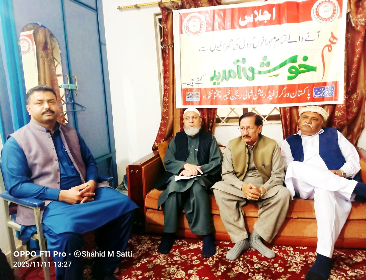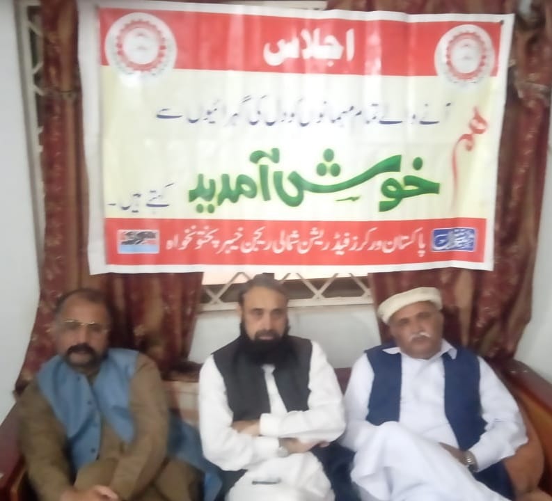 صوابی۔ پاکستان ورکرز فیڈریشن رجسٹرڈ پاکستان کی نیشنل انڈسٹریل ریلیشن کمیشن پاکستان اسلام آباد کی جانب سے PWF پاکستان کے نو منتخب عہدیداران کی باقاعدہ منظوری کے بعد پاکستان ورکرز فیڈریشن خیبرپختونخوا شمالی ریجن کے منتخب عہدیداران کا پہلا اجلاس فیڈریشن کے صوابی دفتر میں زیر صدارت شوکت علی انجم مرکزی صدر فیڈریشن منعقد ہوا۔ اجلاس میں فیڈریشن کے مرکزی سرپرست اعلیٰ و قائد مزدور چوھدری محمد یاسین ، مرکزی جنرل سیکریٹری اسد محمود اور مرکزی فنانس سیکرٹری سیدعطاء اللہ شاہ بخاری نے خصوصی طور ہر شرکت کی اجلاس میں ریجنل صدر افتخار احمد۔ ریجنل جزل سیکرٹری محبوب اللہ۔ شوکت علی کیانی۔ محمد سلمان ہوتی۔ فضل حکیم۔ شاد خان۔آصف الرحمن۔ فیصل تنولی۔ فضل حمید۔ حافظ اختر زیب۔ مراد علی خان۔ اخترمنیر۔ فیض اللہ خان ہوتی۔ محمد فاضل۔ روح الامین۔ حاجی شیرفرزند خان۔ بلال حسین۔ نورمحمد۔ عاشق علی اور دیگر نے یونینز لیڈران نے شرکت کی اس دوران نو منتخب ریجنل صوبائی عہدیداران میں ان کے ناموں کی منظوری کے نوٹیفیکیشن کاپی تقسیم کی گئیں ہیں۔ اس موقع پر پاکستان ورکرز فیڈریشن کے مرکزی عہدیداران نے اپنے خطاب میں فیڈریشن کو ضلعی سطح پر توسیع دینے پر زور دیا اور اس مہم کےلئے مردان۔ ہزارہ۔ مالاکنڈ اور پشاور ڈویژن کے سطح پر آرگنائز کمیٹیوں کا اعلان کیا گیا