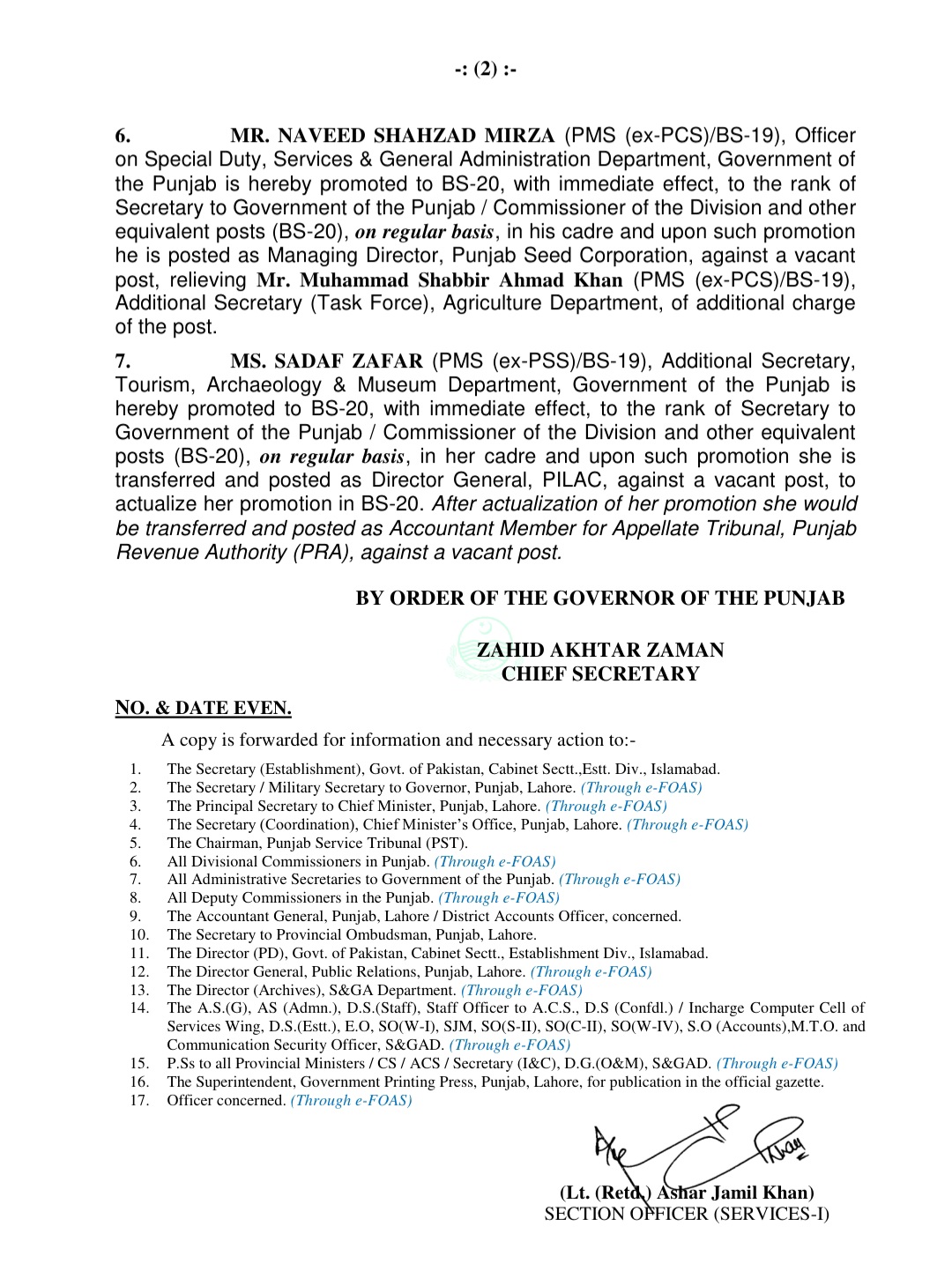 چیف سیکرٹری پنجاب زاہد اختر زمان کی جانب سے نوٹیفکیشن جاری کر دیا گیا ہے۔