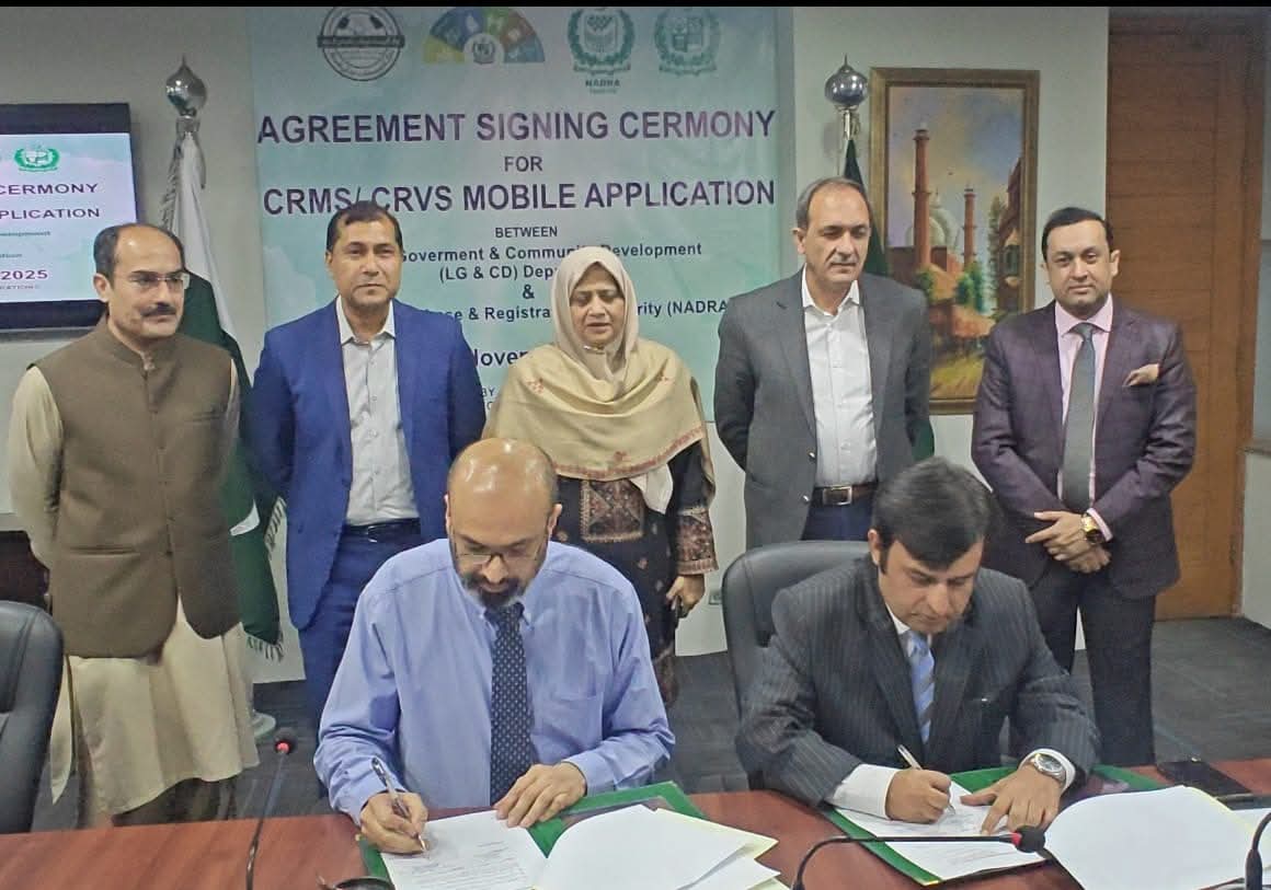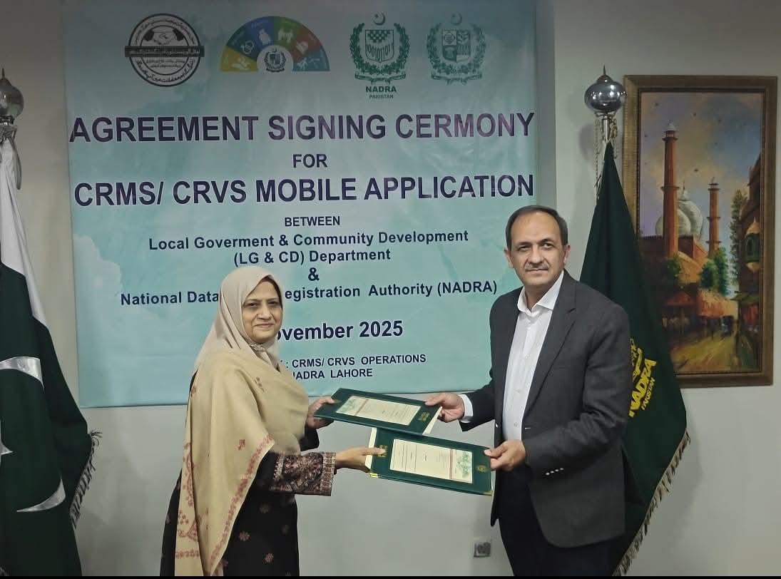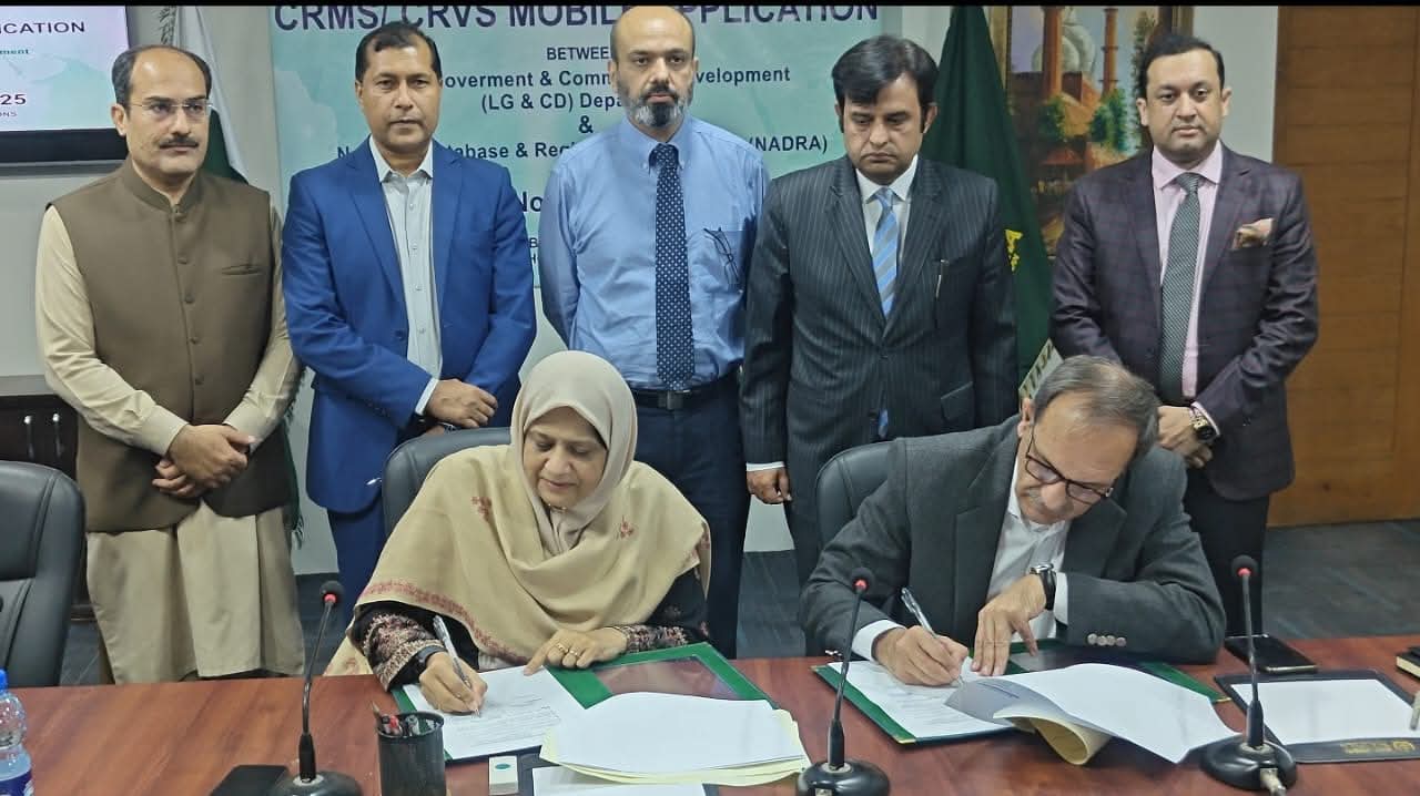 سیکرٹری لوکل گورنمنٹ پنجاب میاں شکیل احمد اور ڈائریکٹر جنرل نادرا لاہور ریجن فضہ شاہد نے دستخط کئے۔