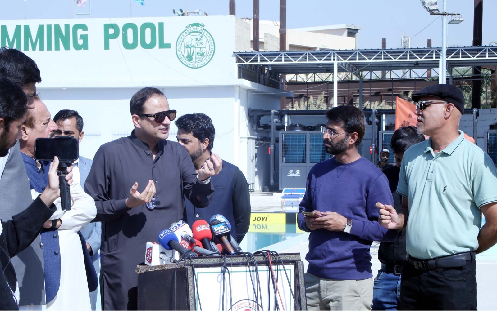 میئر کراچی بیرسٹر مرتضیٰ وہاب نے کے ایم سی اسپورٹس کمپلیکس کشمیر روڈ میں ڈیڑھ سو ملین روپے کی لاگت سے تعمیر کئے گئے جدید سوئمنگ پول کا افتتاح کردیا، اس موقع پر منعقدہ پریس کانفرنس سے خطاب کرتے ہوئے میئر کراچی بیرسٹر مرتضیٰ وہاب نے کہا کہ گزشتہ روز ہونے والے افسوس ناک واقعہ کی وجہ سے دل بے حد غمگین اور افسردہ ہے، انہوں نے متاثرہ خاندان سے دلی ہمدردی اور افسوس کا اظہار کرتے ہوئے کہا کہ واقعہ کے ذمہ داران کے خلاف بھرپور کارروائی عمل میں لائی جائے گی