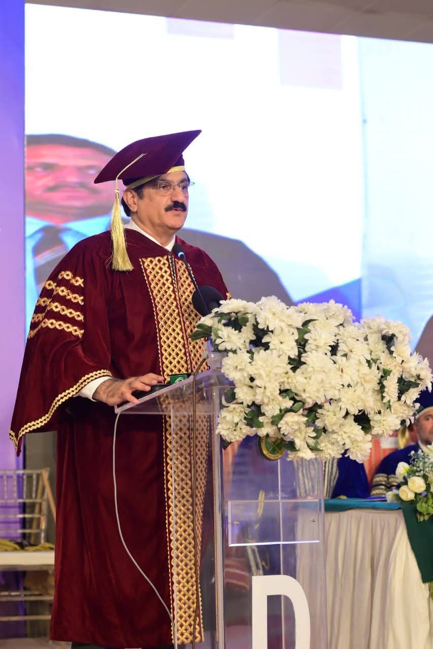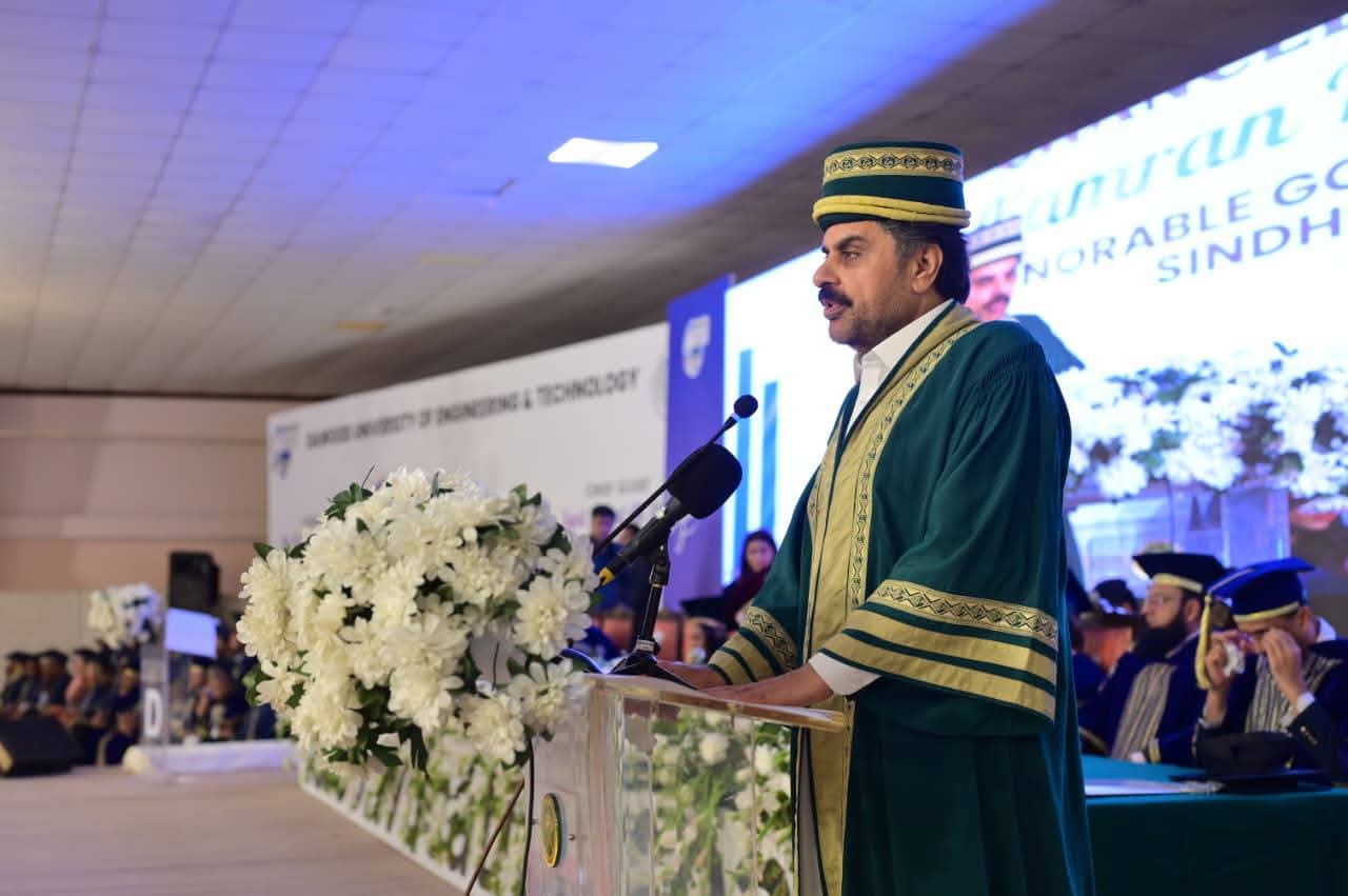 وز سندھ کے وزیرِ اعلیٰ سید مراد علی شاہ نے داؤد یونیورسٹی آف انجینئرنگ اینڈ ٹیکنالوجی (ڈی یو ای ٹی) کے 13ویں کانووکیشن میں خطاب کرتے ہوئے کہا کہ طلبہ ایک تیزی سے بدلتی ہوئی دنیا میں قدم رکھ رہے ہیں جس کی تشکیل صاف توانائی کی منتقلی، اسمارٹ ٹیکنالوجیز اور نئی انجینئرنگ ترقیات کر رہی ہیں اس لیے وہ جدت، دیانت اور خدمت کو اپنا شعار بنائیں۔انہوں نے اپنا خطاب ڈی یو ای ٹی کے 13ویں کانووکیشن میں کیا جو پی اے ایف آڈیٹوریم میں منعقد ہوا، جہاں سنہ 2025 کی کلاس کے 413 گریجویٹس کو ڈگریاں تفویض کی گئیں۔مراد علی شاہ نے داؤد یونیورسٹی آف انجینئرنگ اینڈ ٹیکنالوجی کی نمایاں تعلیمی اور انفراسٹرکچرل ترقی کی تعریف کرتے ہوئے اسے "ایک قابل فخر انجینئرنگ ادارے کی نشاۃ ثانیہ” اور شفاف، جدید یونیورسٹی گورننس کا ماڈل قرار دیا۔