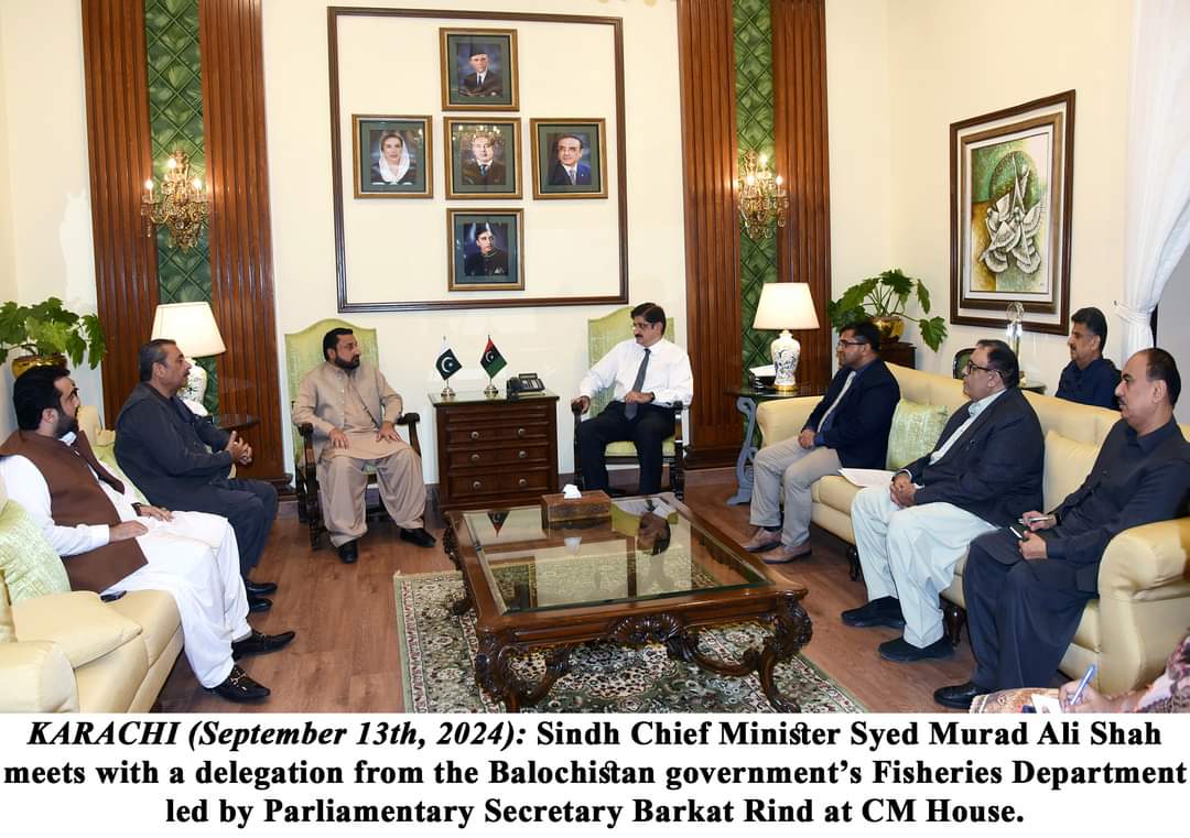 وزیر اعلیٰ سندھ سید مراد علی شاہ نے بلوچستان حکومت کے محکمہ ماہی گیری کے وفد سے اس کے پارلیمانی سیکریٹری برکت رند کی قیادت میں ملاقات کی جس کا مقصد ماہی گیری کے شعبے کو فروغ دینا ہے تاکہ مقامی ماہی گیروں کا معیار زندگی بہتر بنایا جا سکے۔وفد کے ارکان میں سیکریٹری فشریز حکومت بلوچستان جاوید شہوانی اور ڈائریکٹر فشریز ٹیکنیکل ڈاکٹر علاؤالدین شامل ہیں۔ وزیراعلیٰ سندھ کی معاونت انکے مشیر لائیو اسٹاک اینڈ فشریز نجمی عالم، سیکریٹری لائیو سٹاک اینڈ فشریز کاظم جتوئی اور سیکریٹری ٹو سی ایم رحیم شیخ نے کی۔دونوں صوبوں کے ماہی گیری کے محکموں کے حکام نے اس بات پر روشنی ڈالی کہ مچھلی پکڑنے کے لیے گجو-بلو فشنگ نیٹ کا استعمال مچھلی کے انڈوں کو تباہ کر رہا ہے، جس سے مچھلی کا ذخیرہ ختم ہو رہا ہے اور ماہی گیر بے روزگار ہو رہے ہیں۔ انہوں نے ماہی گیری کے ان جالوں کی درآمد کو روکنے کے لیے مناسب اقدامات کی ضرورت پر زور دیا۔ وزیراعلیٰ سندھ نے کہا کہ حساس گجو-بلو نیٹ کی درآمد پر پابندی کے لیے وفاقی حکومت سے بات کریں گے۔ اجلاس میں وزیراعلیٰ سندھ نے محکمہ ماہی گیری کو ہدایت کی کہ ماہی گیروں کے لیے فلاحی اسکیمیں شروع کی جائیں اور بلوچستان حکومت کے ساتھ مل کر وہاں بھی اسی طرح کی اسکیمیں شروع کی جائیں۔ وزیراعلیٰ سندھ نے فیصلہ کیا کہ دونوں صوبوں کے ماہی گیری محکمے آپس میں رابطوں کو بڑھائیں تاکہ سمندری خوراک کی برآمد کو بڑھایا جاسکے۔