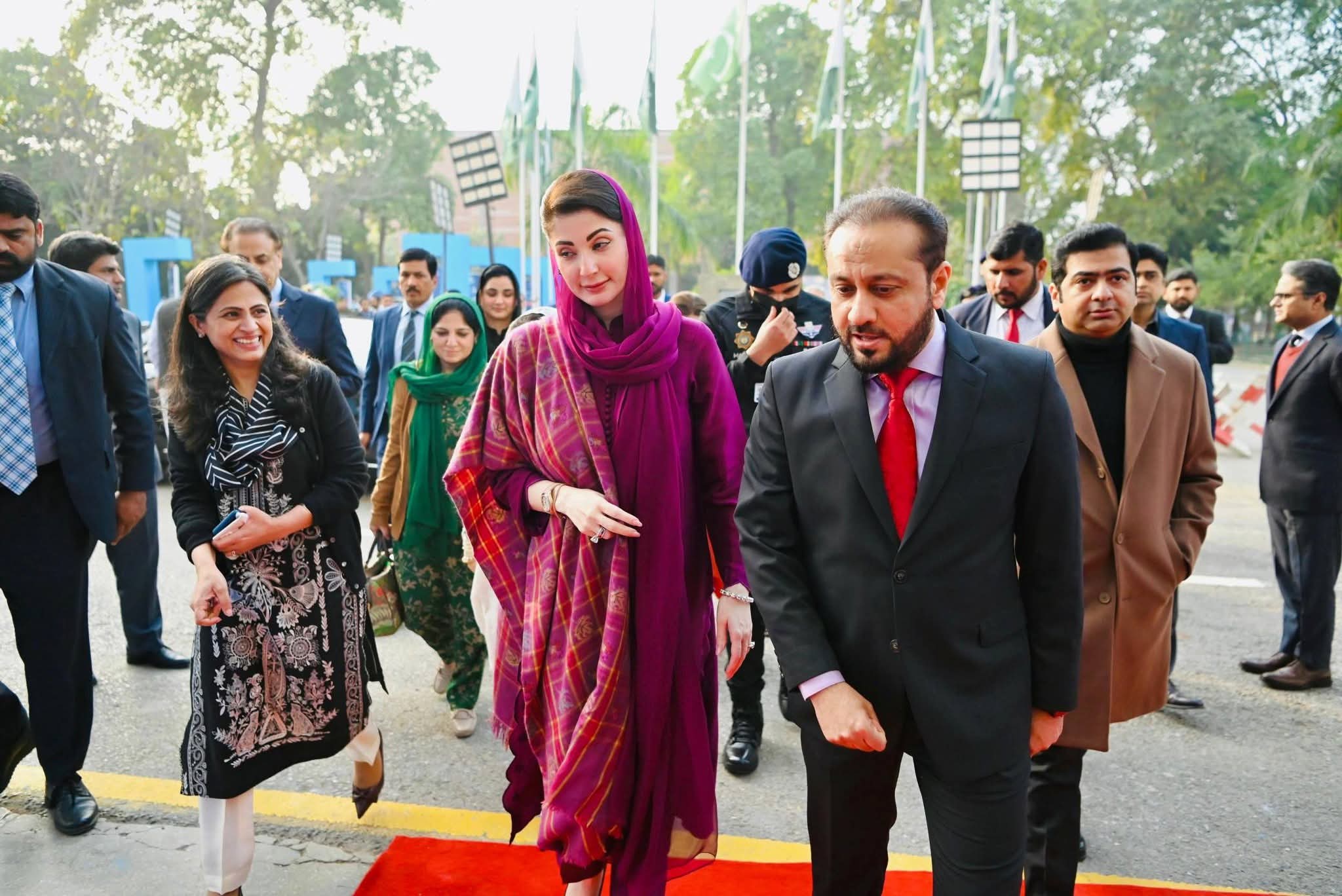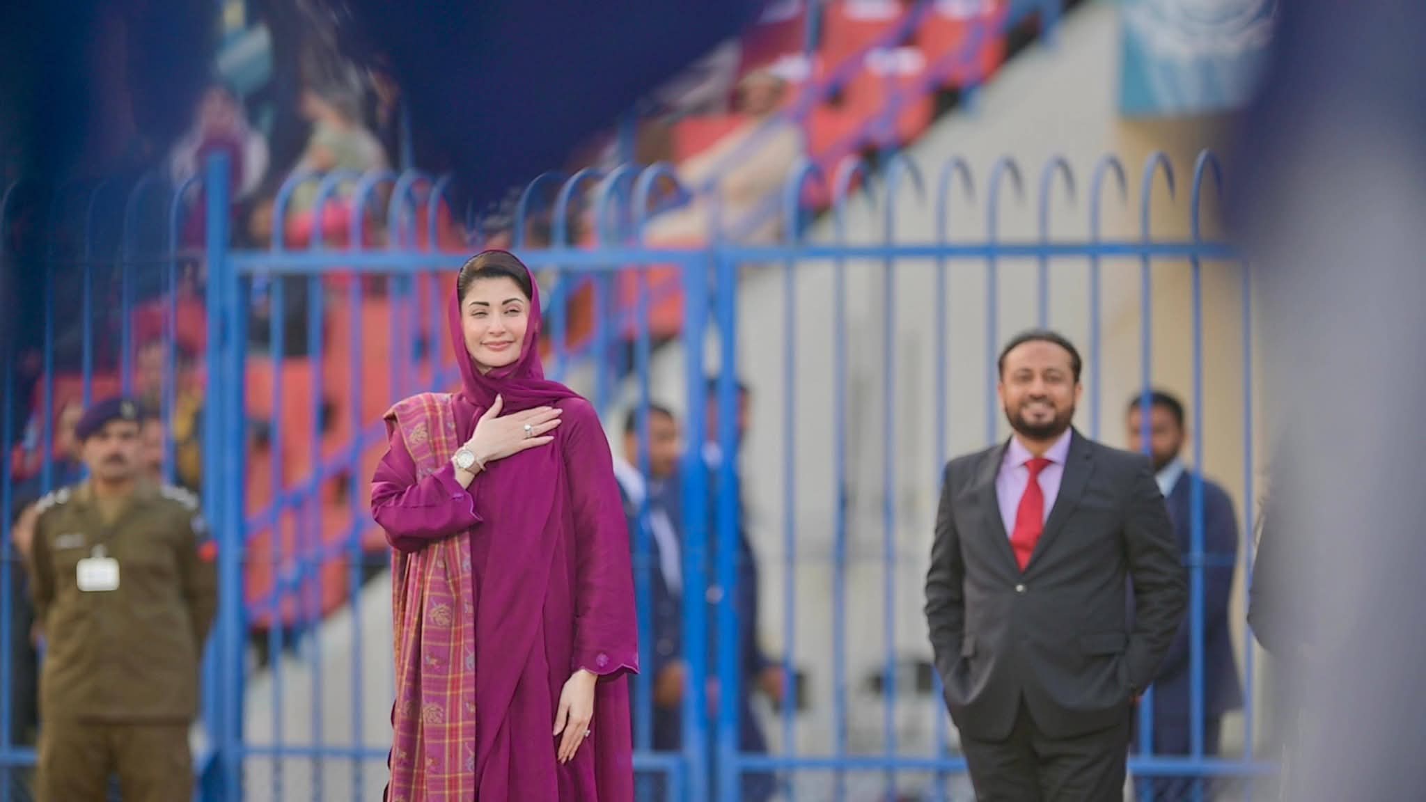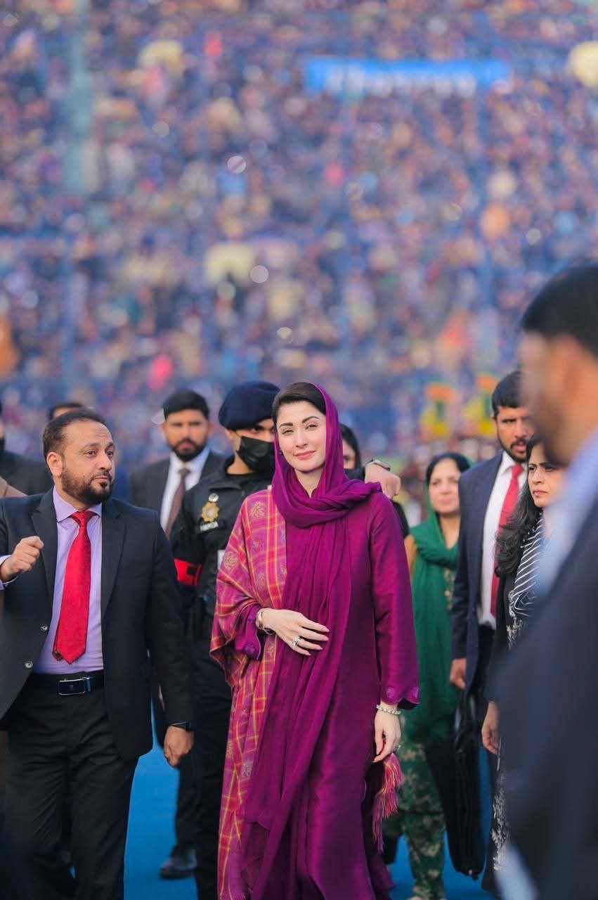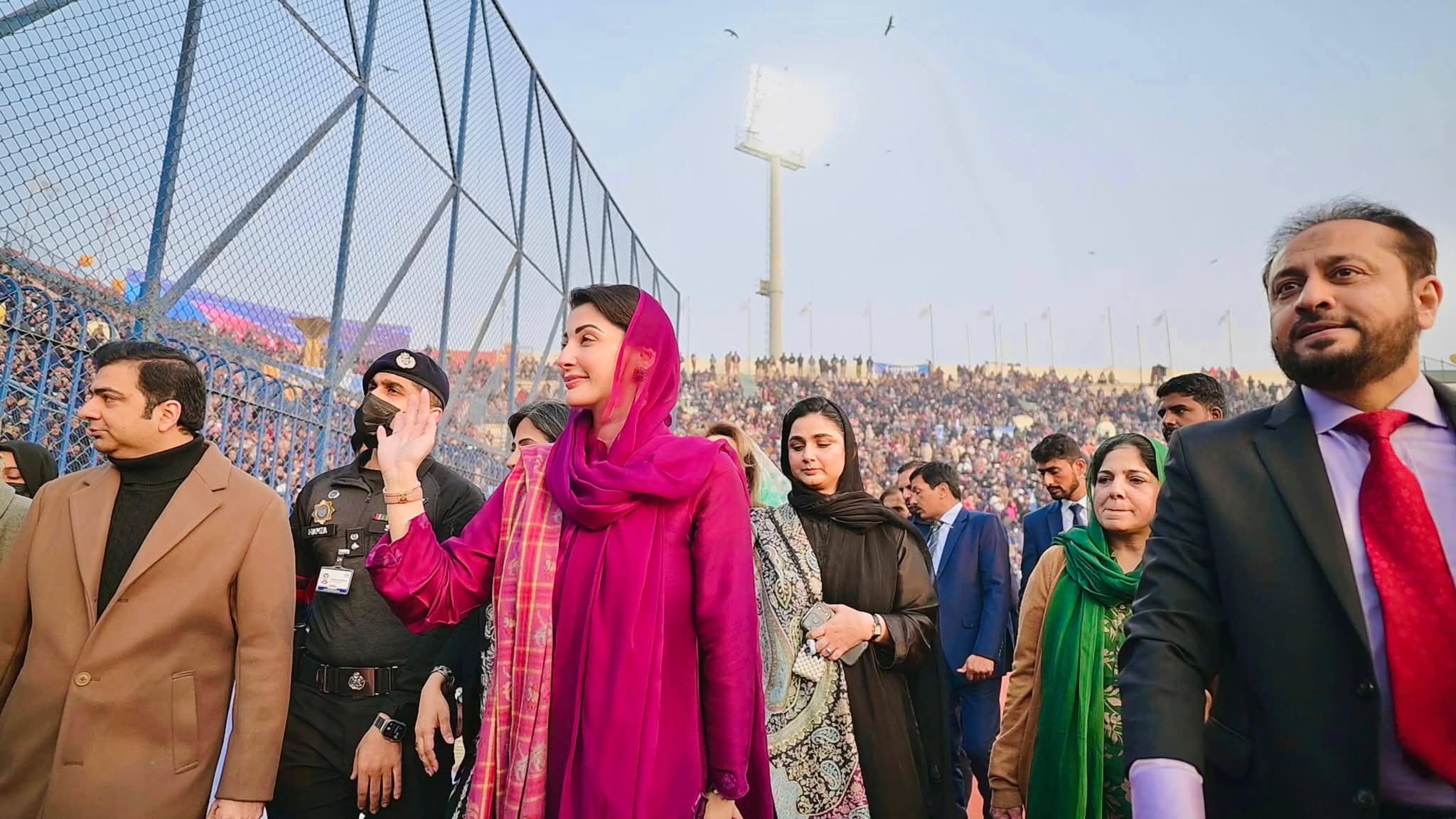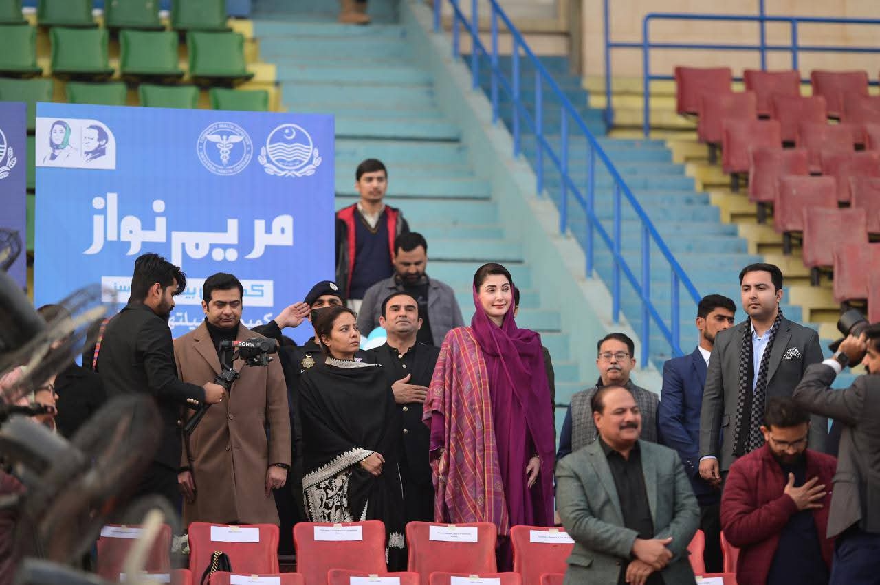 پنجاب ہاکی سٹیڈیم میں صوبے بھر سے 55ہزار کمیونٹی ہیلتھ انسپکٹرز کی تقریب میں شرکت کی۔ وزیراعلیٰ مریم نوازشریف کی پنجاب ہاکی سٹیڈیم آمد پر کمیونٹی ہیلتھ انسپکٹر زنے جوش وخروش نعرے لگائے جس پر وزیراعلیٰ مریم نوازشریف نے کمیونٹی ہیلتھ انسپکٹرز کے نعروں کا ہاتھ ہلا کر جواب دیا۔ وزیراعلیٰ مریم نوازشریف نے کمیونٹی ہیلتھ انسپکٹر ز پراجیکٹ کا ڈیجیٹل افتتاح کیا۔ وزیراعلیٰ مریم نوازشریف حوصلہ افزائی کیلئے ہاکی سٹیڈیم کے ٹریک پر ہر انکلیوژرکے سامنے گئیں۔ وزیراعلیٰ مریم نوازشریف نے ہاکی سٹیڈیم کے ٹریک پر طویل چکرلگاکرہرضلع سے آنے والی کمیونٹی ہیلتھ انسپکٹرزکا خیر مقدم کیا۔ وزیراعلیٰ مریم نوازشریف نے قائد محمد نوازشریف کا پورٹریٹ تھامے بچی کی خودموبائل فون سے تصویر بنائی۔ تقریب میں دھنیں بکھرتے بینڈ کے پیچھے کمیونٹی ہیلتھ انسپکٹرز کے دستے نے مارچ پاس کیا۔
