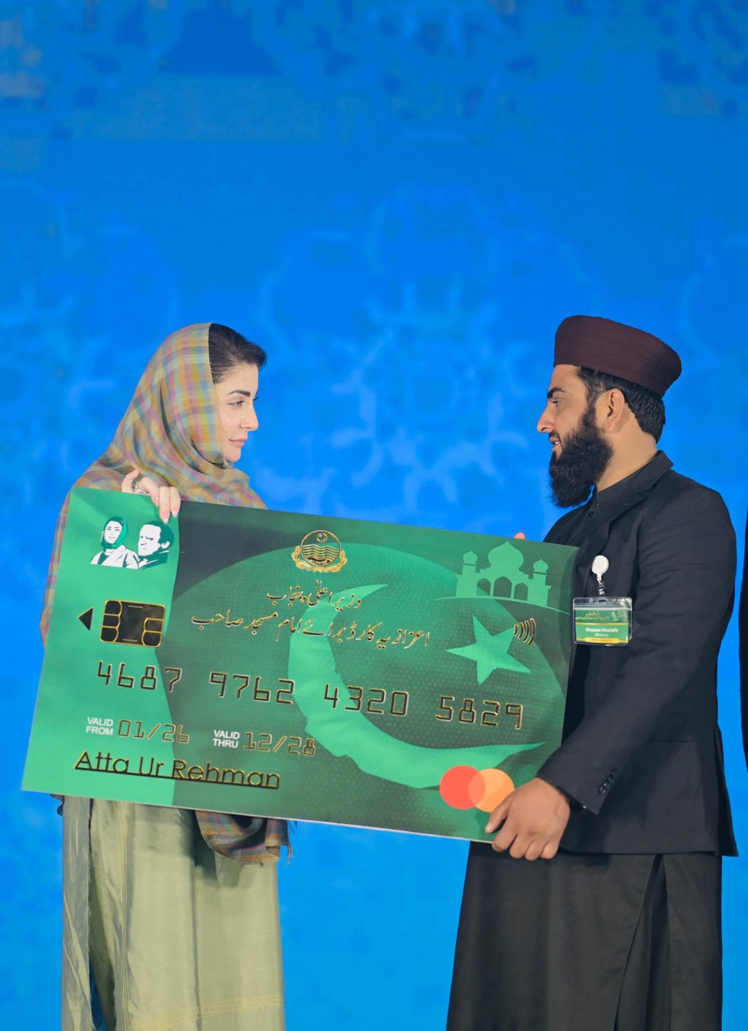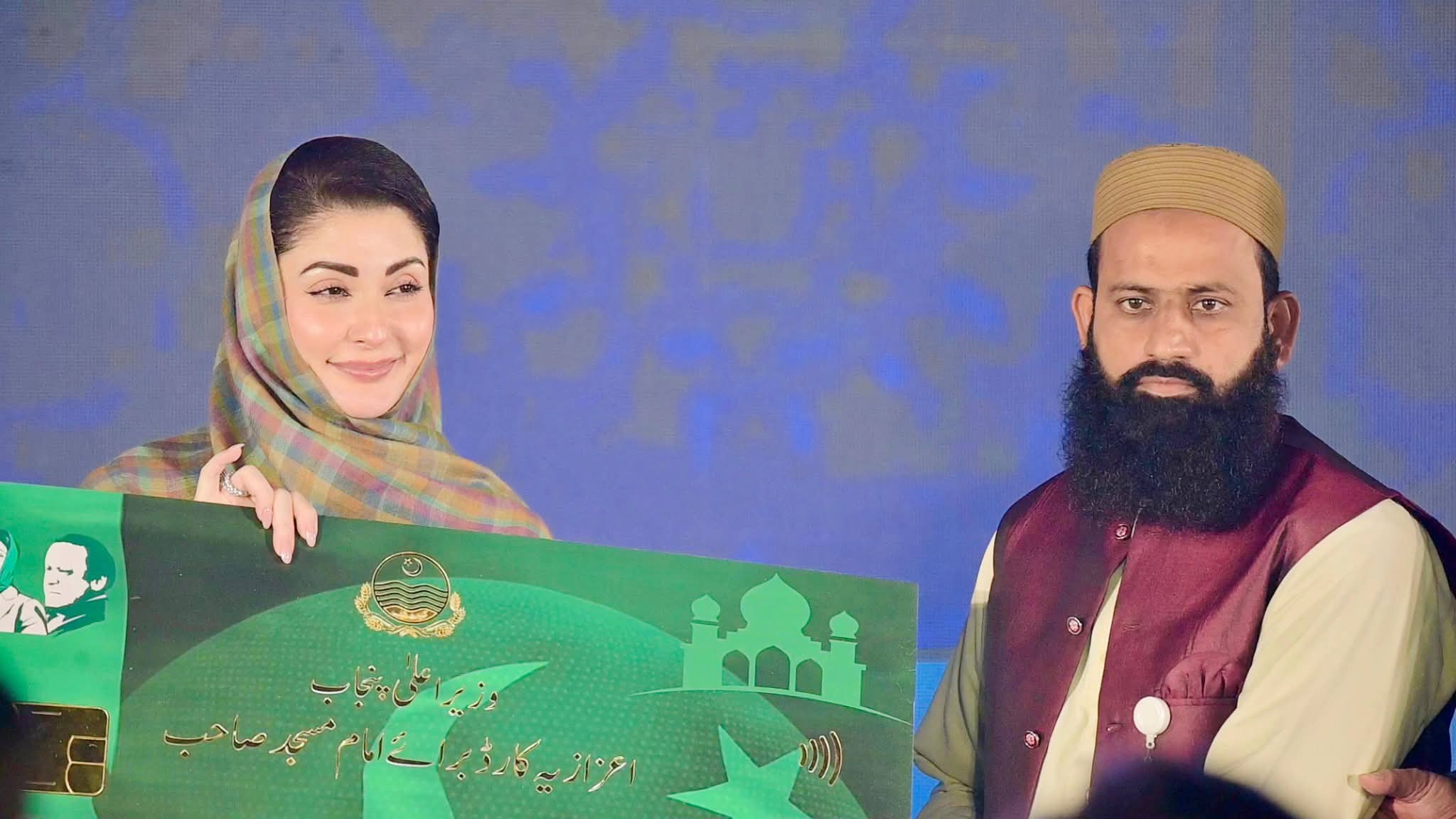 وزیراعلیٰ مریم نواز شریف نے پنجاب کا پہلا اعزازیہ کارڈ برائے امام مسجد صاحب لانچ کردیا۔ آئمہ کرام کے اعزاز میں سی ایم ہاؤس کے لان میں پروقار تقریب کا انعقادکیا گیا۔ پنجاب میں پہلی بار66ہزار سے زائدامام مسجد صاحبان کوماہانہ اعزازیہ دیا جائے گا۔ رجسٹرڈ آئمہ کرام کو ماہانہ 25ہزار روپے اعزازیہ پیش کیا جائے گا۔پراجیکٹ پر 20ارب روپے صرف ہوں گے۔ شفافیت یقینی بنانے کیلئے آئمہ کرام کو براہ راست ڈیجیٹل ادائیگی ہوگی۔ آئمہ کرام اعزازیہ کار ڈ کے ذریعے اے ٹی ایم سے رقم وصول کرسکتے ہیں۔ فروری سے آئمہ کرام کو وزیراعلیٰ پنجاب اعزازیہ کارڈ کے ذریعے مستقل ادائیگی ہوگی۔ تقریب میں وزیراعلیٰ پنجاب اعزازیہ کارڈ پراجیکٹ کے بارے میں خصوصی ڈاکو مینٹری چلائی گئی۔ وزیراعلیٰ مریم نواز شریف نے آئمہ کرام کو سٹیج پر بلا کر اعزازیہ کارڈ پیش کیے۔ اٹک سے رفیق مغل، فیصل آباد سے رضوان کوثر، ملتان سے نادر رضا جعفری،لاہور سے عبدالوحید، بھکر سے غلام مصطفی، پاکپتن سے اویس منظور، مظفر گڑھ سے سید محمد عون، ڈی جی خان سے عطاالرحمن کو اعزازیہ کارڈ پیش کیے گئے۔ صوبائی وزیر خواجہ سلمان رفیق نے وزیراعلیٰ اعزازیہ کارڈ برائے امام صاحب پراجیکٹ کے اغراض ومقاصد پیش کیے۔ وزیراعلیٰ مریم نواز شریف نے آئمہ کرام کی آمد کو حکومت پنجاب کے لئے اعزاز قرار دیا