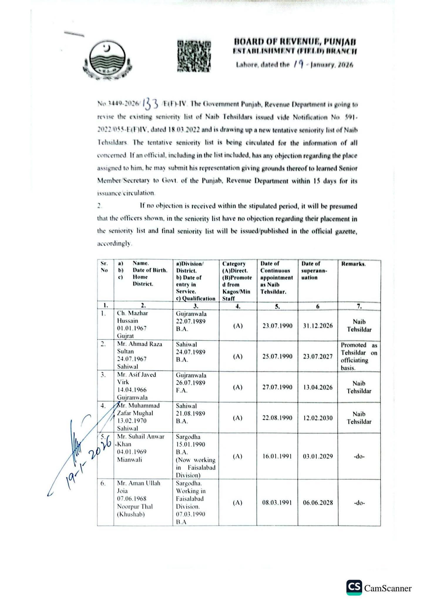 *پنجاب ریونیو اتھارٹی میں متعدد افسران کے تقرر و تبادلے, نوٹیفکیشن جاری*