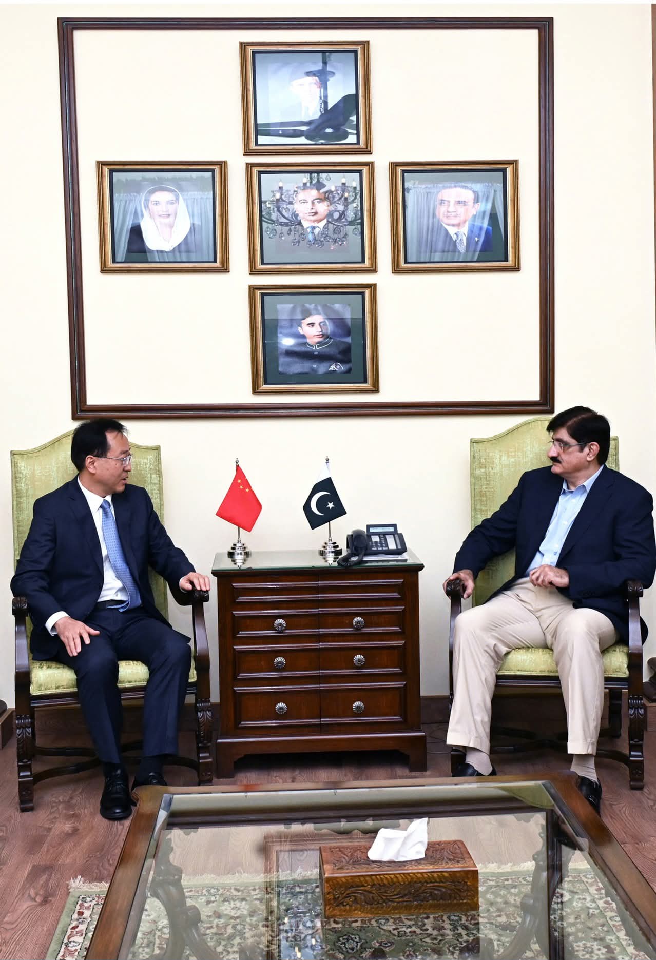 وزیراعلیٰ سندھ سید مراد علی شاہ نے کراچی میں تعینات چینی قونصل جنرل یانگ یون دونگ سے ملاقات بدھ کے روز وزیراعلیٰ ہاؤس میں ہوئی اور چین کے آئندہ دورے سے قبل باہمی اسٹریٹجک شراکت داری کو مزید مضبوط بنانے پر تبادلہ خیال کیا۔ ملاقات میں وزیراعلیٰ کے پرنسپل سیکریٹری آغا واصف اور چینی ڈپٹی قونصل جنرل ژانگ ہاؤ نے بھی شرکت کی۔ سید مراد علی شاہ نے کہا کہ وہ ستمبر میں چین کا دورہ کریں گے، جہاں وہ سندھ حکومت کے مختلف نئے پبلک پرائیویٹ پارٹنرشپ (پی پی پی) منصوبے پیش کریں گے۔