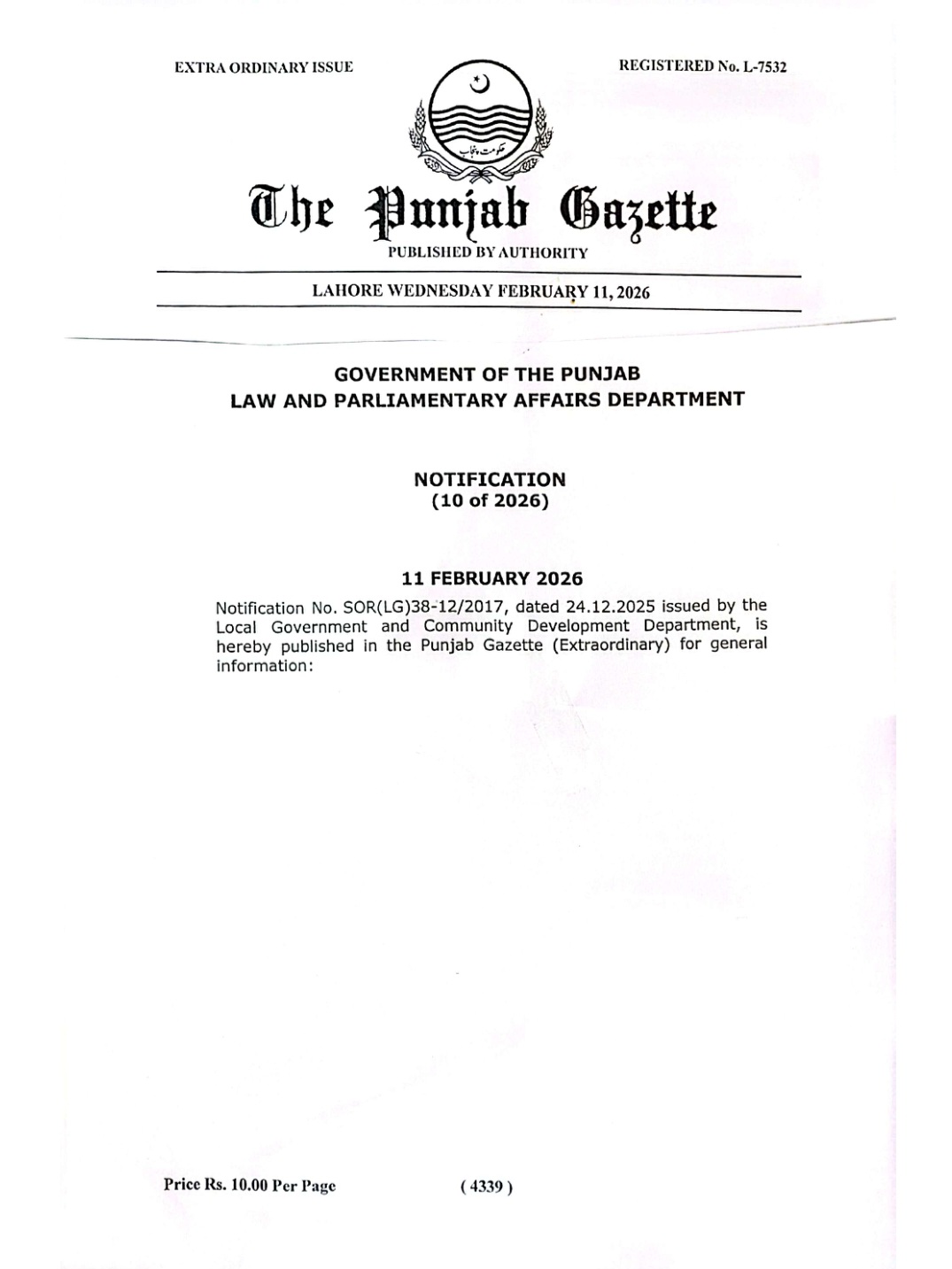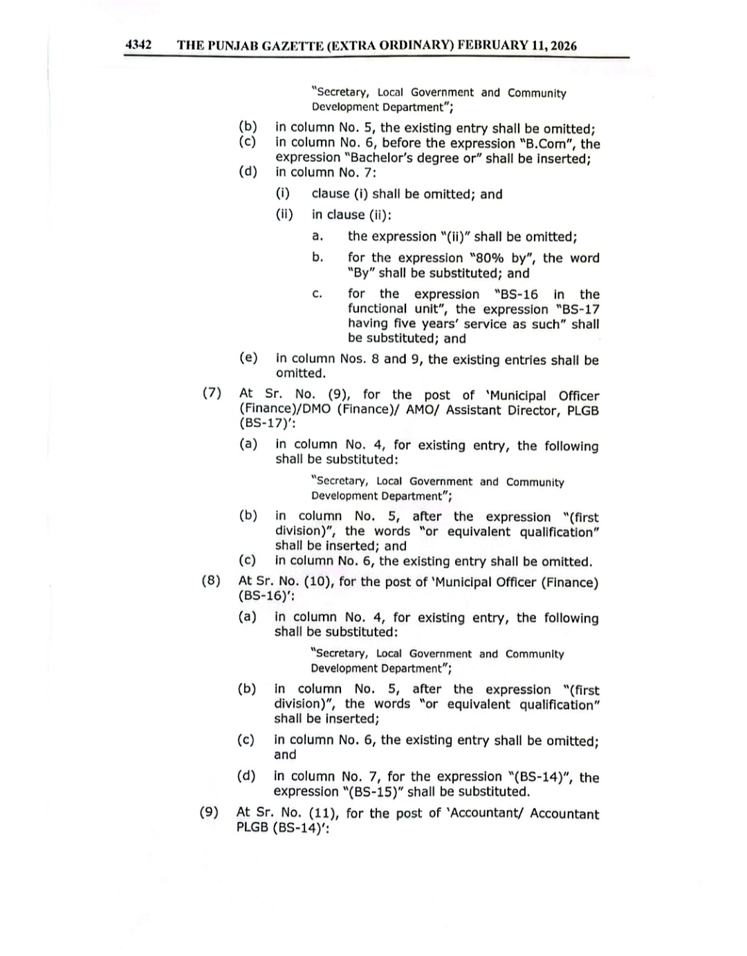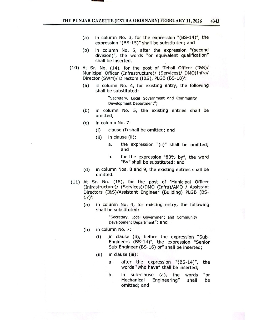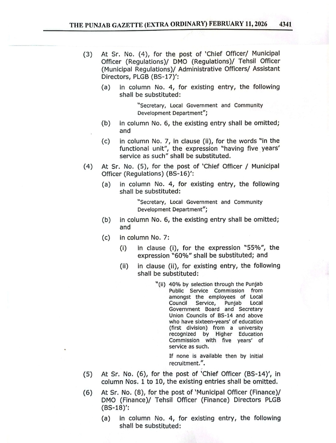 پنجاب لوکل گورنمنٹ سروس( تقرری اور سروس کی شرائط)رولز 2018 میں ترامیم کا گزٹ نوٹیفکیشن محکمہ قانون اور محکمہ بلدیات پنجاب کے سیکرٹریز کے دستخطوں سے جاری کیا گیا ہے۔