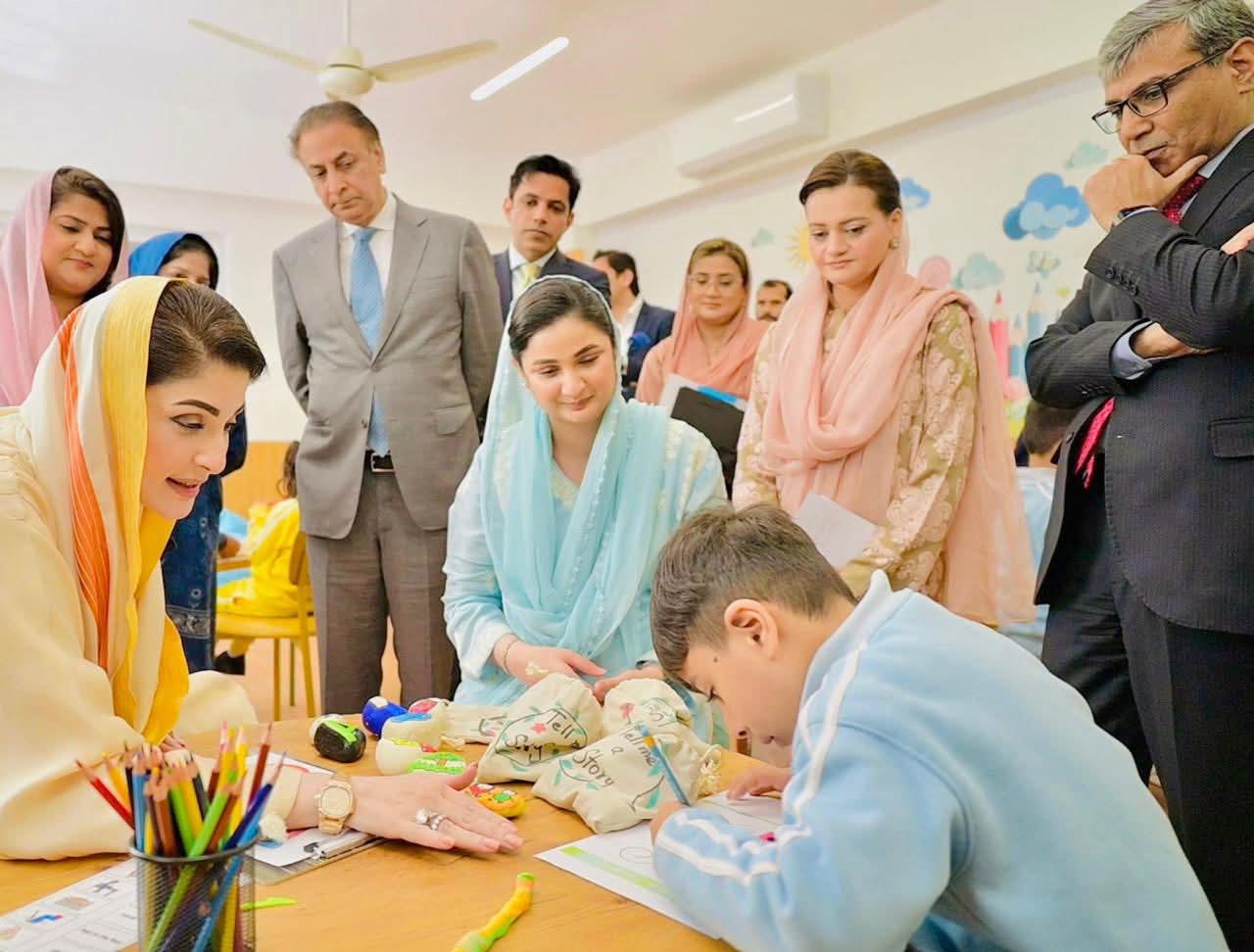 سپیشل بچے بہت خاص ہیں،آٹسٹک بچے،ان کے گھر والے ا وران کے والدین بھی میرے لئے خاص ہیں۔سپیشل بچوں کے ماں باپ روزانہ جس طرح ان کے مسائل سے نمٹتے ہیں،قابل تحسین ہے۔میری چھوٹی بہن اسماء کا سب سے بڑا بیٹا ابراہیم آٹسٹک ہے۔ڈھائی سالہ ابراہیم کو چیک اپ کیلئے ڈاکٹر کے پاس لے کر گئے تو اچانک پتہ چلا کہ اسے آٹزم ہے۔ابراہیم اوراس کے والدین کو بہت قریب سے دیکھا۔میری بہن اسماء اپنے دونوں نارمل بچوں کو آٹسٹک ابراہیم کا خاص خیال رکھنے کی ٹریننگ دے رہی ہے۔انہوں نے کہا کہ آٹسٹک بچوں کے والدین کو روزمرہ زندگی میں نئے نئے مسائل کا سامنا کرنا پڑتا ہے۔بہت سے آٹسٹک بچے مائلڈ سے ہائپر ہوتے ہیں،غصہ ان کی طبیعت کا حصہ بن جاتا ہے۔میری بہن کو وسائل ہونے کے باوجود ڈھائی سال تک ابراہیم کے آٹسٹک ہونے کا علم نہ ہوسکا۔بہت زیادہ محنت اورٹریننگ کے بعد ابراہیم اب اپنے خیالات کا اظہار کرنے لگاہے۔انہوں نے کہاکہ بدقسمتی سے آٹسٹک بچوں کو چار پائی سے باندھنے اورچاردیواری میں بند رکھنے کی روایت بھی موجود ہے۔غریب والدین کے آٹسٹک بچے گلی محلے میں بھٹکتے پھرتے ہیں۔آٹسٹک بچوں کے والدین کا حوصلہ اورصبر چٹان کی طرح بلنداورمضبوط ہوتا ہے۔آج ریاست آٹسٹک بچوں کے والدین کا کچھ بوجھ بانٹ رہی ہے تو مجھ سے زیادہ کون خوش ہوگا۔ میرا کام سڑکیں،ہسپتال اورسکول بنانا ہی نہیں لوگوں کے مسائل حل کرنا بھی ہے۔محروم افراد سے بے خبر ریاست سے زیادہ نااہل کون ہوسکتا ہے۔اللہ تعالیٰ کے فضل و کرم سے آٹزم سکول میں ایک ہی چھت تلے تمام سہولتیں میسر ہیں۔90فیصد نادار طبقے کے لوگ آٹسٹک بچے کا علاج خود نہیں کراسکتے۔ریاست کی نظر میں امیر اورغریب کے حقوق برابر ہیں۔آٹسٹک بچوں کے مسائل کا ہمیں ادراک نہیں کیونکہ وہ نہ بول سکتے ہیں نہ سمجھا سکتے ہیں۔بعض آٹسٹک بچے شور اورلائٹ سے گھبرا کر فراسٹیشن میں خود کونقصان پہنچانے کی کوشش کرتے ہیں۔آٹزم سینٹر میں آٹسٹک بچوں کو اعتماد سے دنیا کی آنکھوں میں آنکھیں ڈالنا سکھائیں گے۔بعض آٹسٹک بچے شور نہیں سن سکتے ان کو آہستہ آہستہ شور سے مانوس کرائیں گے۔آٹسٹک بچوں کو مختلف تھراپی سے حالات کامقابلہ کرنا سکھائیں گے۔آٹسٹک بچوں کیلئے جتنی آسانیاں ممکن ہوں گی پیدا کریں گے۔انہوں نے کہا کہ آٹسٹک بچوں کیلئے آکو پیشنل تھراپی میں مزید سکلز بھی لائیں گے۔آٹسٹک بچے کی ماں کی بات سن کر دل بھر آتا ہے کہ میرا بچہ مجھے ماں کہہ کر پکارے۔جب آٹسٹک بچہ ماں کہہ کر پکارے گا تو والدین کتنے خوش ہوں گے۔ ساؤنڈ پروف سپیچ تھراپی سینٹر میں آٹسٹک بچوں کو بولنا سکھایا جاتا ہے۔میوزک تھراپی،آرٹ تھراپی حتی کہ ٹیکسچڑڈ فرش پر چلنا بھی آٹسٹک بچوں کی تھراپی ہے۔بصارت سے محروم آٹسٹک بچے ٹیکسچرڈ ماربل پر بیٹھ کر چلتے ہیں۔آٹسٹک بچے شکلیں اورتصویریں بنا کر اپنا اظہار کرتے ہیں۔آٹسٹک بچوں کیلئے آٹزم سینٹر کیلئے جسمانی صحت کے اوپن ایئر جم بھی بنایا گیا ہے۔بعض آٹسٹک بچے چبا نہیں سکتے،بعض چپانے کی صلاحیت سے محروم ہونے پر غذائیت کی کمی شکارہوجاتے ہیں۔آٹزم سینٹر میں بچوں کو سونگ سنس سپیچ سکھائی جاتی ہے۔انہوں نے کہا کہ مریم نواز سکول اینڈ ریسورس سینٹر فار آٹزم سکول نہیں بلکہ سماجی انقلاب ہے، جو حب بنے گا۔آٹسٹک بچوں کے علاج کی ایکٹیویٹی کو ہرضلع کی سطح تک لے کر جائیں گے۔انسانی وسائل بہتر کرنے کیلئے بہترین سرمایہ کاری کر رہے ہیں۔مریم نواز سکول اینڈ ریسورس سینٹر فار آٹزم میں سپیشل ٹیچر کی کپیسٹی بلڈ نگ بھی کی جائے گی۔مریم نواز سکول اینڈ ریسورس سینٹر فار آٹزم میں ہرخصوصی لیول کے آٹزم کے مطابق نصاب تشکیل دیاگیا ہے۔آٹزم سکول کے کلاس روم،دیواریں،تمام انفراسٹرکچر عالمی معیار کے مطابق تعمیر کیاگیا۔آٹسٹک بچوں کے والدین کی ٹریننگ بھی کرائیں گے تاکہ وہ صحیح تھراپی کرسکیں۔پنجاب بھر میں سپیشل بچوں کیلئے سپیشل قسم کی 70بسیں فراہم کررہے ہیں۔مریم نواز سکول اینڈ ریسورس سینٹر فار آٹزم کے قیام کے کارخیرر میں حصہ لینے والوں کو شاباش دیتی ہوں یہ سفر رکنانہیں چاہیے۔لوگوں کی مشکلات میں آ