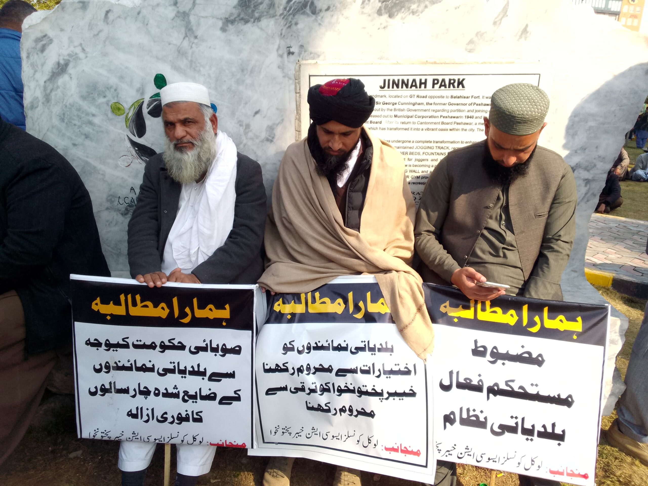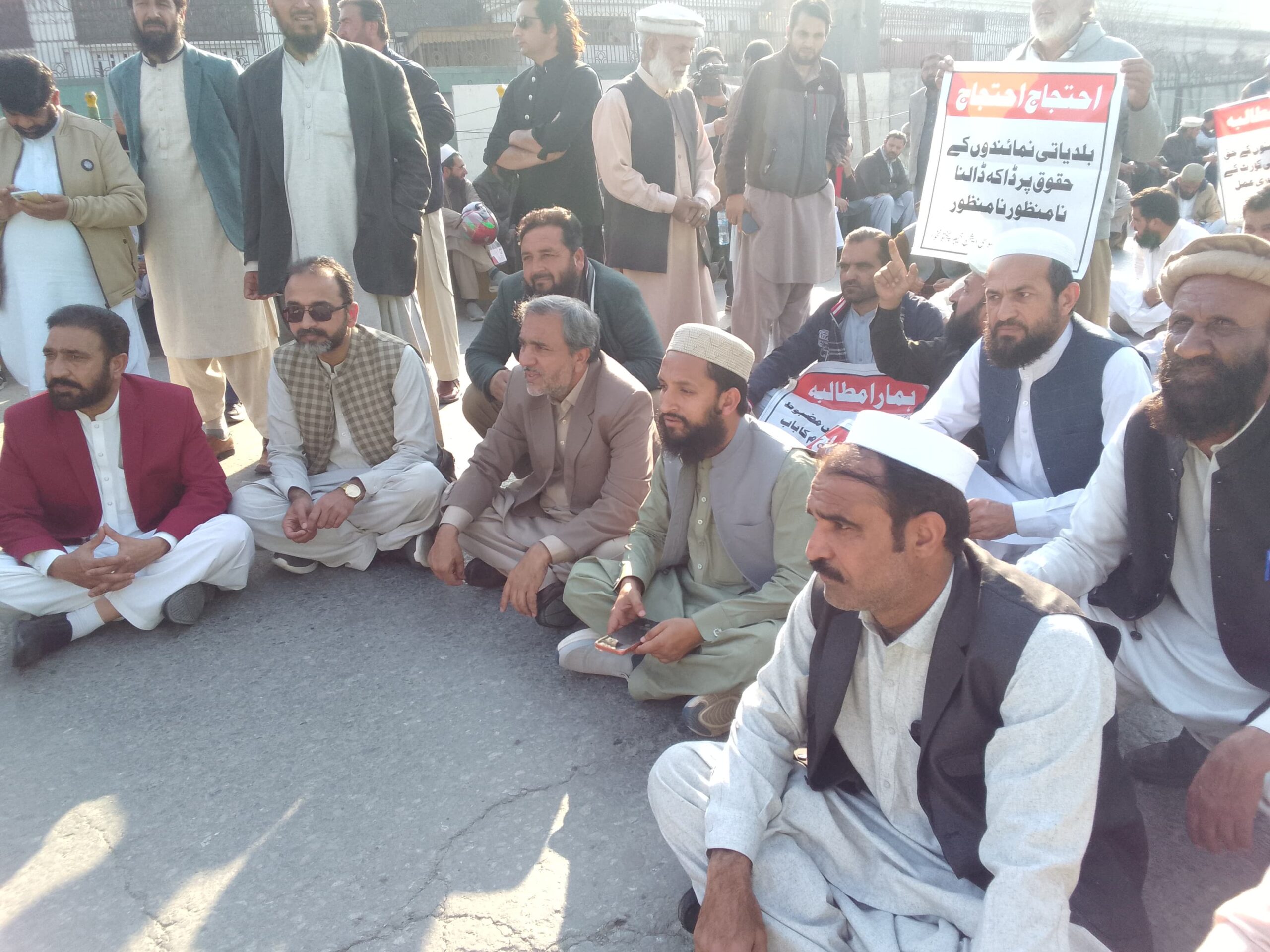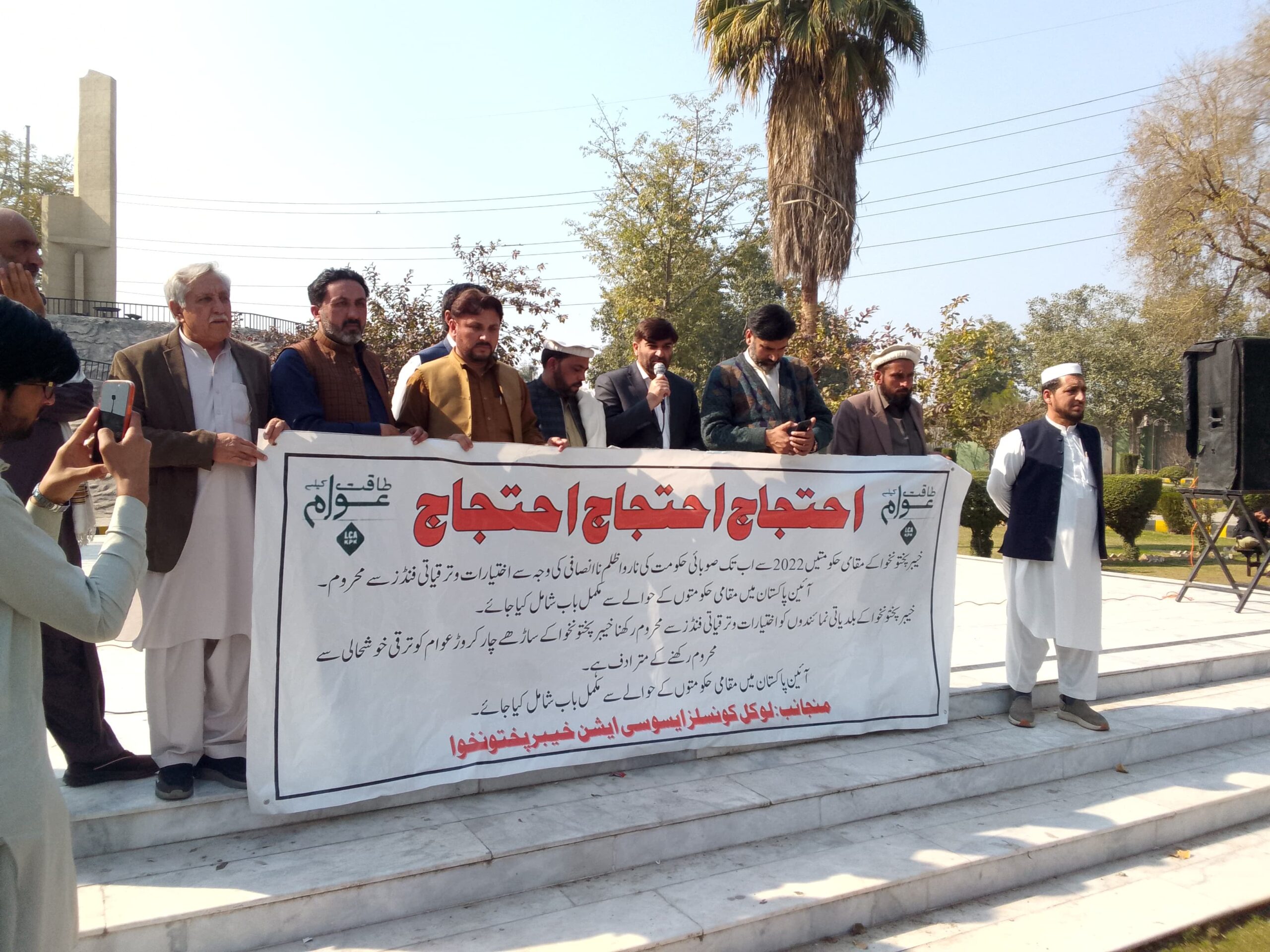 احتجاجی دھرنا سے خطاب کرتے صدر لوکل کونسلز ایسوسی ایشن مئیر مردان حمایت اللہ مایار، انتظار خلیل و دیگر کا کہنا تھا کہ مقامی حکومتوں کو گزشتہ چار سال سے اختیارات و ترقیاتی فنڈز سے محروم رکھکر درحقیقت خیبرپختونخوا کے عوامی ووٹ کی توہین کی گئی ہے۔ خیبرپختونخوا کے بلدیاتی نمائندوں کو خیبرپختونخوا کے عوام نے ہی ووٹ دیا ہے ناکہ کسی دوسرے ملک کے عوام نے تو اس لیے مقامی حکومتوں کے نمائندوں سے زیادتی درحقیقت خیبرپختونخوا کے عوام سے زیادتی کے مترادف ہے۔صدر ایسوسی ایشن حمایت اللہ مایار نے آیندہ لائحہ عمل کا اعلان کرتے ہوئے کہنا تھا کہ احتجاجی دھرنا بدستور جاری رہیگا صوبائی حکومت کیطرف سے لوکل کونسلز ایسوسی ایشن کو مذاکرات و وزیر اعلیٰ سے اگلے ہفتے ملاقات کی پشکش ہوئی ہے جس کا خیر مقدم کرتے ہے مگر مذاکرات تک احتجاجی دھرنا جاری رہیگا مذاکرات کے نتائج کے بعد آیندہ لائحمہ عمل کا اعلان کیا جائیگا۔