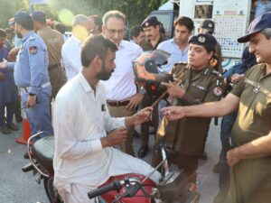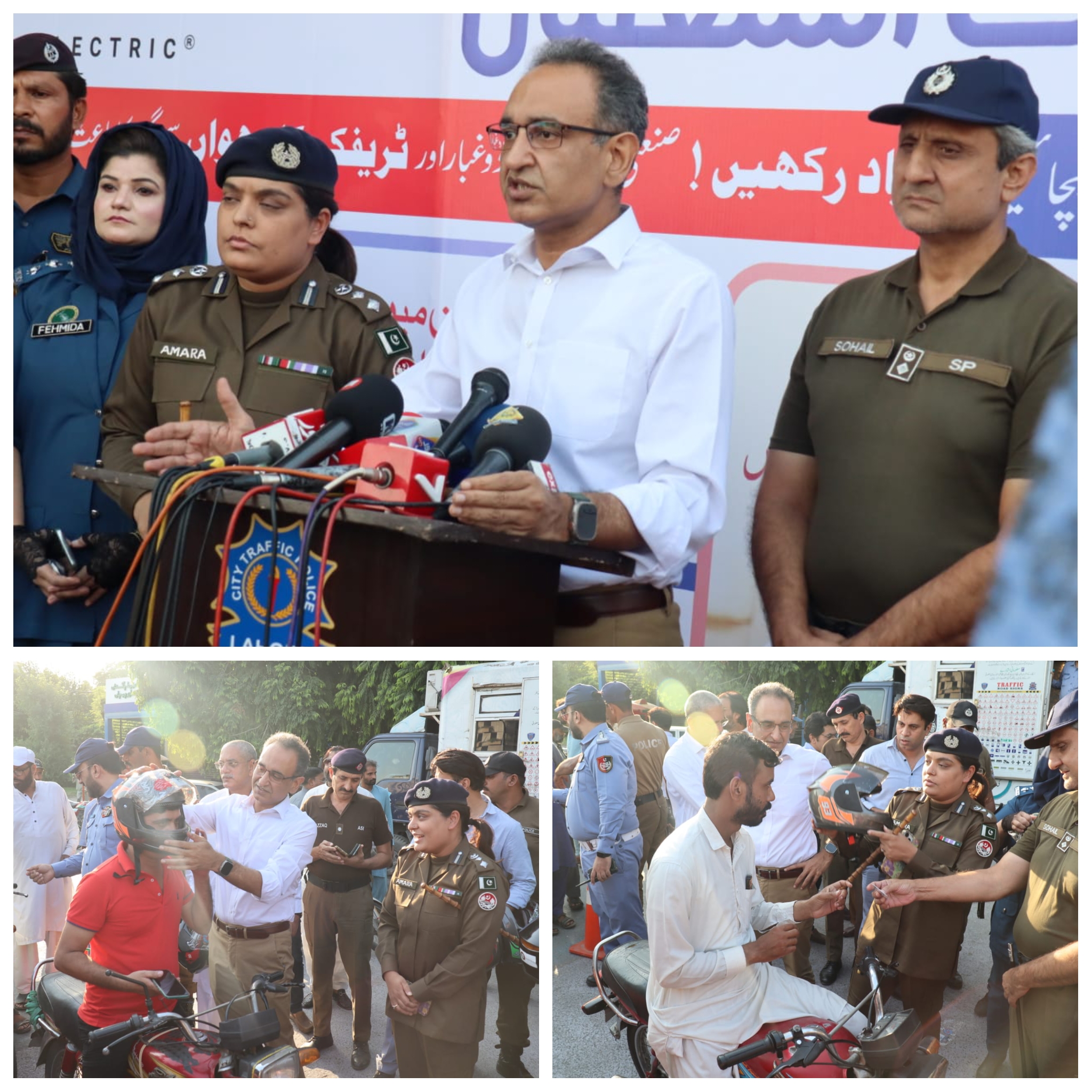 کمشنر لاہور اور سی ٹی او لاہور نے لبرٹی چوک میں بغیر ہیلمٹ مگر لائسنس ہولڈرز موٹر سائکلسٹ میں ہلمٹ بھی تقسیم کیے۔