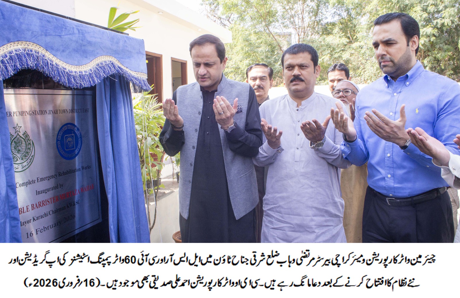 اس مو قع پر ڈپٹی میئر کراچی سلمان عبداللہ مراد، پاکستان پیپلزپارٹی کراچی کے جنرل سیکریٹری رؤف ناگوری،کے ایم سی سٹی کونسل میں پارلیمانی لیڈر کرم اللہ وقاصی، ڈپٹی پارلیمانی لیڈر دل محمد، سی ای او واٹر کارپوریشن احمد علی صدیقی اور سی او او انجینئر اسداللہ خان، منتخب نمائندوں سمیت دیگر افسران بھی موجود تھے، میئر کراچی بیرسٹر مرتضی وہاب نے منعقدہ تقریب سے خطاب کرتے ہوئے کہا کہ پانی ایک بنیادی ضرورت ہے اور اس کا تعلق براہِ راست عام آدمی کی زندگی سے ہے، اس لیے پانی کے مسئلے پر سیاست نہیں بلکہ اجتماعی کام ہونا چاہیے، انہوں نے کراچی واٹر اینڈ سیوریج کارپوریشن کی کارکردگی کو سراہتے ہوئے کہا کہ ادارہ متحرک انداز میں شہر کے مسائل حل کرنے میں مصروف ہے اور پانی کی منصفانہ تقسیم کو یقینی بنانے کے لیے عملی اقدامات کیے جارہے ہیں، میئر کراچی نے کہا کہ ایل ایس آر اور سی آئی 60 پمپنگ اسٹیشنز پر 18 سے 20 سال پرانے کم استعداد پمپس کی جگہ جدید ہائی کیپیسٹی پمپس نصب کیے گئے ہیں، ایل ایس آر پر دو نئے 220 ہارس پاور جبکہ سی آئی 60 پر تین جدید 215 ہارس پاور موٹرز لگائی گئی ہیں، اس کے علاوہ ایل ایس آر پر 500 کے وی اے اسٹینڈ بائی جنریٹر کی تنصیب سے نظام مزید مستحکم ہوا ہے، ان اقدامات سے روزانہ 40 سے 50 لاکھ گیلن اضافی پانی کی فراہمی ممکن ہوگی جبکہ دونوں منصوبوں سے مجموعی طور پر 4 سے 5 ایم جی ڈی پانی شہر کو فراہم کیا جا سکے گا، انہوں نے کہا کہ سی آئی 60 پمپنگ اسٹیشن کی گنجائش 6.3 ایم جی ڈی سے بڑھا کر 8.5 ایم جی ڈی اور ایل ایس آر کی گنجائش 7.8 ایم جی ڈی سے بڑھا کر 9.3 ایم جی ڈی کر دی گئی ہے، جس سے صدر، جناح، چنیسر، کیماڑی، میٹھا در، کھارادر، گارڈن ایسٹ اور سولجر بازار سمیت اولڈ سٹی ایریا کے مکینوں کو براہِ راست ریلیف ملے گا،میئر کراچی بیرسٹر مرتضیٰ وہاب نے کہا کہ رمضان المبارک سے پہلے عوام کو ریلیف دینا ہماری ترجیح تھی اور وسائل کو صحیح طریقے سے استعمال کرتے ہوئے یہ کام بروقت مکمل کیا گیا۔ انہوں نے کہا کہ ایل ایس آر پمپنگ اسٹیشن 1942 میں انگریز دور میں تعمیر کیا گیا تھا جس کا مقصد 33 انچ لائن سے آنے والے پانی کو شہر کے مختلف علاقوں تک پہنچانا تھا تاہم طویل عرصے تک اس پر توجہ نہ دی گئی، انہوں نے کہا کہ نئے نظام سے جناح ٹاؤن، گلشن ٹاؤن، چنیسر، ماڑی پور، کیماڑی اور اولڈ سٹی ایریا کے شہریوں کو فائدہ ہوگا جبکہ روزانہ لاکھوں گیلن اضافی پانی پمپ کیا جا سکے گا۔ سی آئی 60 سے ماڑی پور اور اولڈ سٹی ایریا تک پانی کی فراہمی بہتر ہوگی جبکہ ایل ایس آر سے مختلف ٹاؤنز میں پانی کی ترسیل مزید مستحکم ہوگی، میئر کراچی نے کہا کہ کے تھری (K-III) منصوبے پر بھی کام جاری ہے اور 31 مئی تک اسے مکمل کرنے کی کوشش کی جا رہی ہے تاکہ لیاری کے عوام کو اس کا ثمر مل سکے، اسی طرح مومن آباد، منگھوپیر، ملیر اور اسٹیل ٹاؤن کے علاقوں میں بھی پانی کی فراہمی بہتر بنانے کے لیے اقدامات کیے جا رہے ہیں اور رمضان کے دوران مزید منصوبے مکمل کیے جائیں گے، انہوں نے کہا کہ اگر پانی اور سیوریج کے مسائل حل ہو جائیں تو یہ براہِ راست عوام کے دلوں کو چھوتے ہیں، اسی لیے شہر میں ترجیحی بنیادوں پر ترقیاتی کام کیے جا رہے ہیں، انہوں نے کہا کہ رواں سال ترقیاتی منصوبوں کی تکمیل کا سال ہے اور تقریباً 46 ارب روپے شہر کی ترقی پر خرچ کیے جا رہے ہیں جبکہ سڑکوں اور انفراسٹرکچر پر بھی بھاری سرمایہ کاری کی جا رہی ہے، میئر کراچی نے کہا کہ پاکستان پیپلز پارٹی کے وژن کے مطابق کراچی کے بلدیاتی ادارے عوامی خدمت کے لیے کام کررہے ہیں اور بلا تفریق ہر علاقے میں ترقیاتی منصوبے مکمل کیے جارہے ہیں، انہوں نے کہا کہ سندھ حکومت بھی اس سلسلے میں بھرپور تعاون کر رہی ہے اور شہر میں طویل عرصے سے رکے منصوبے مکمل ہو رہے ہیں، انہوں نے کے الیکٹرک سے مطالبہ کیا کہ وہ اپنی کارکردگی بہتر بنائے کیونکہ بجلی کے بریک ڈاؤن سے پانی کی فراہمی کا نظام بھی متاثر ہوتا ہے اور پمپنگ انفراسٹرکچر کو نقصان پہنچتا ہے، جبکہ پمپنگ اسٹیشنز کو سولرائز کرنے کے اقدامات بھی کیے