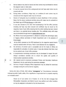 1. موجودہ مون سون سیزن کو مدنظر رکھتے ہوئے، تمام متعلقہ میونسپلٹیوں کو پرائمری اینڈ سیکنڈری ہیلتھ کیئر ڈیپارٹمنٹ، حکومت کی طرف سے حتمی شکل دی گئی ڈینگی وبا کی روک تھام اور کنٹرول کے لیے SOPs کے مطابق پورے صوبے میں ضروری احتیاطی اقدامات کرنے کی بھرپور کوششیں کرنی ہوں گی۔ پنجاب کے