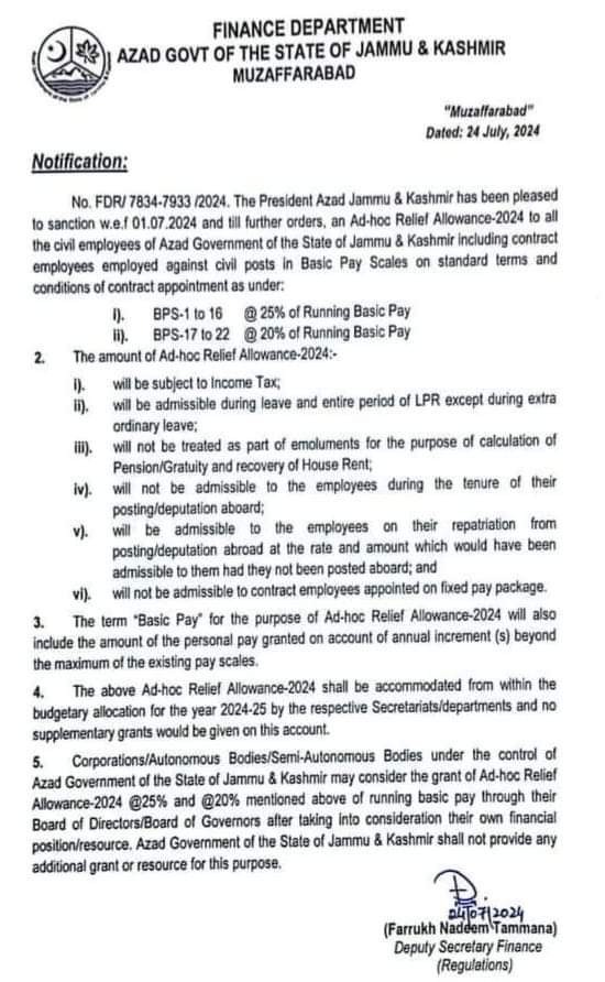 حکومت آزاد کشمیر نے ضروری خدمات کے9 محکموں کو پیٹرول ایمرجنسی پروگرام سے نکال دیا