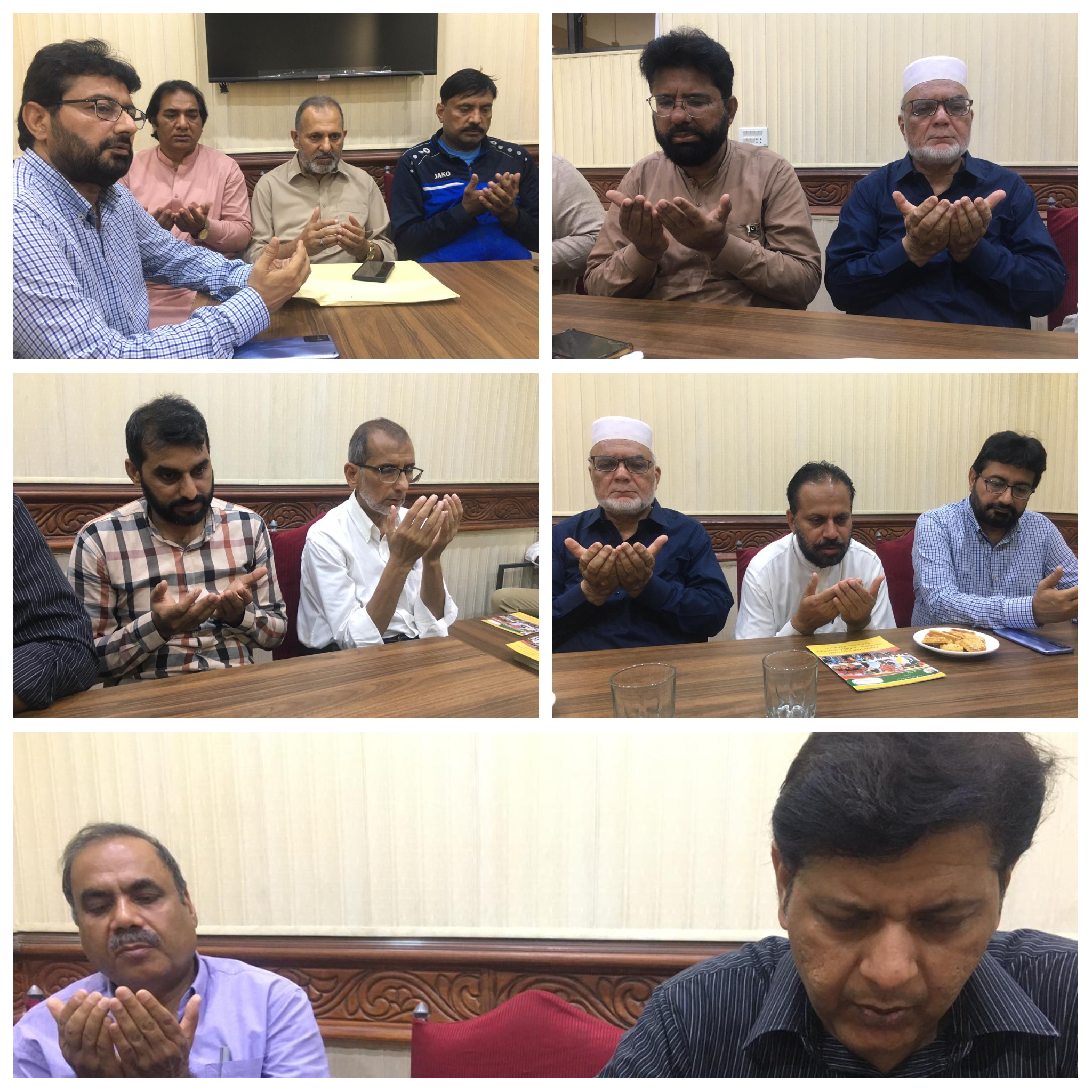 جس میں علی نواز سے اظہار افسوس کیا گیا۔تقریب کا آغاز تلاوت قرآن پاک سے قاری محمد یاسین نے کیا۔اجتماعی دعا مہر عبدالروف نے کروائی مرحوم کے دراجات کی بلندی اور گزشتہ روز پاکستان میں شہید ہونے والوں کے لیے دعا کی گئی ملک پاکستان کی حفاظت۔امن سلامتی کے لیے خصوصی دعا کی گئی۔ڈاکٹر مصطفیٰ کمال نے قرآن و سنت کی روشنی میں آخرت کی بھلائی پر روشنی ڈالی ۔ڈاکٹر ندیم الحسن گیلانی نے کہا کہ قرآن و سنت پر عمل پیرا ہو کر ہی دنیا اور آخرت میں کامیابی حاصل کی جا سکتی ہے ۔سید علی بخاری نے حقوق العباد پر بات کی علی نواز نے تمام عہدیداران کا شکریہ ادا کرتے ہوئے کہا کہ میں آج جس مقام پر ہوں وہ والد مرحوم کی محنت اور دعاؤں سے ہوں ۔باپ دنیا کا بہت بڑا سرمایہ ہوتا ہے۔ہمیں زندگی میں اپنے والدین کی قدر کرنی چاہیے۔تقریب میں ایسوسی ایشن کے عہدیداران نصیر الحق ہاشمی ۔کرامت علی ۔افتخار رسول۔عابد سعید۔احسان غنی۔علی نواز۔سعید الحسن ۔اسلم سیماب۔ عامر علی ۔ریحان خاور۔علی رضا۔اور محترمہ لبنیٰ بابر نے شرکت کی ۔
