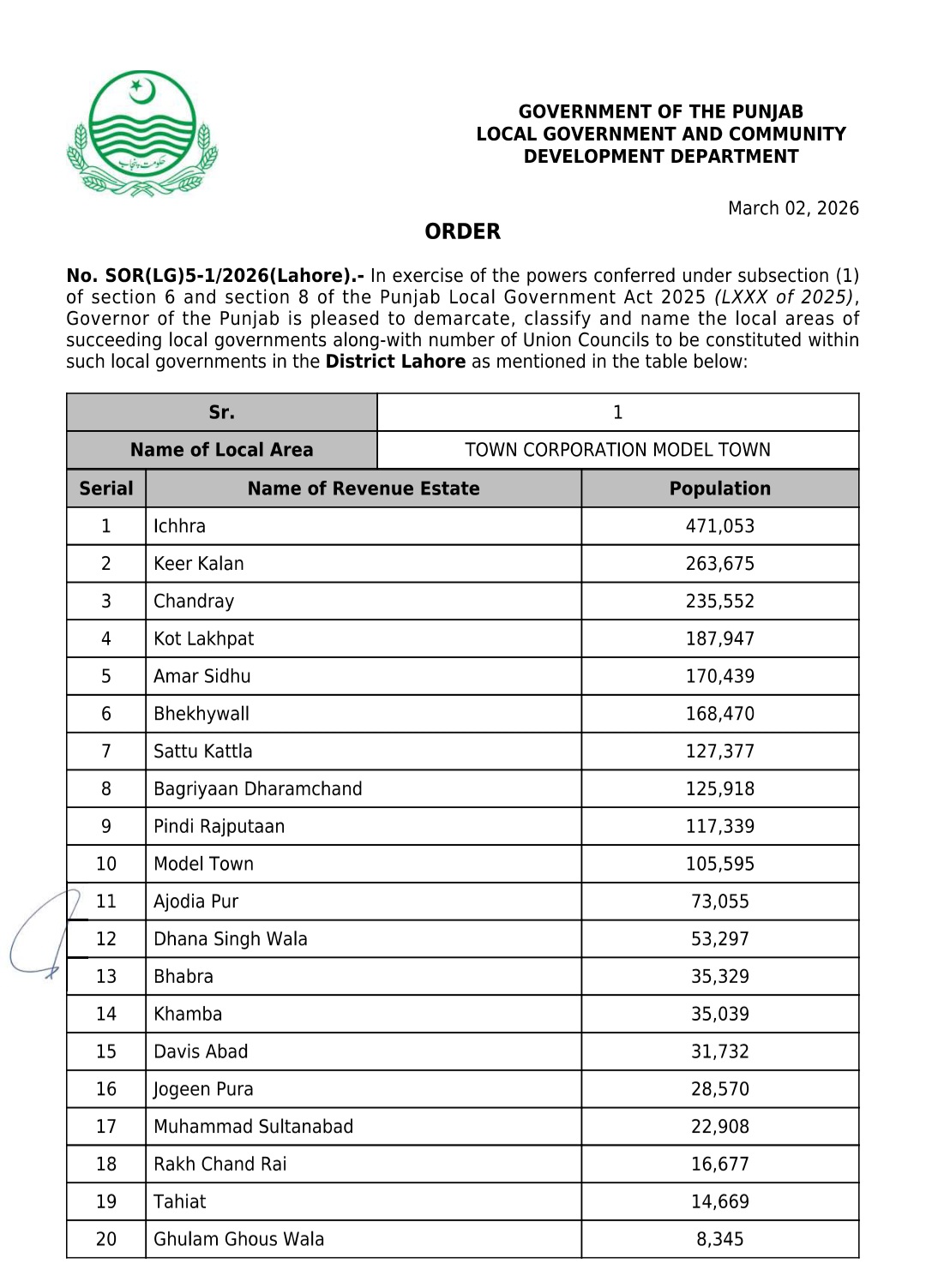 *حکومت پنجاب لوکل گورنمنٹ اور کمیونٹی ڈویلپمنٹ ڈیپارٹمنٹ نے ضلع لاہور کے ٹاؤنز میونسپل کارپوریشنز کا نوٹیفکیشن جاری کردیا ہے*جس میں ضلع لاہور کے 9 ٹاؤنز کارپوریشنز شامل ہیں*